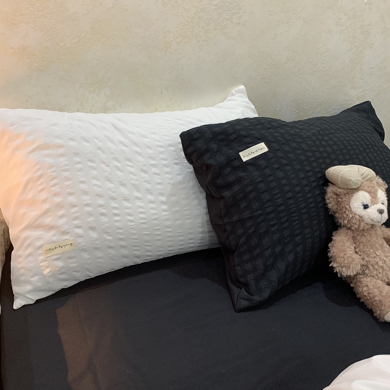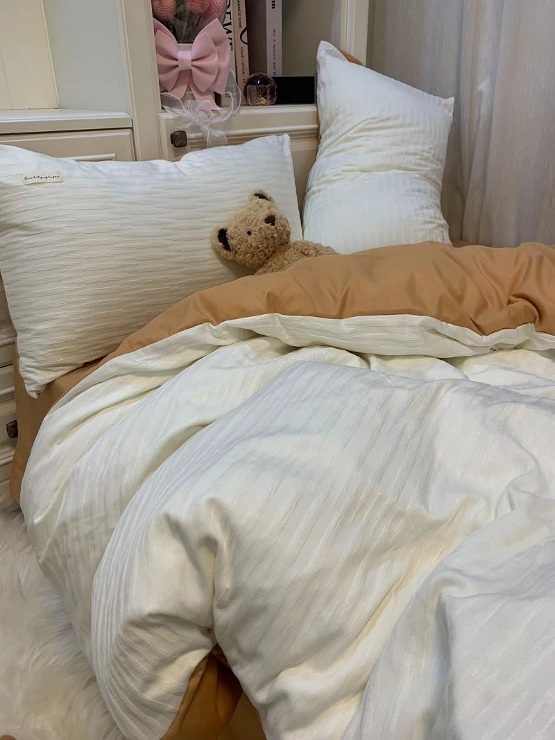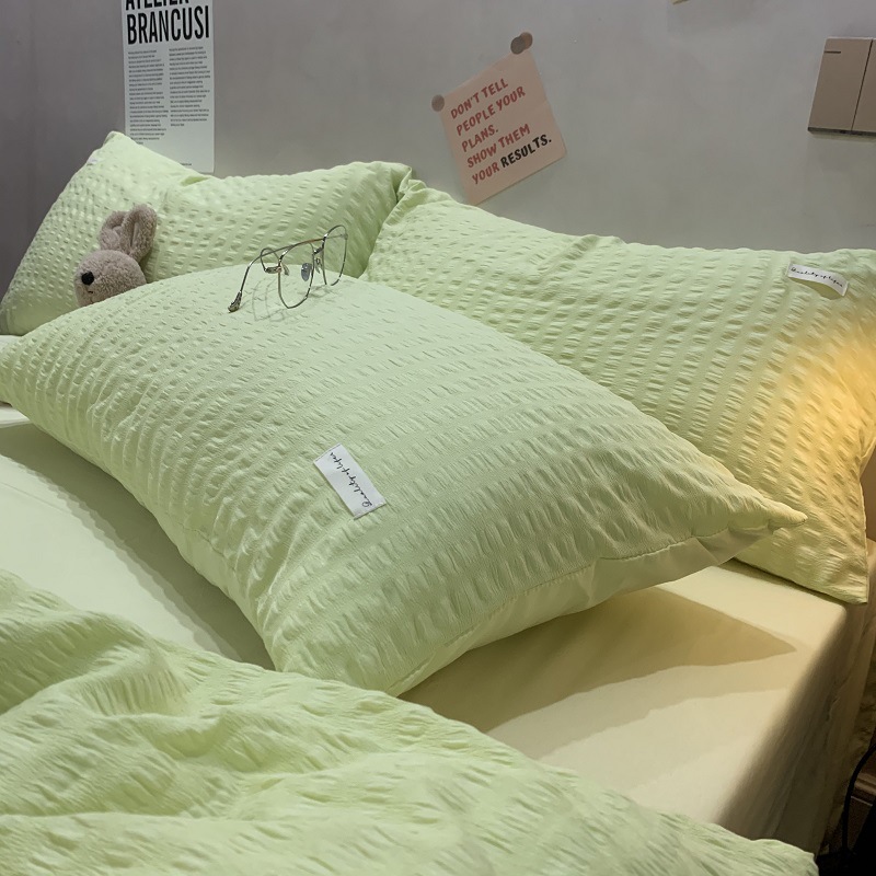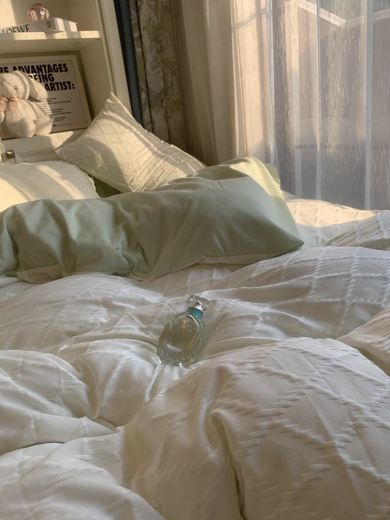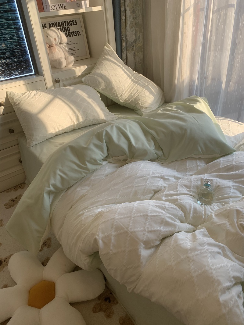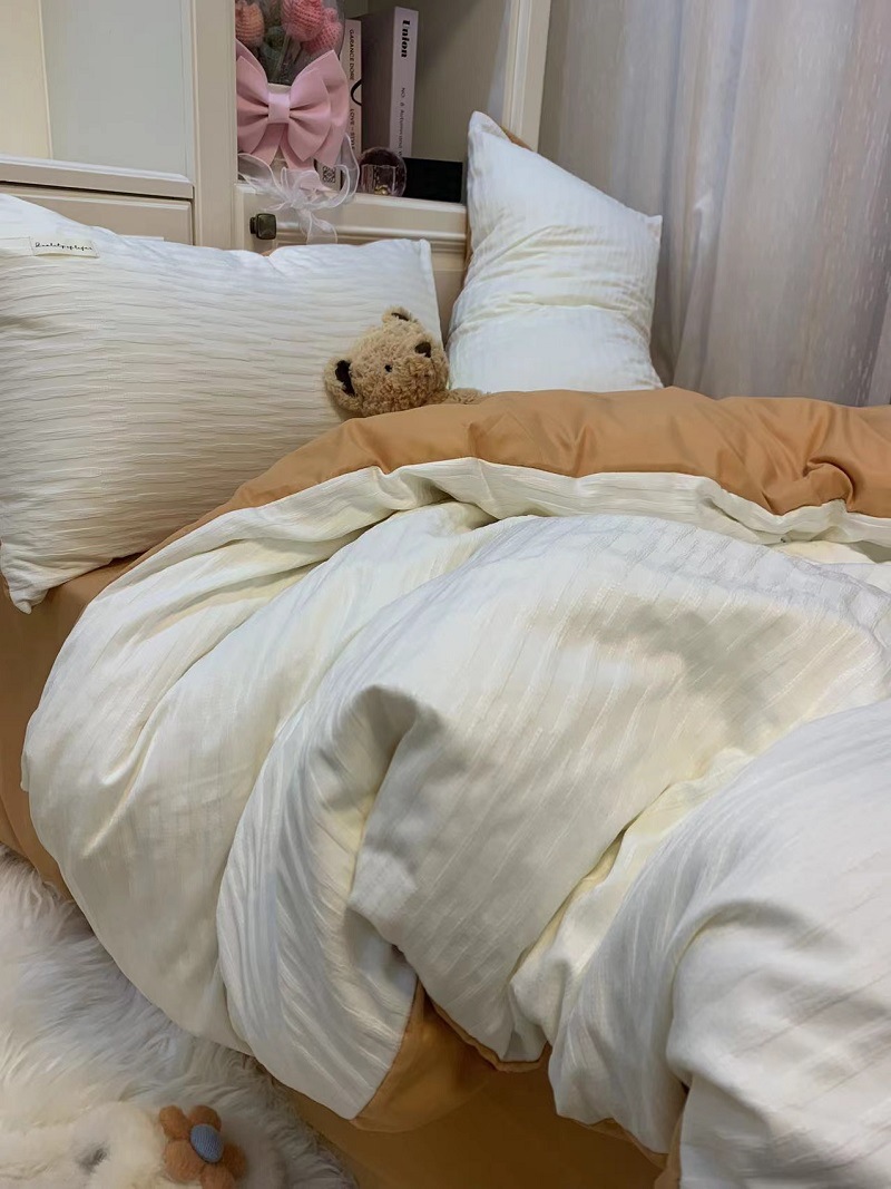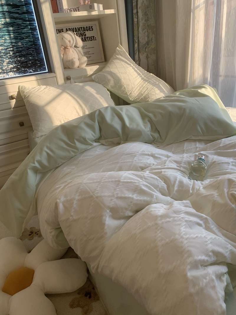 인 스타일 간단한 편안한 그레이 퍼플 믹스 워터 리플 퀼트 커버 침구 4 피스 기숙사 침대 시트 3 피스 세트스토어 가기