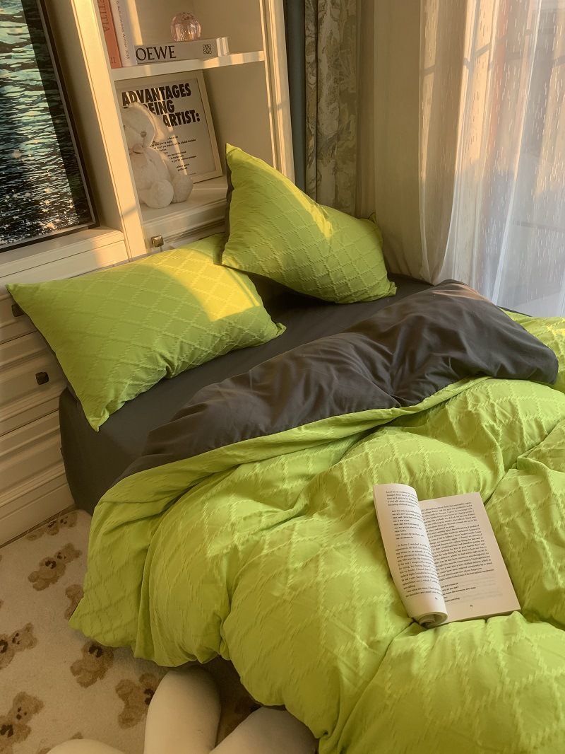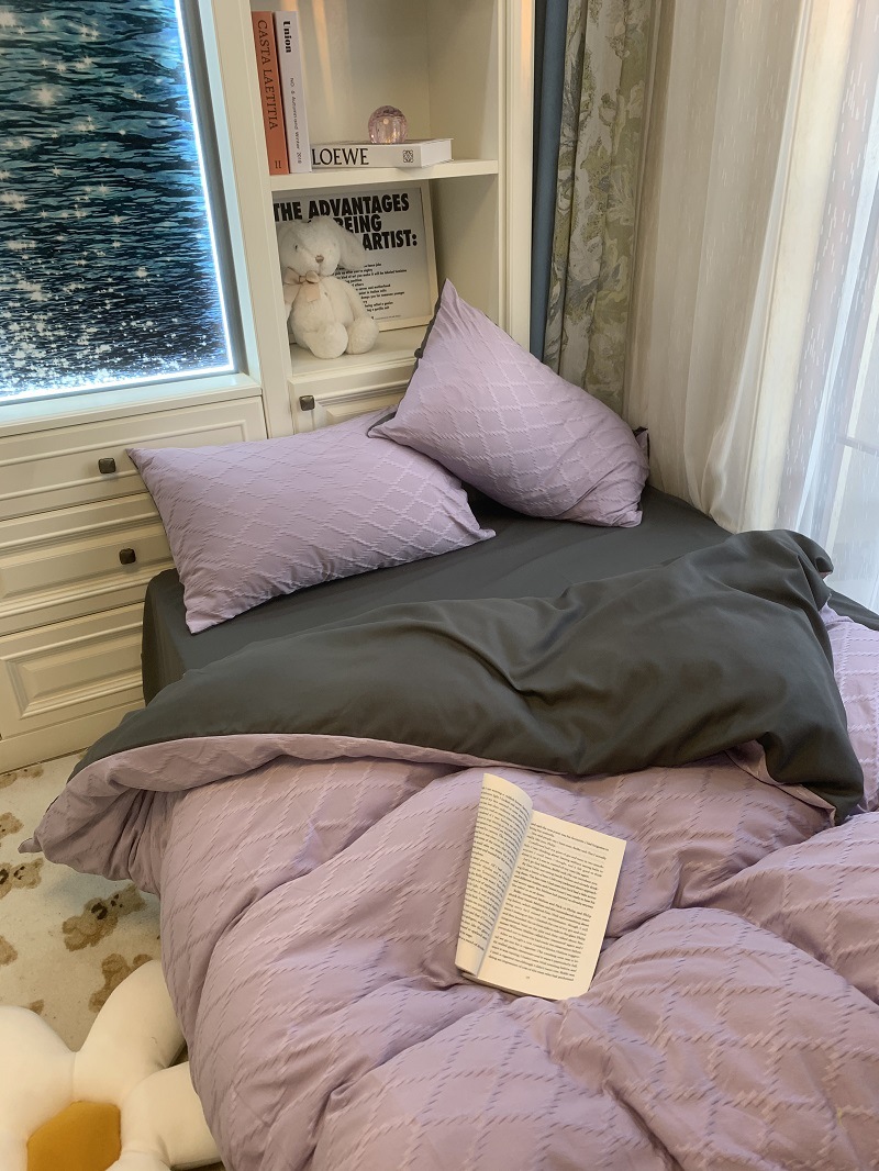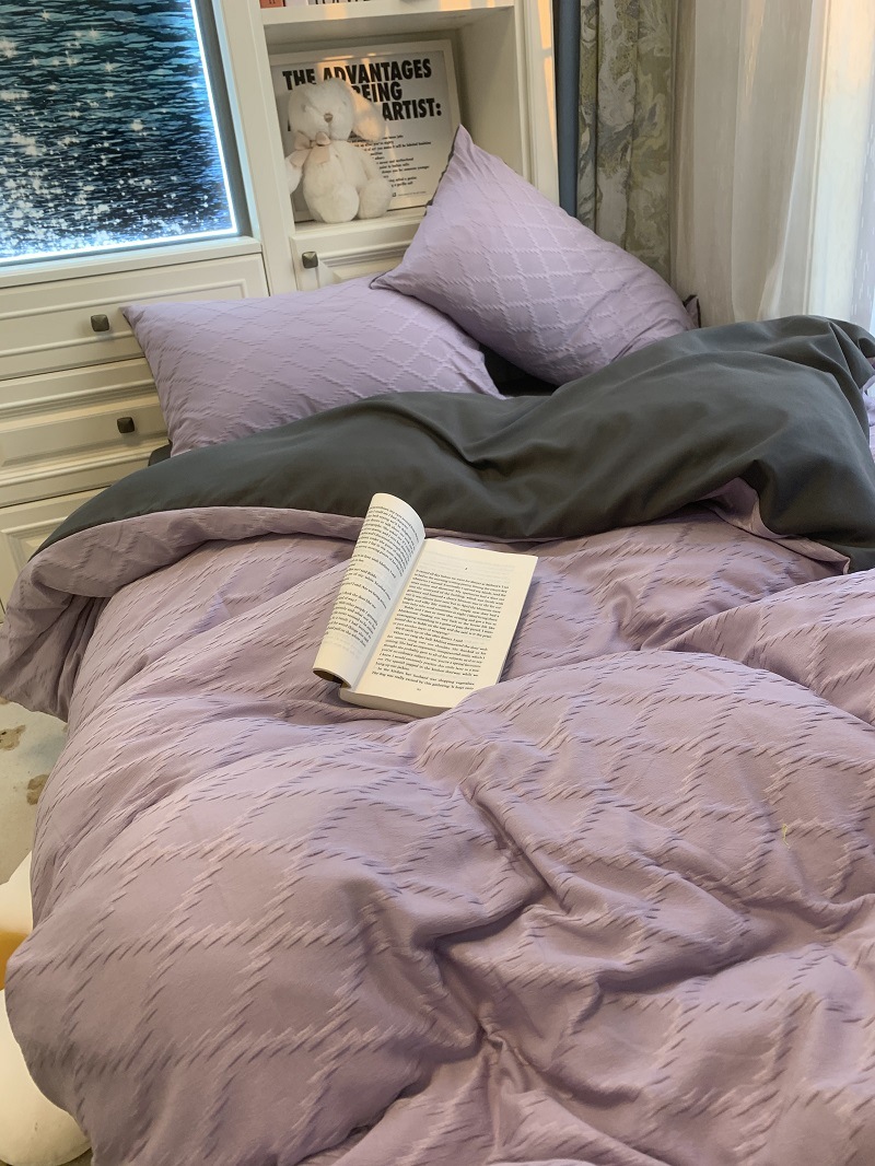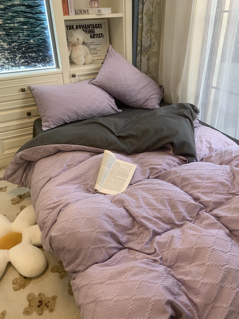 인 스타일 간단한 편안한 그레이 퍼플 믹스 워터 리플 퀼트 커버 침구 4 피스 기숙사 침대 시트 3 피스 세트