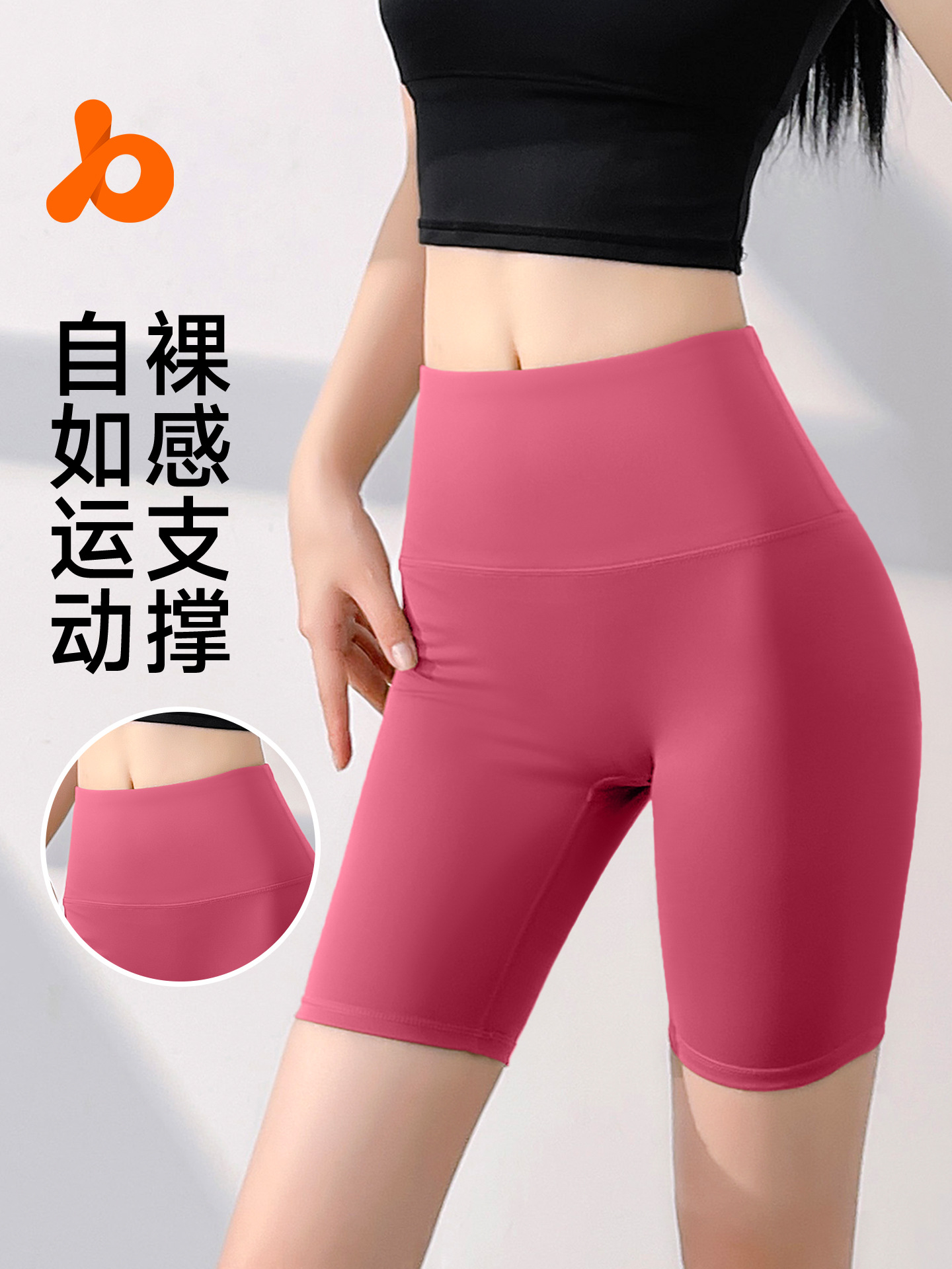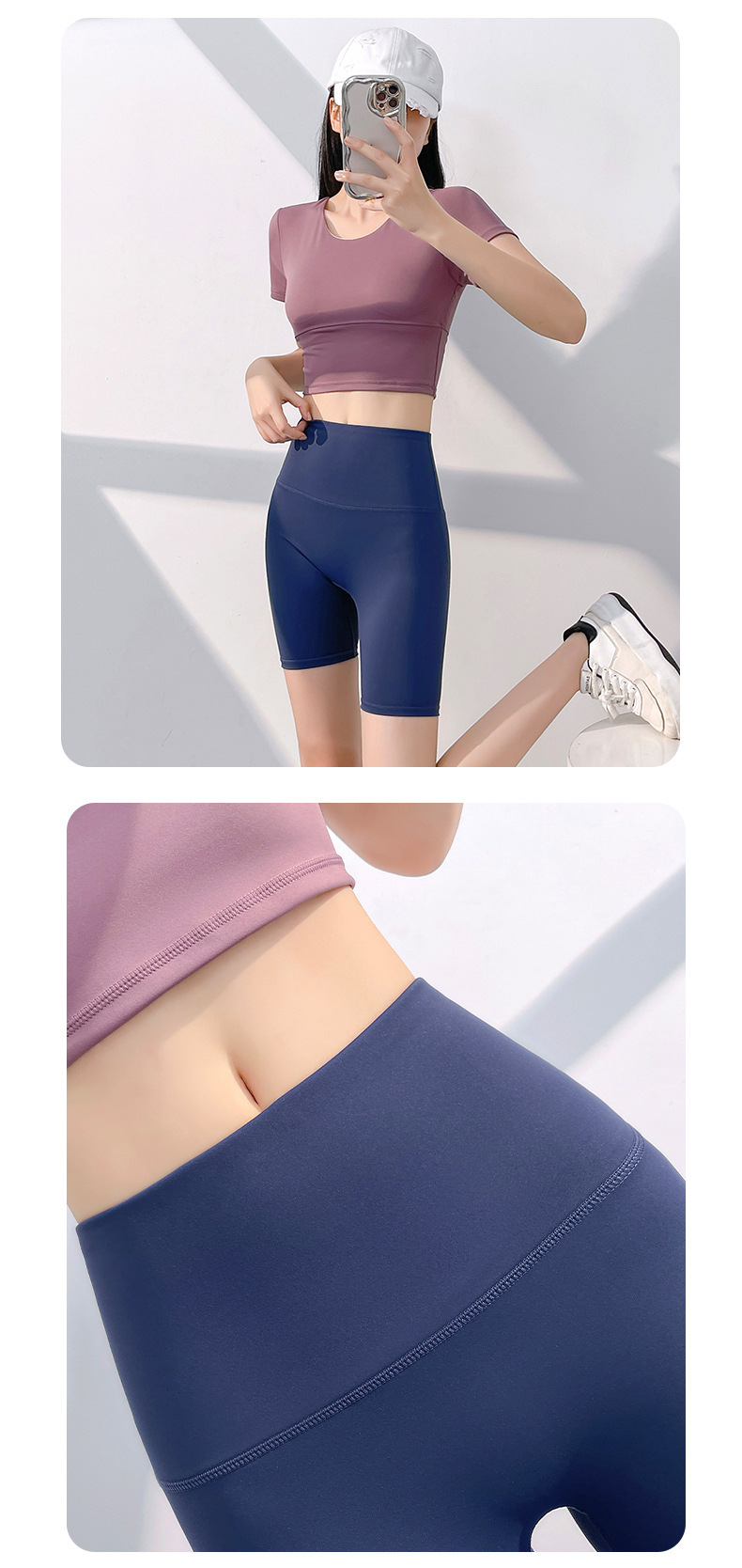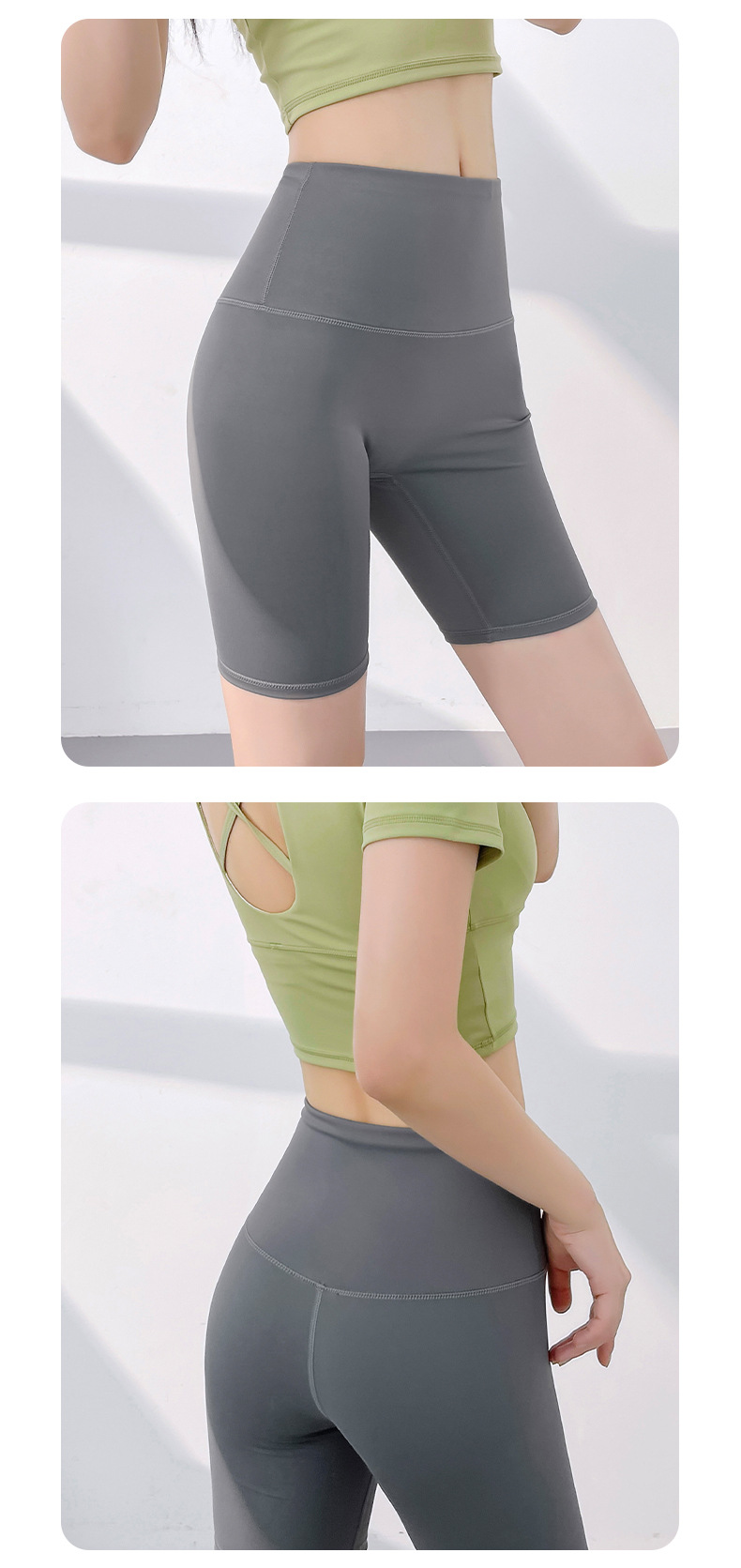Juyitang 어색한 라인이 없는 요가 반바지 스포츠 5부 바지 누드 느낌의 하이 웨이스트 엉덩이 리프팅 요가 바지 여성용 짧은 스타일
