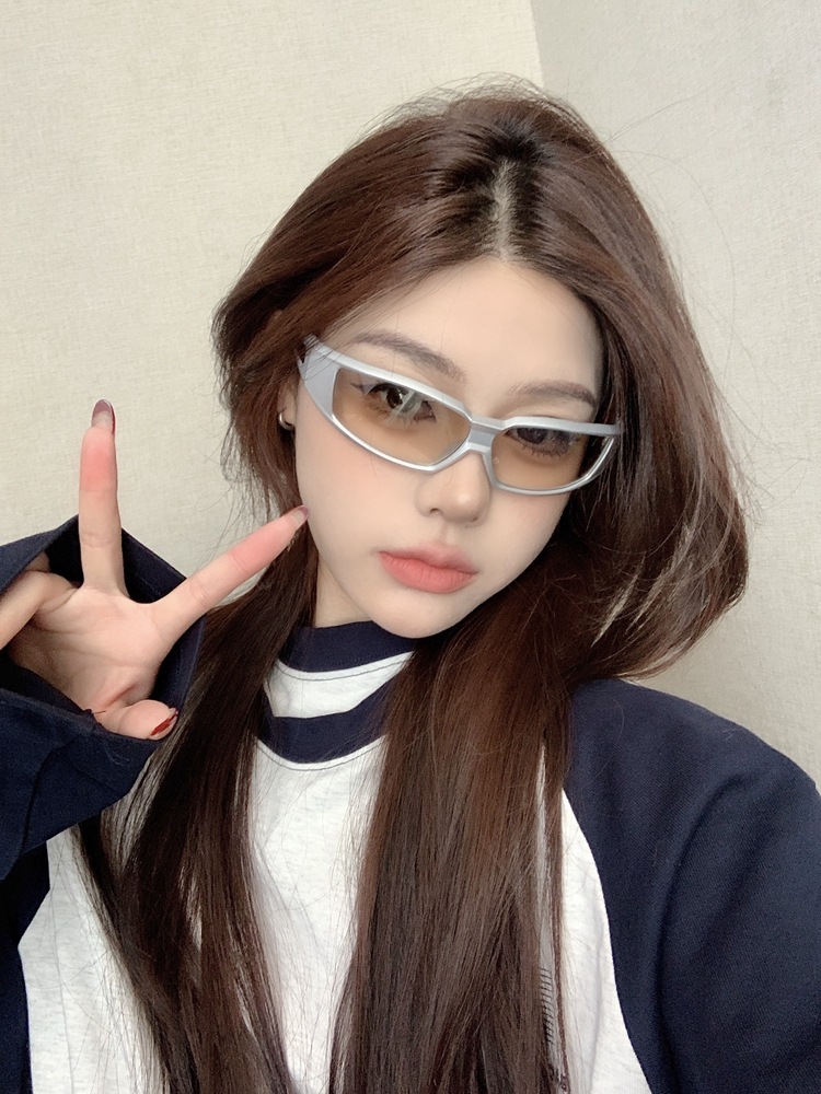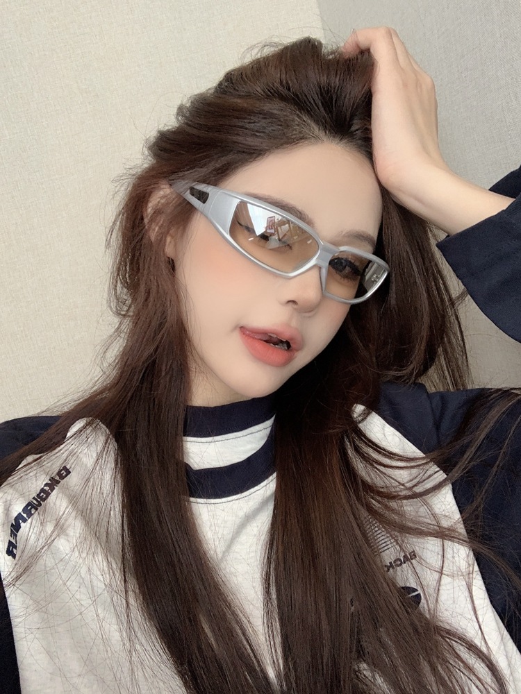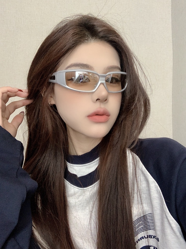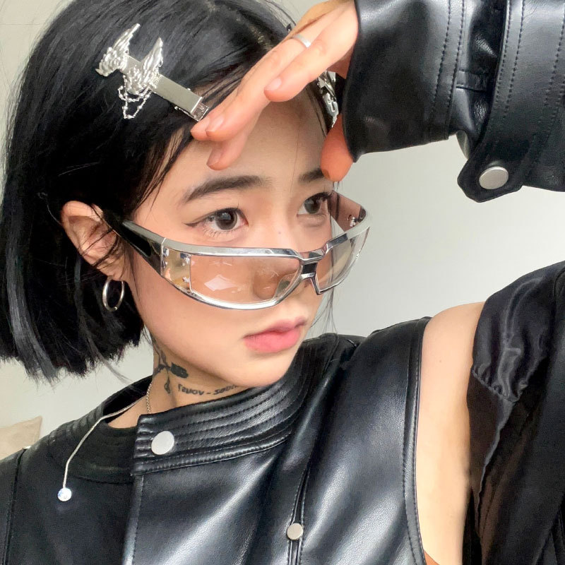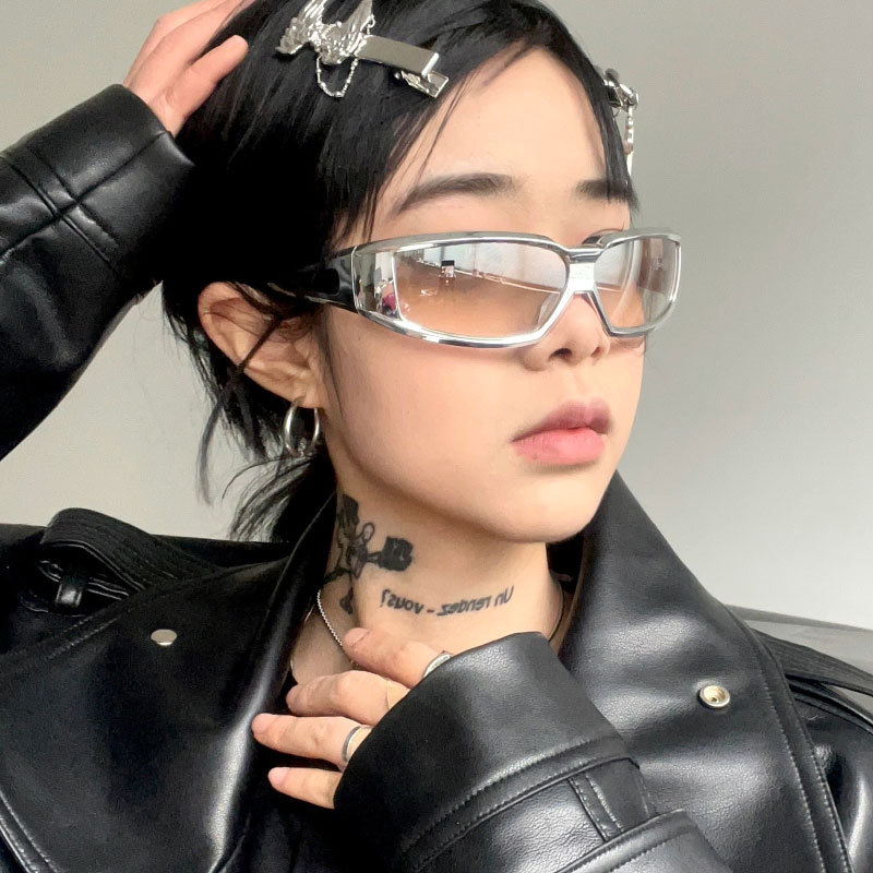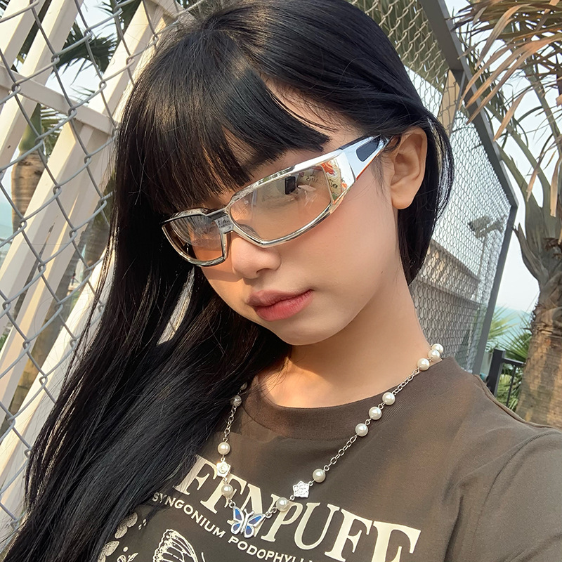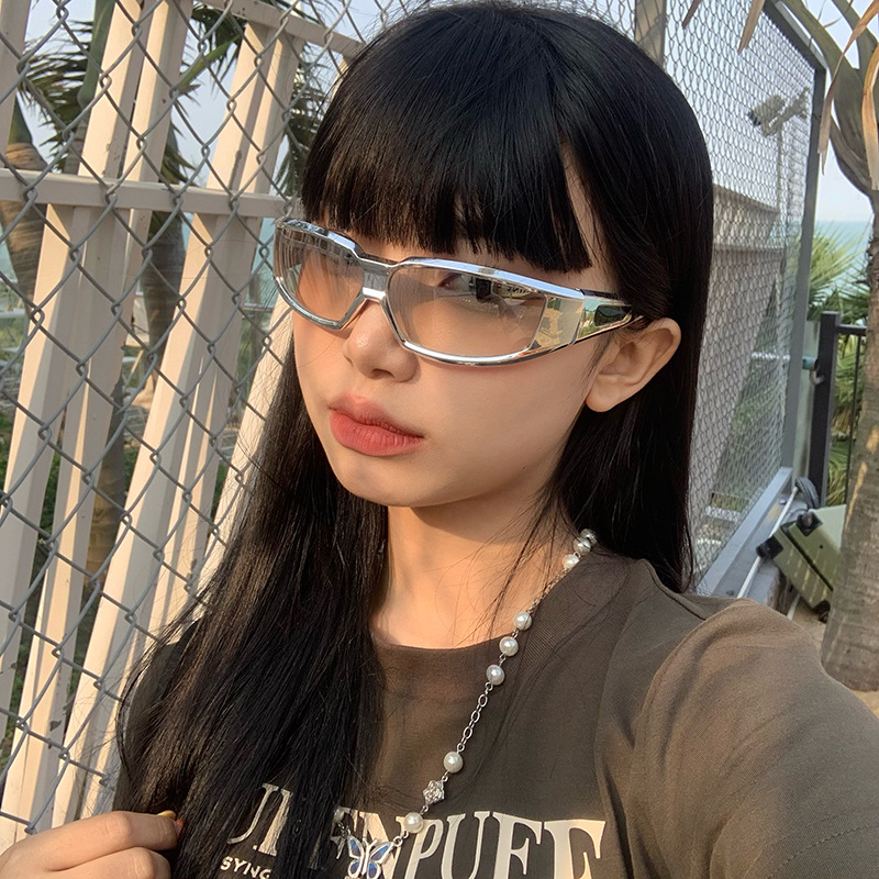 미래의 전사 실버 반짝이는 선글라스 멋진 기술 감각 사이버 스타일 사각형 반사 실버 프레임 바 디스코 안경