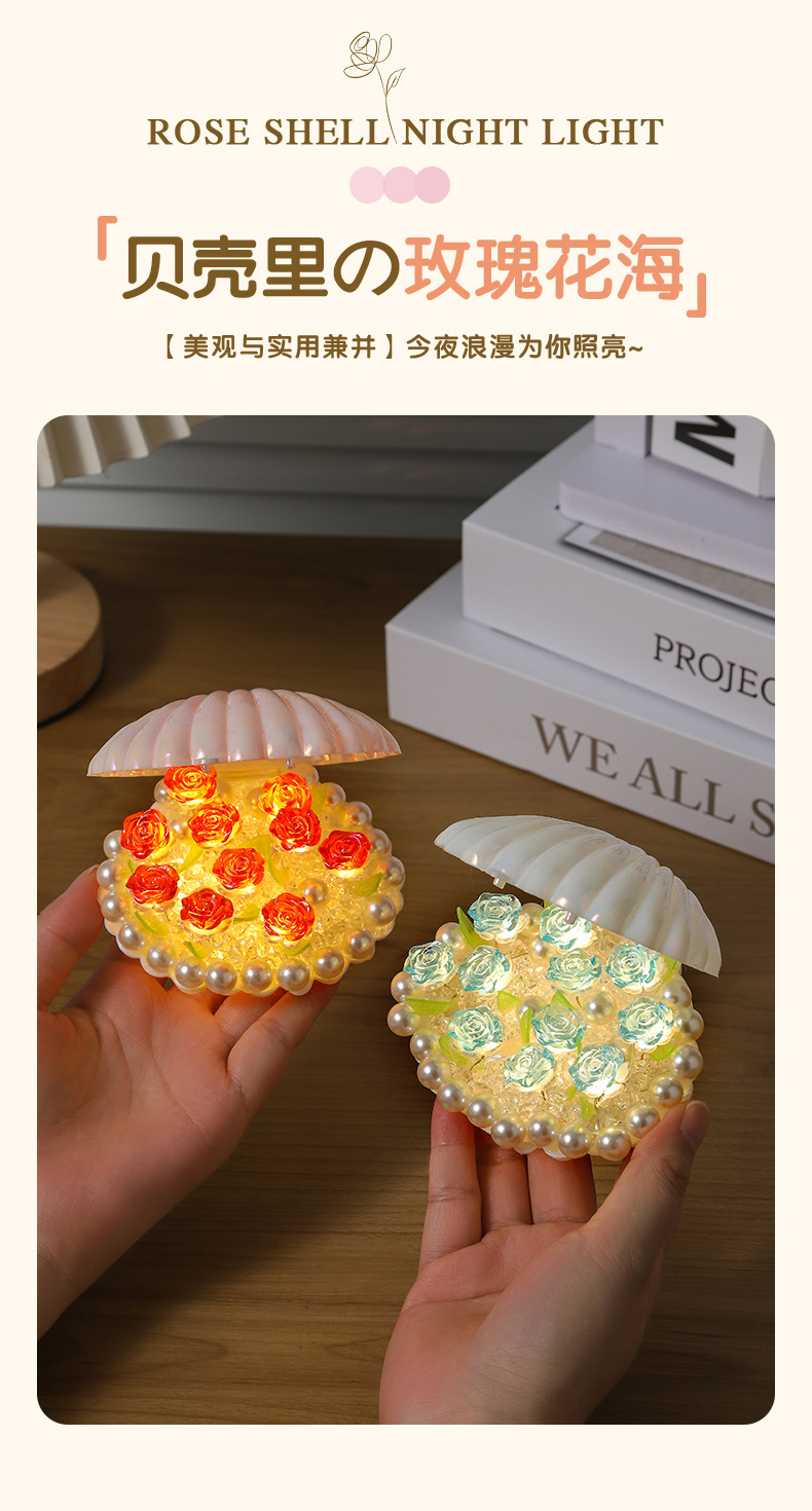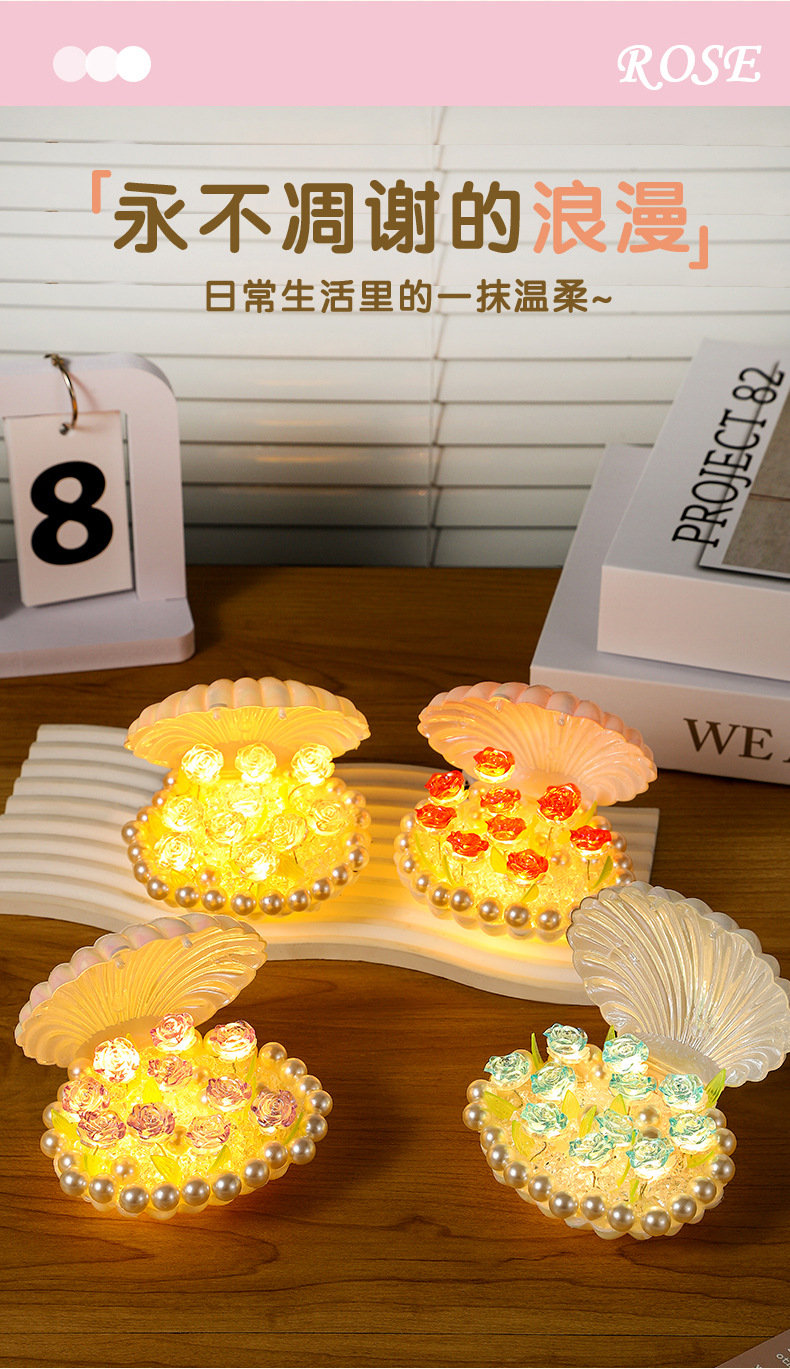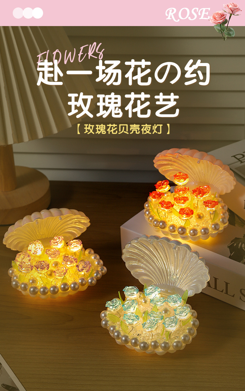 DIY 조개껍데기 장미 무드등, 남자친구, 여자친구, 절친한 친구를 위한 생일, 스승의 날 선물, 분위기 조명