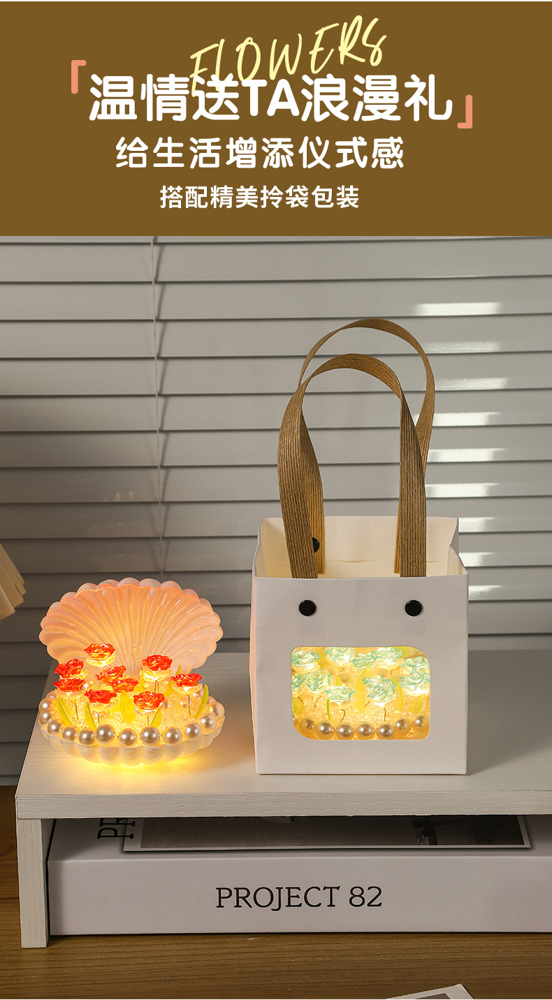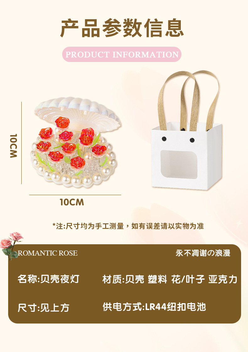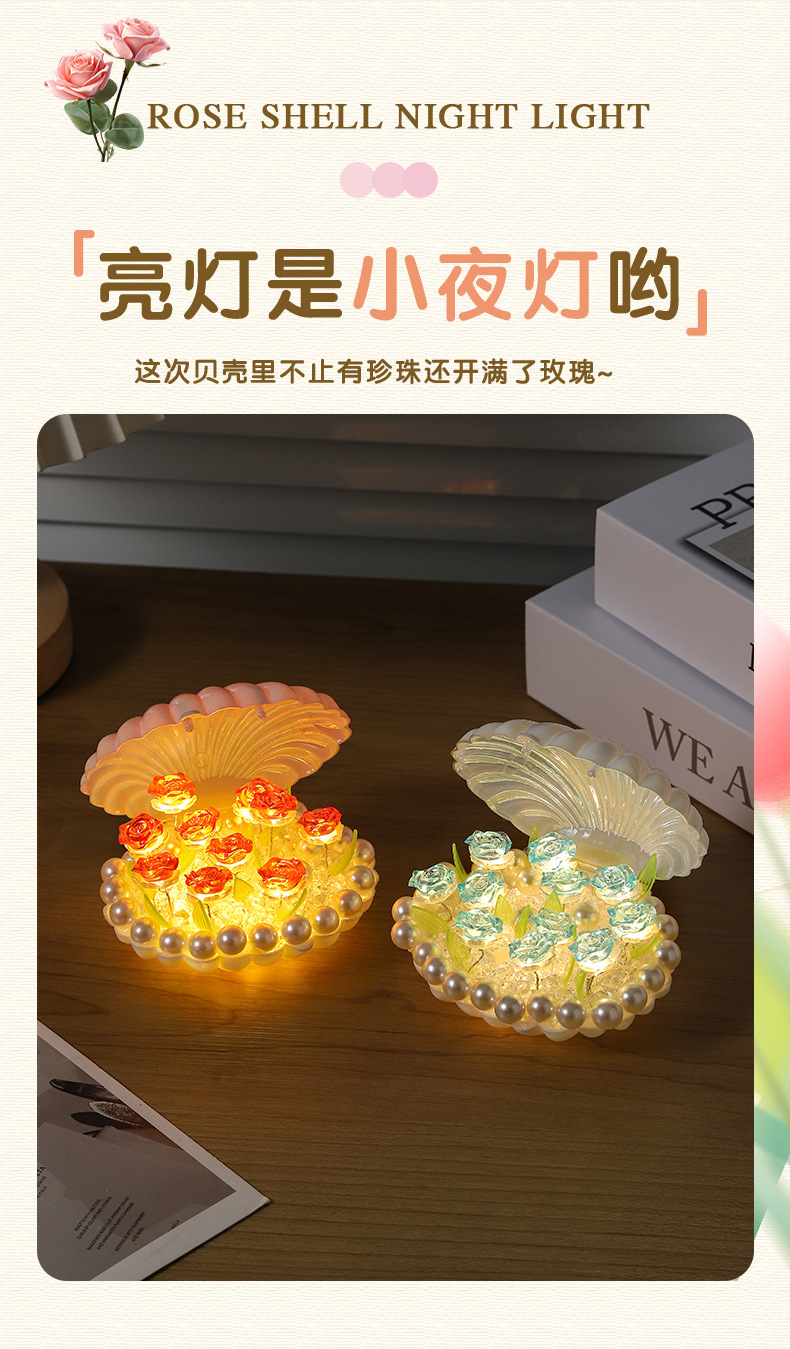 DIY 조개껍데기 장미 무드등, 남자친구, 여자친구, 절친한 친구를 위한 생일, 스승의 날 선물, 분위기 조명