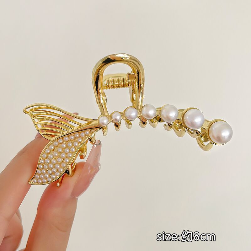 • 스몰 사이즈 진주 피쉬 테일 캐치 클립 8CM