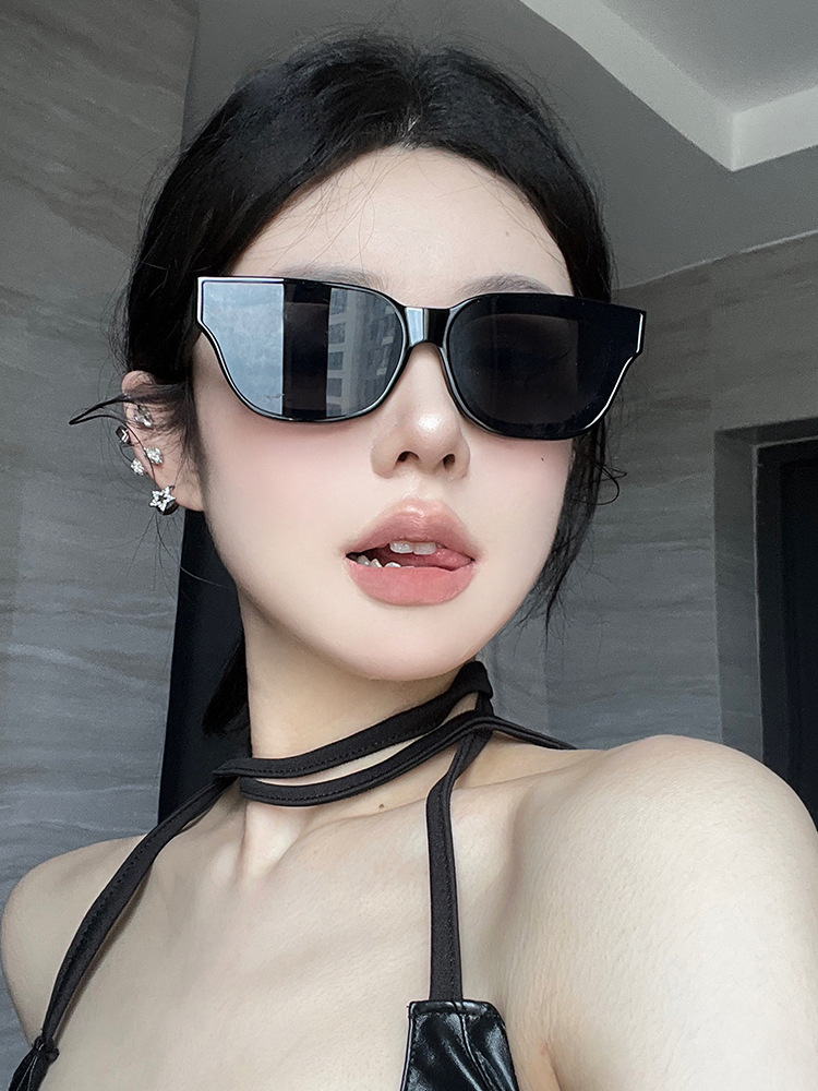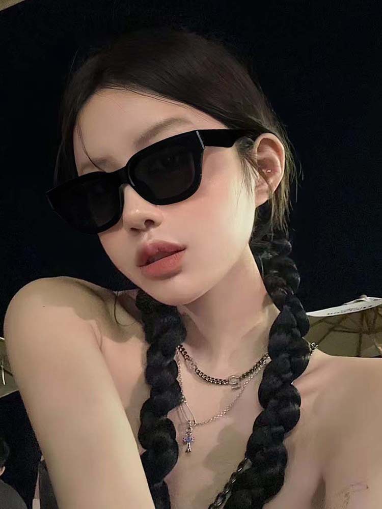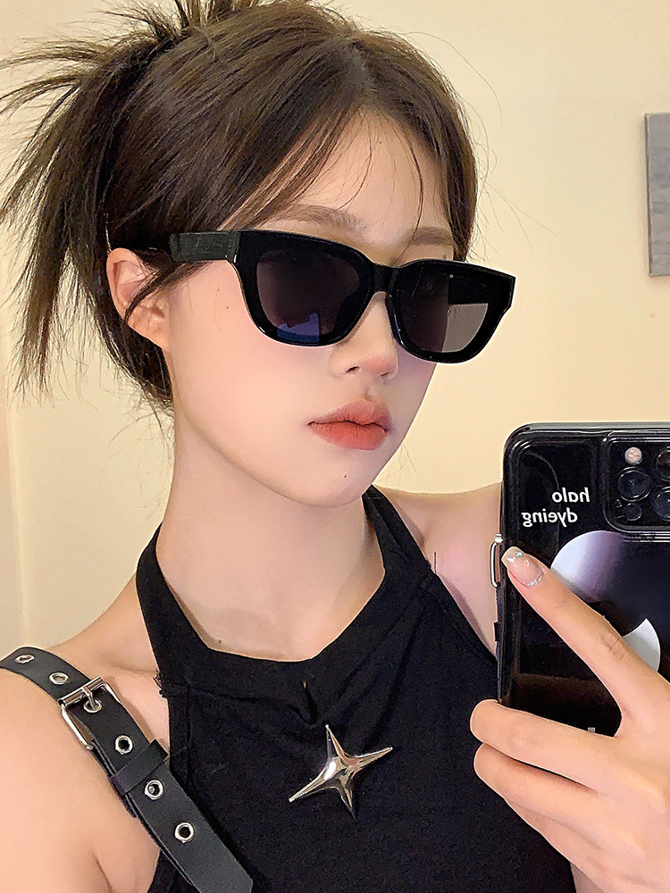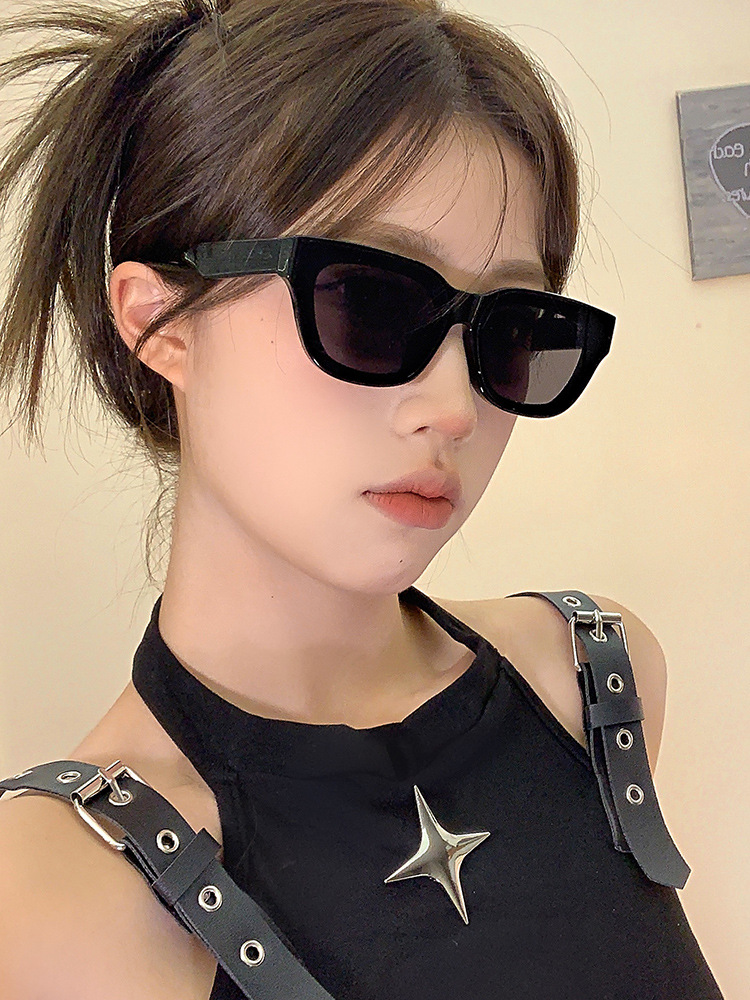 맞춤형 레트로 작은 프레임 블랙 프레임 차 선글라스 여성 한국식 트렌디 인터넷 인기 스트리트 힙합 선글라스 안티 자외선