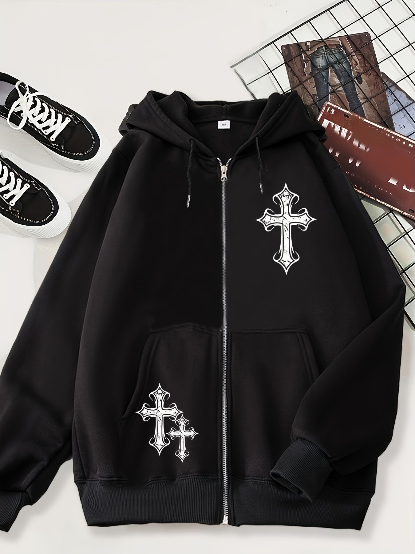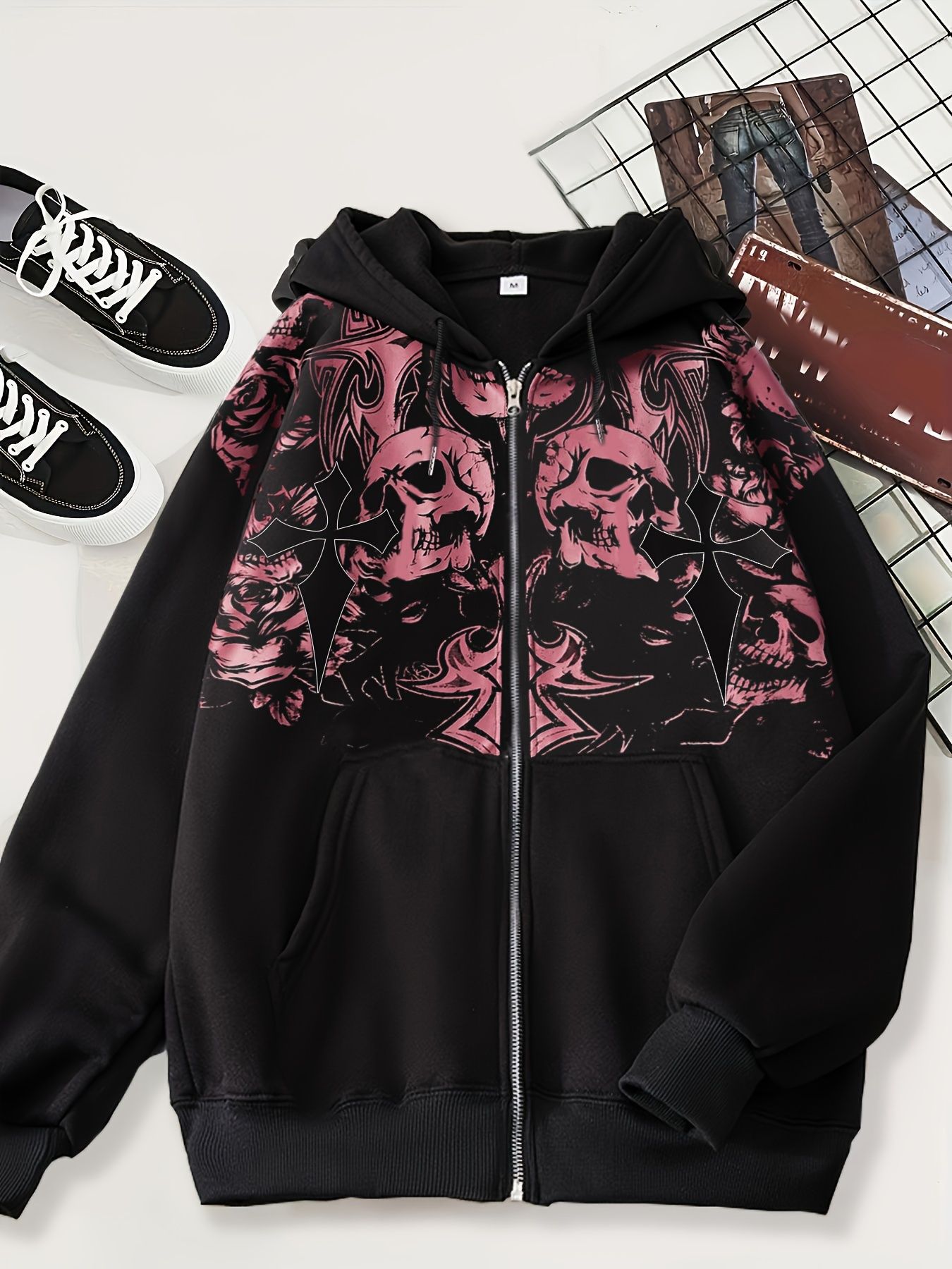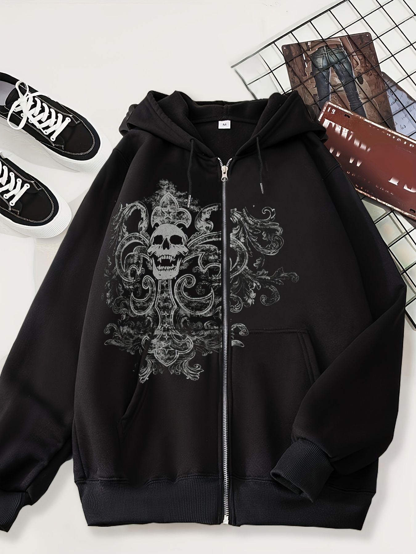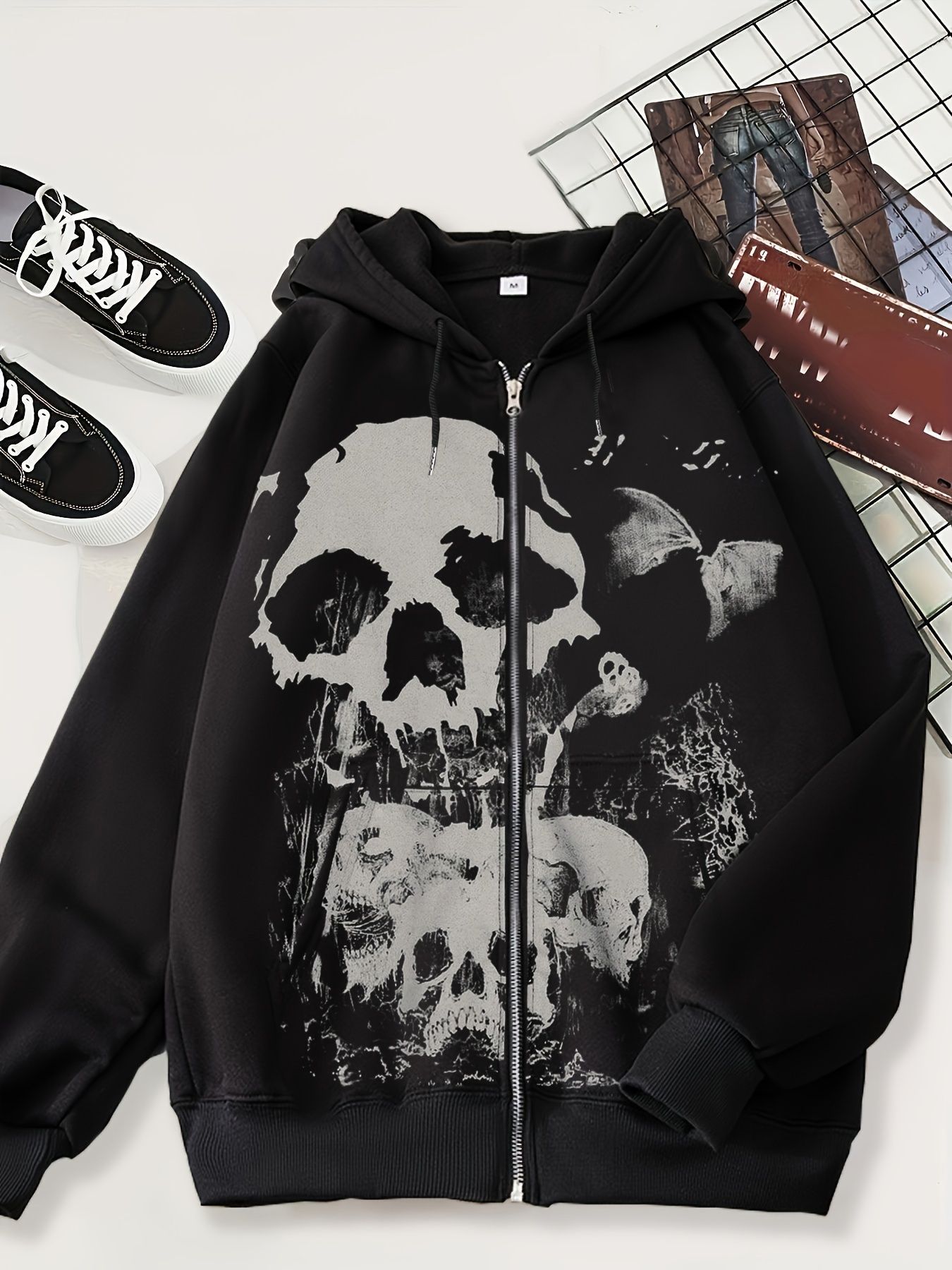 2024 새로운 카디건 스웨터 다크 스컬 캐주얼 아메리칸 스타일 남성 스타일 후드 블랙 타이드 블랙 재킷스토어 가기