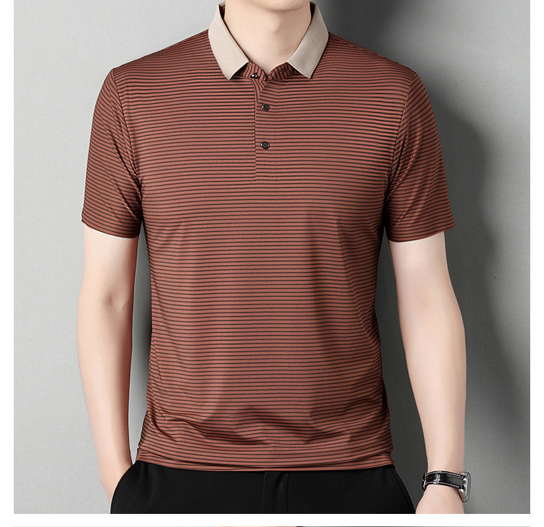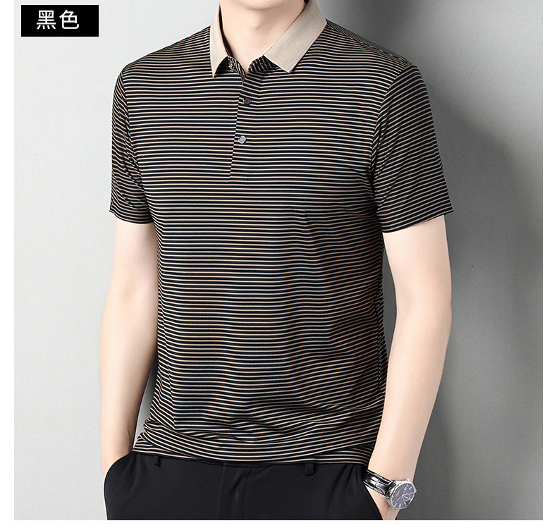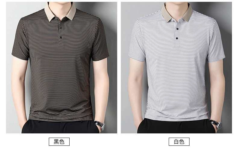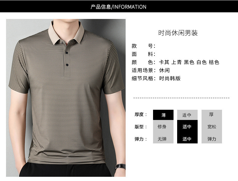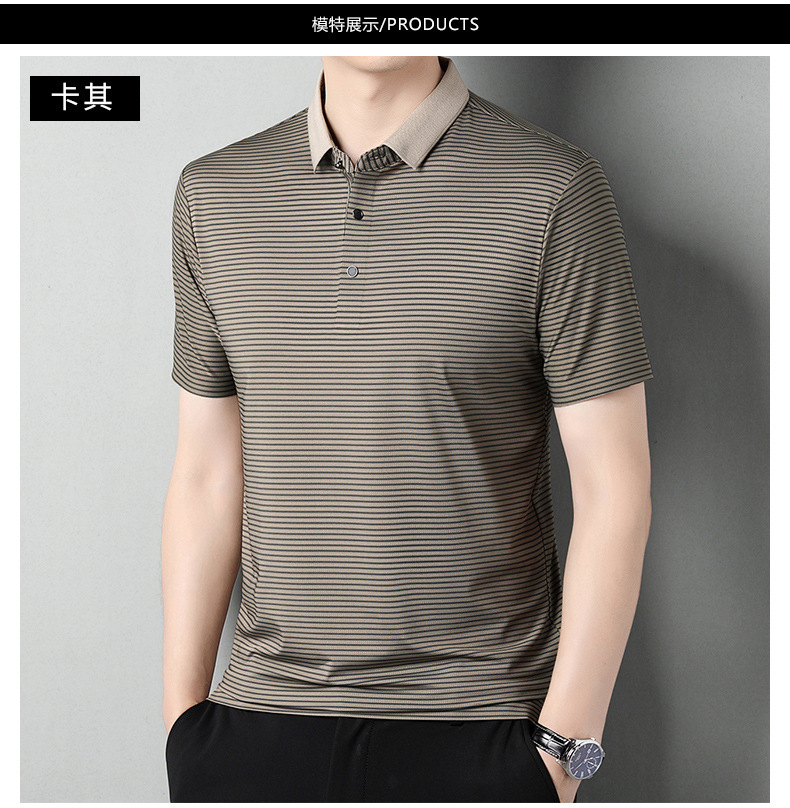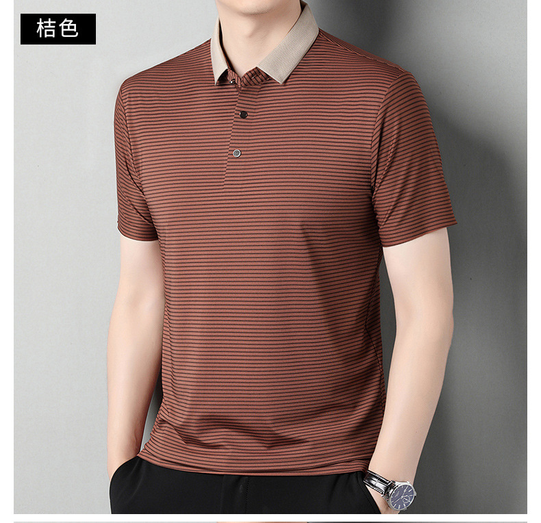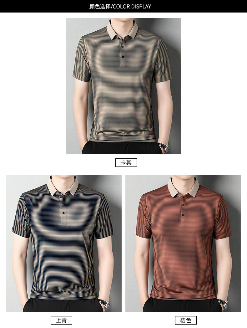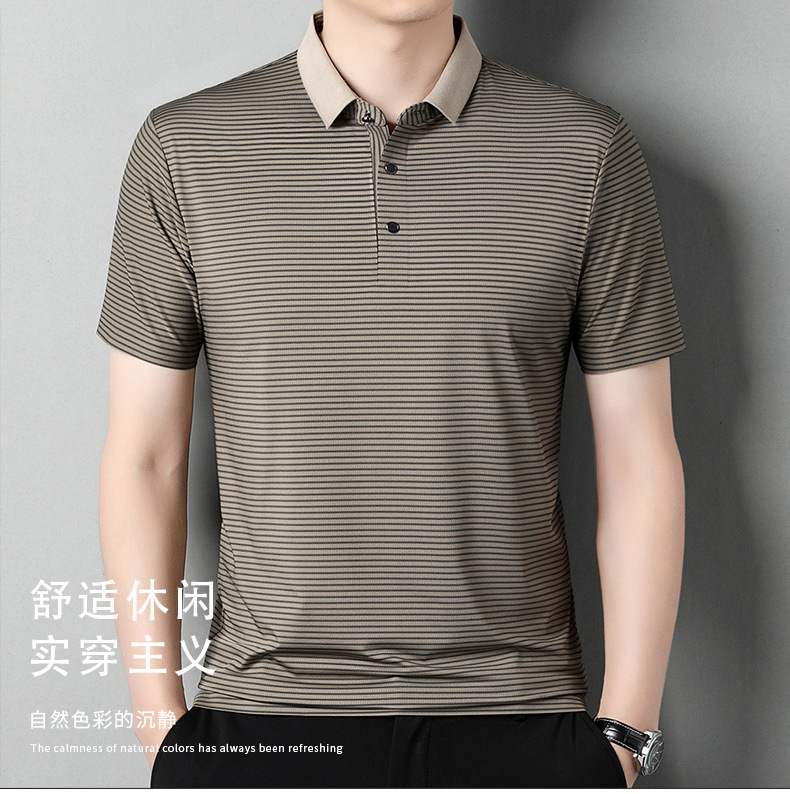 2024夏季新款男式无痕冰丝短袖T恤宽松透气翻领polo衫爸爸装上衣