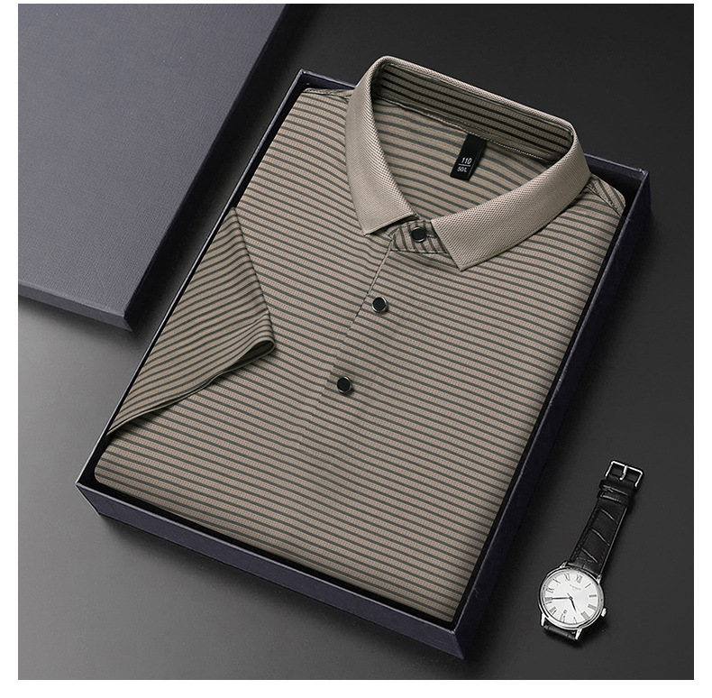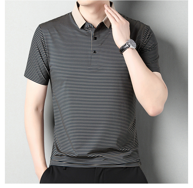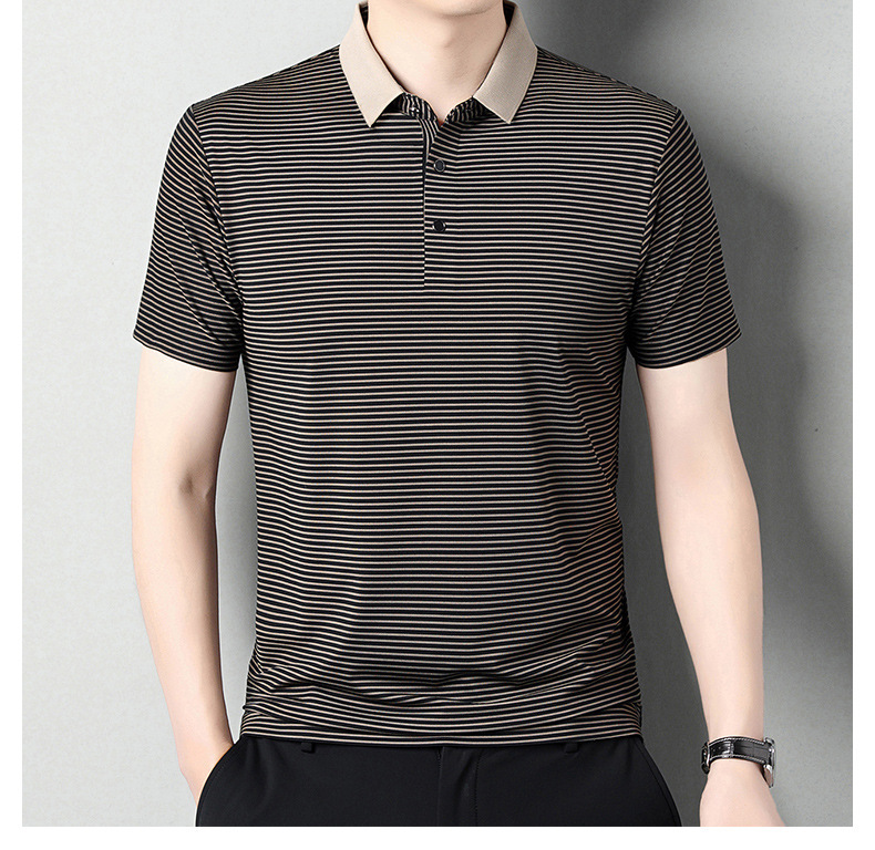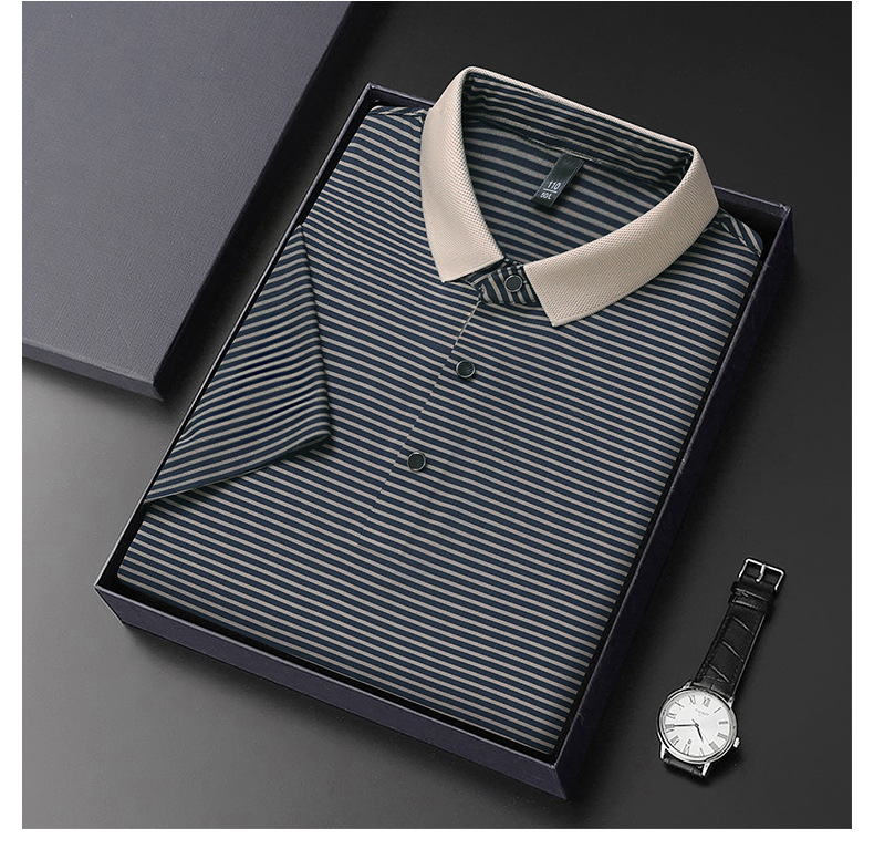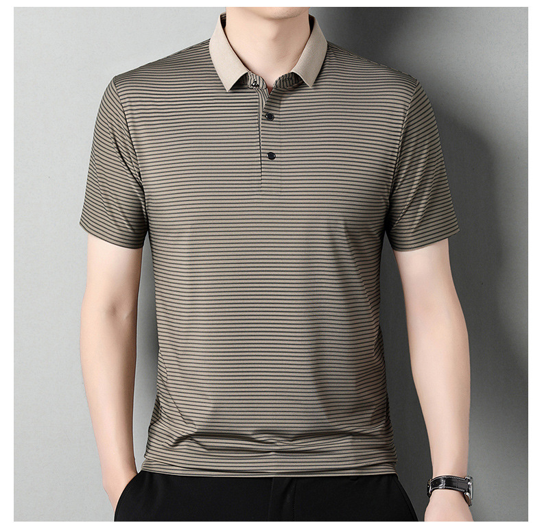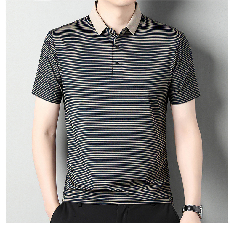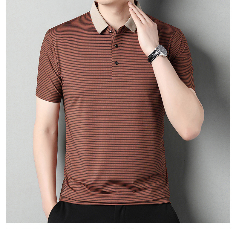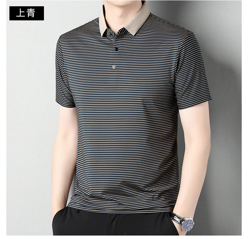 2024夏季新款男式无痕冰丝短袖T恤宽松透气翻领polo衫爸爸装上衣