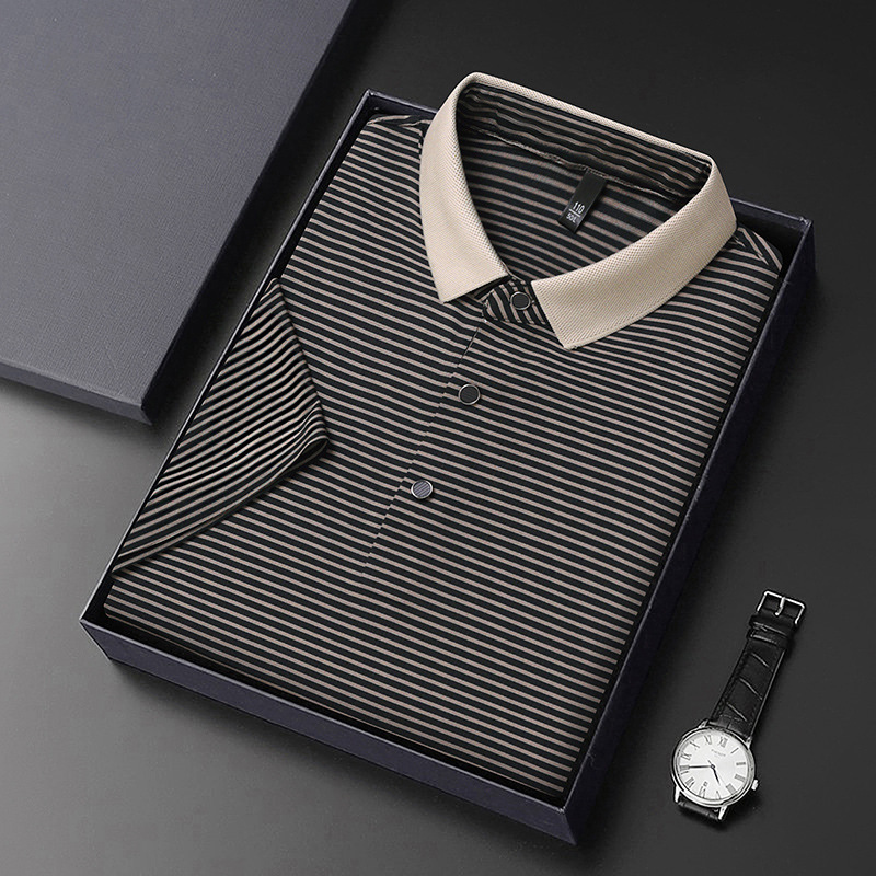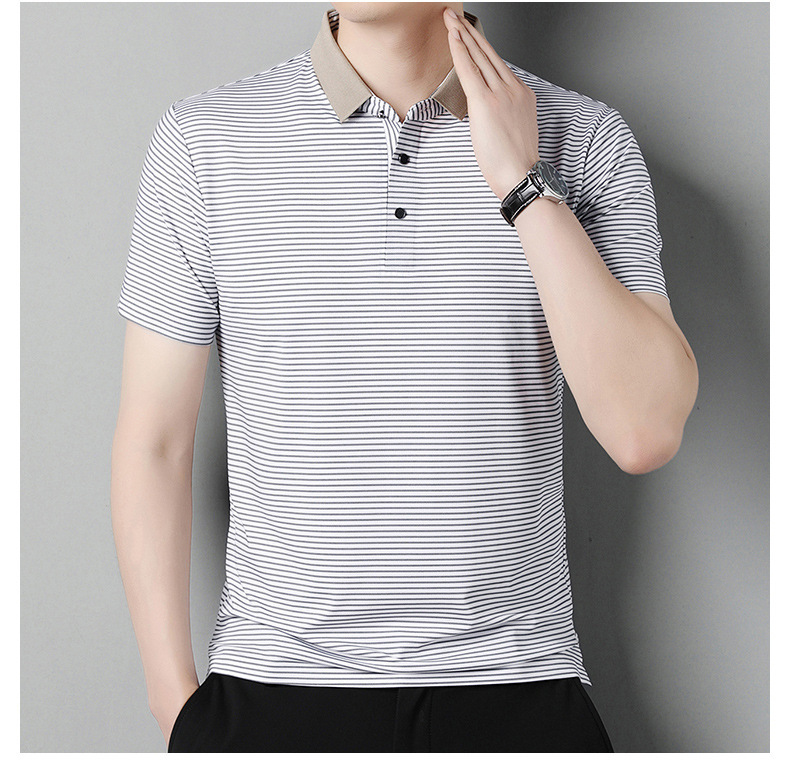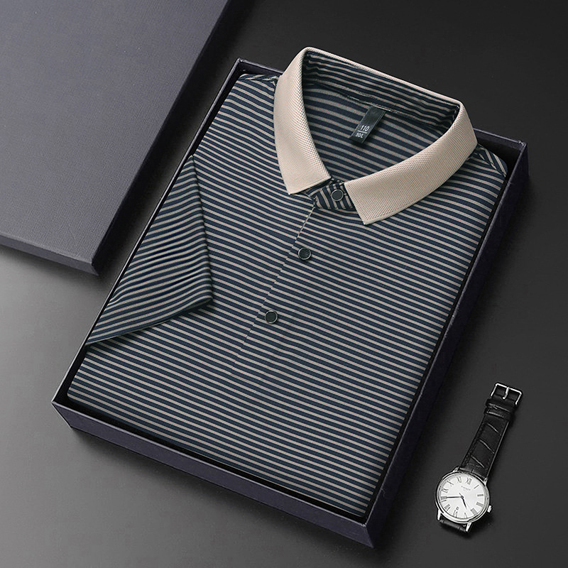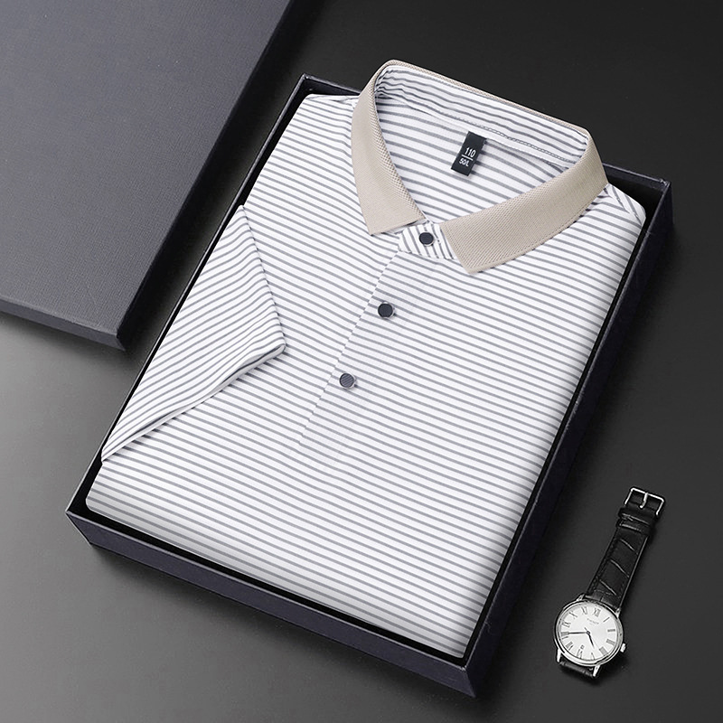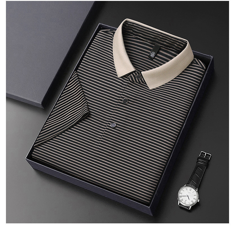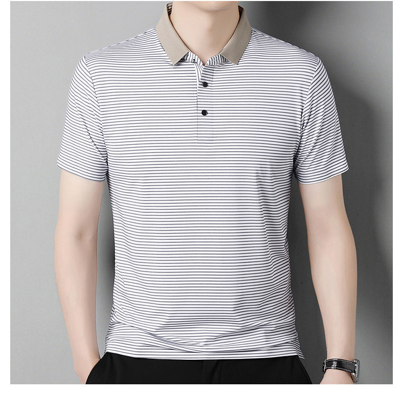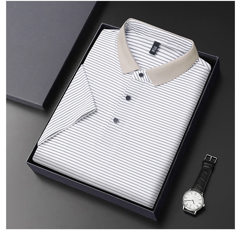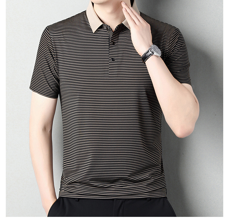 2024夏季新款男式无痕冰丝短袖T恤宽松透气翻领polo衫爸爸装上衣