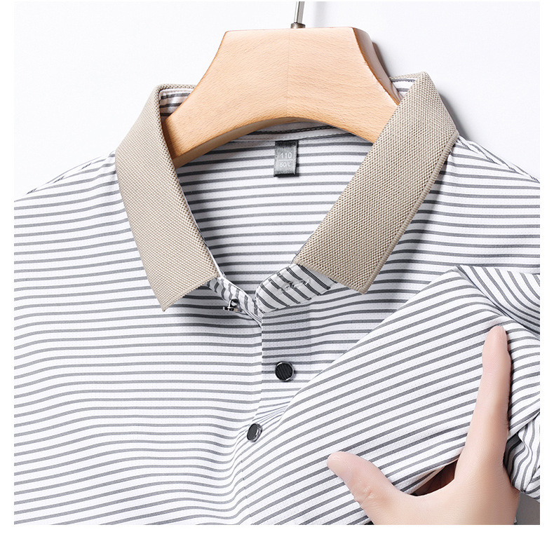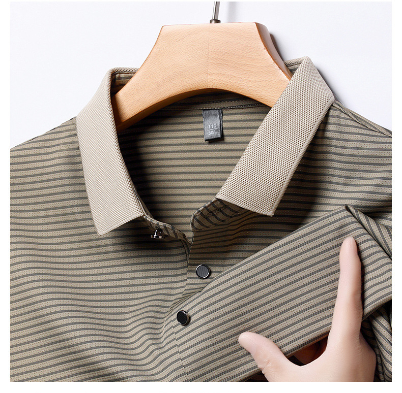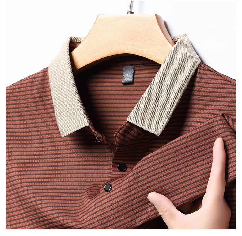 2024 년 여름 새로운 남성 원활한 아이스 실크 반팔 티셔츠 느슨한 통기성 옷깃 폴로 셔츠 아빠 탑스토어 가기