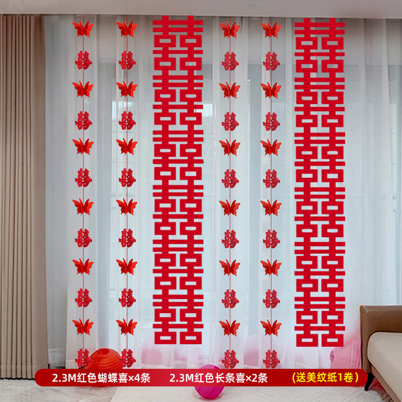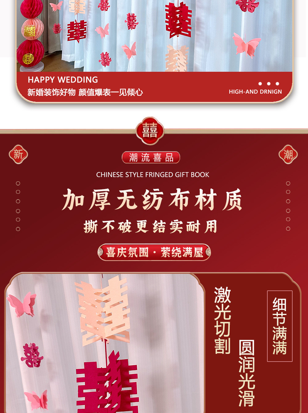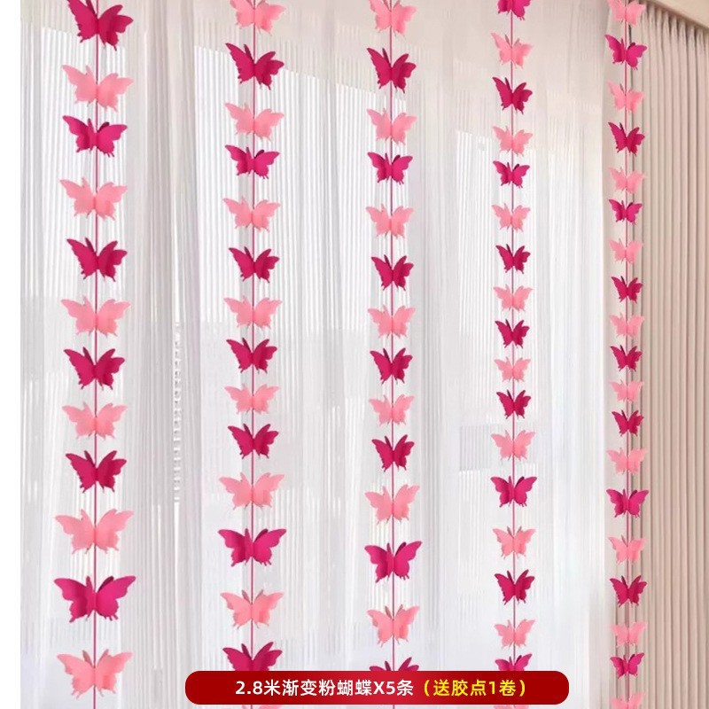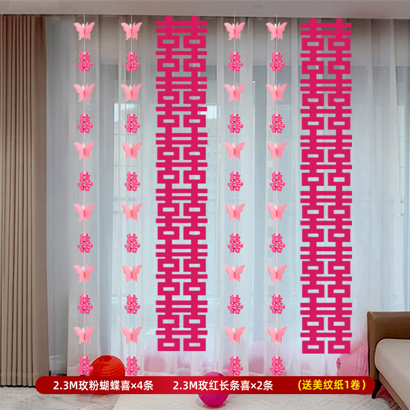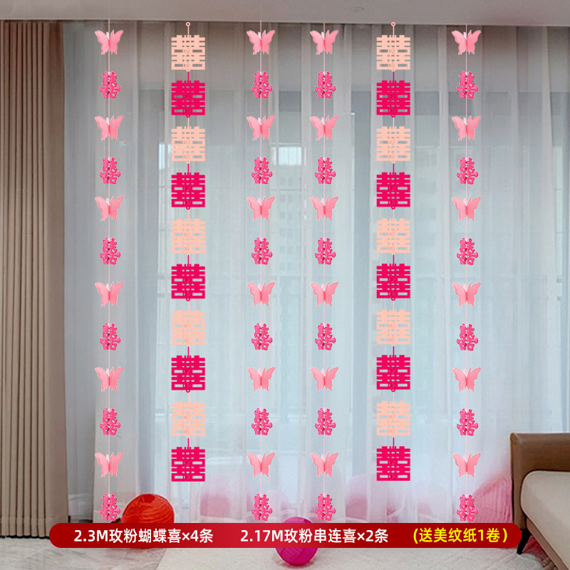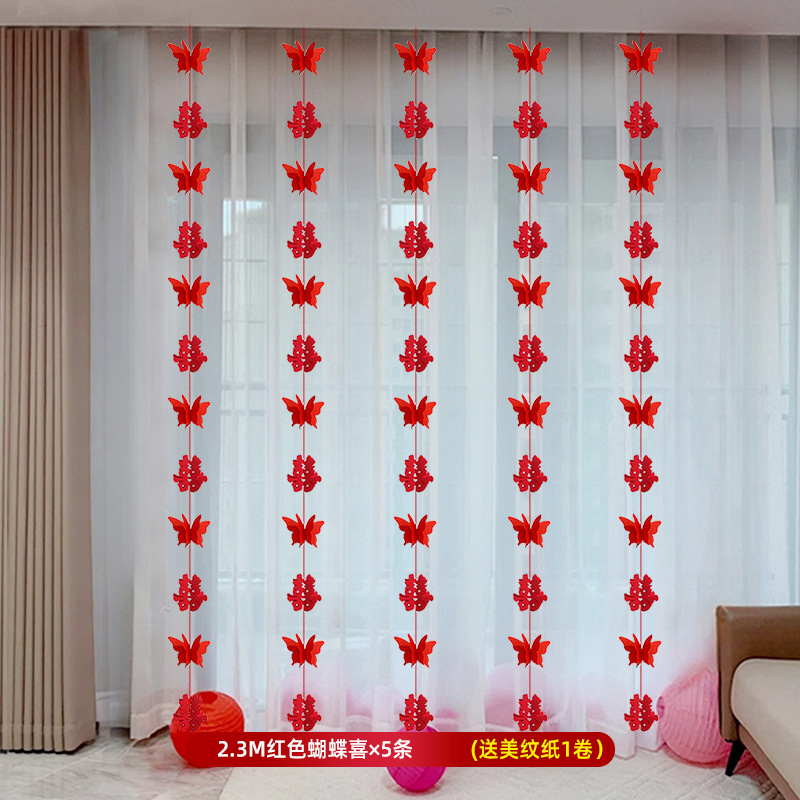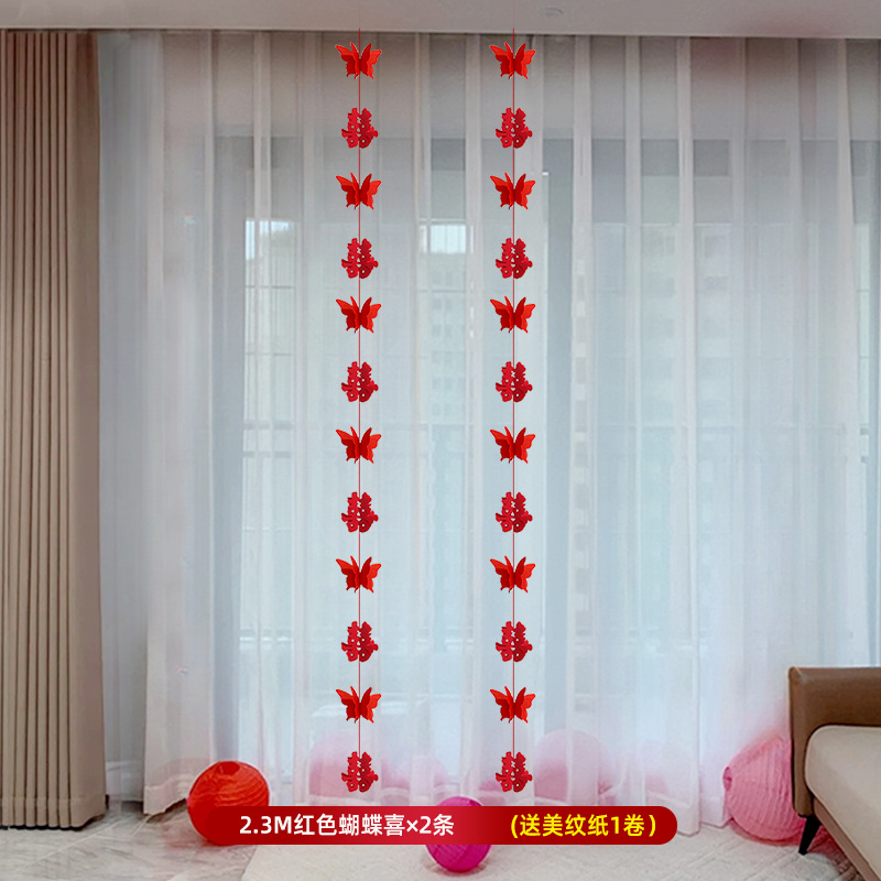 웨딩 룸 장식 거실 침실 커튼 장식 축제 꽃 긴 해피 워드 3 차원 나비 해피 스트링 펜던트