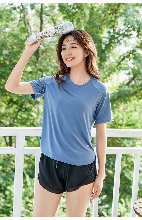 빠른 건조 셔츠 여자 스포츠 달리기 훈련 피트니스 세트 느슨한 플러스 사이즈 반팔 메쉬 통기성 탑 여름 아마존스토어 가기
