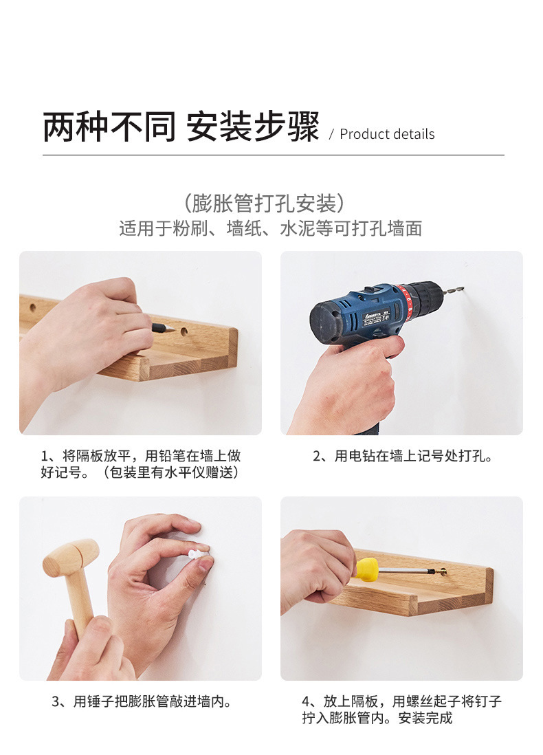 단단한 나무 벽 저장 랙 비 천공 라미네이트 벽걸이 벽 선반 TV 벽 장식 선반스토어 가기