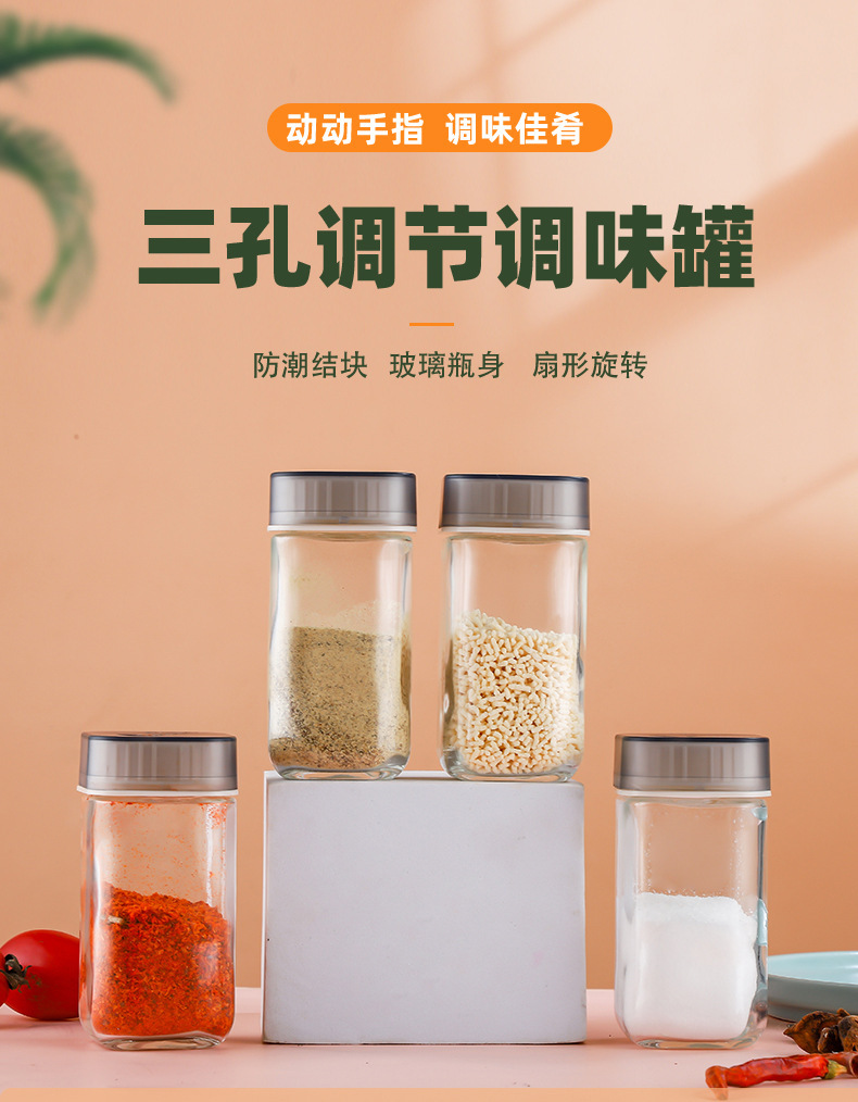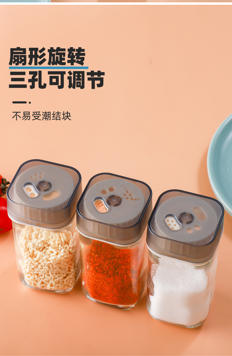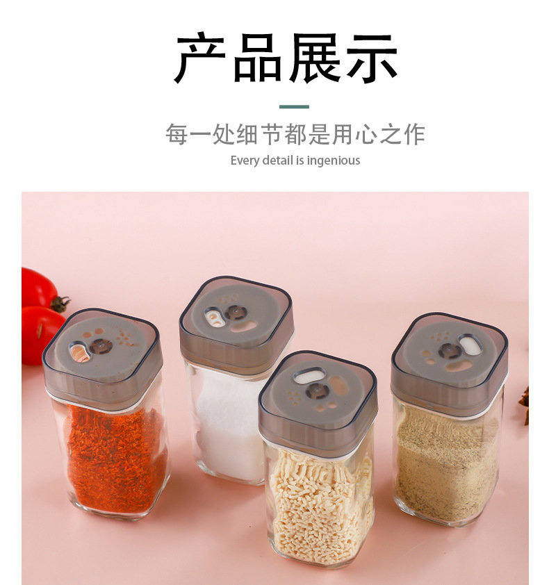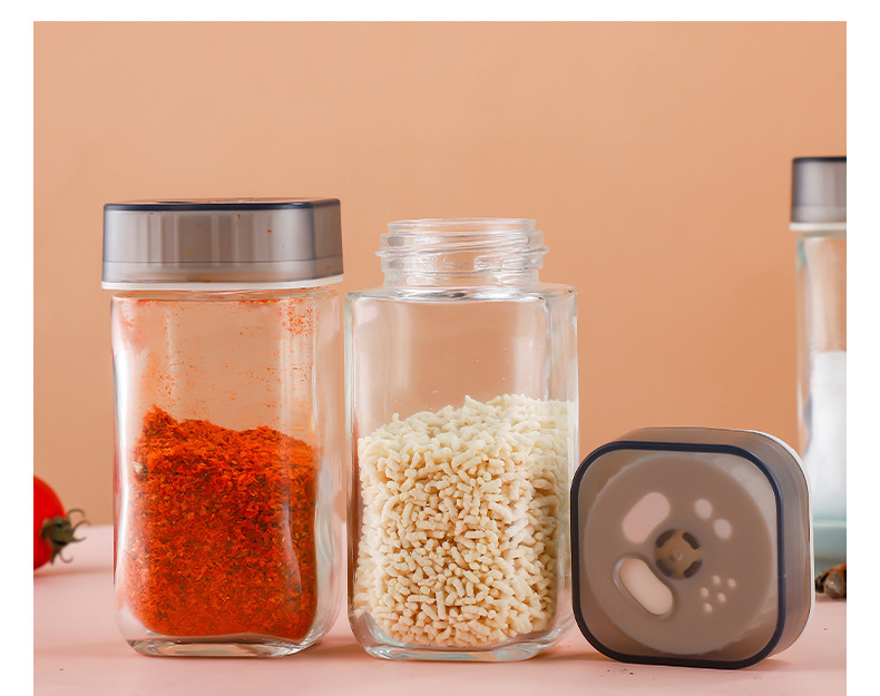 회전 양념 항아리 다공성 조미료 병 주방 가정용 밀봉 된 분말 통합 유리 조미료 항아리 보관 전체 세트스토어 가기