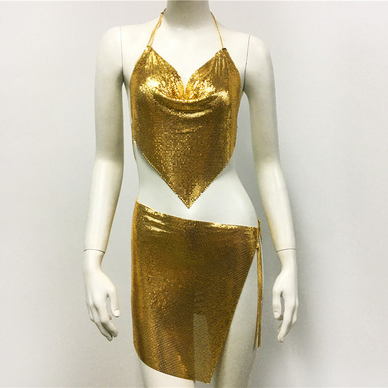 국경 간 여름 유럽과 미국 여성 세트 금속 스퀸 슬링 스커트 스파이스 걸스 나이트 샵 섹시한 조끼 스커트 여성스토어 가기
