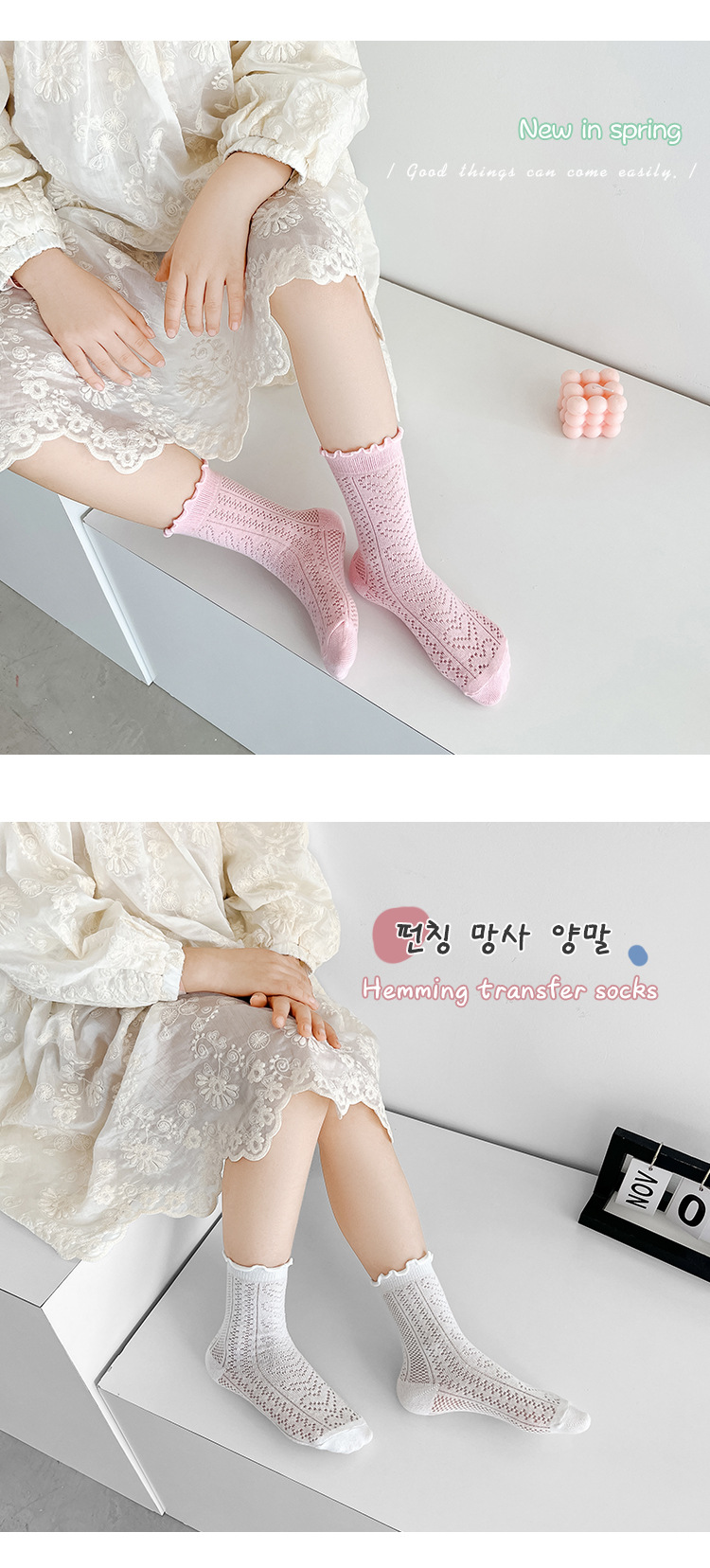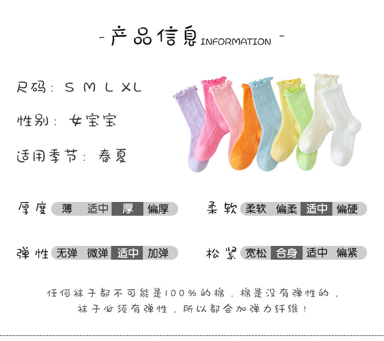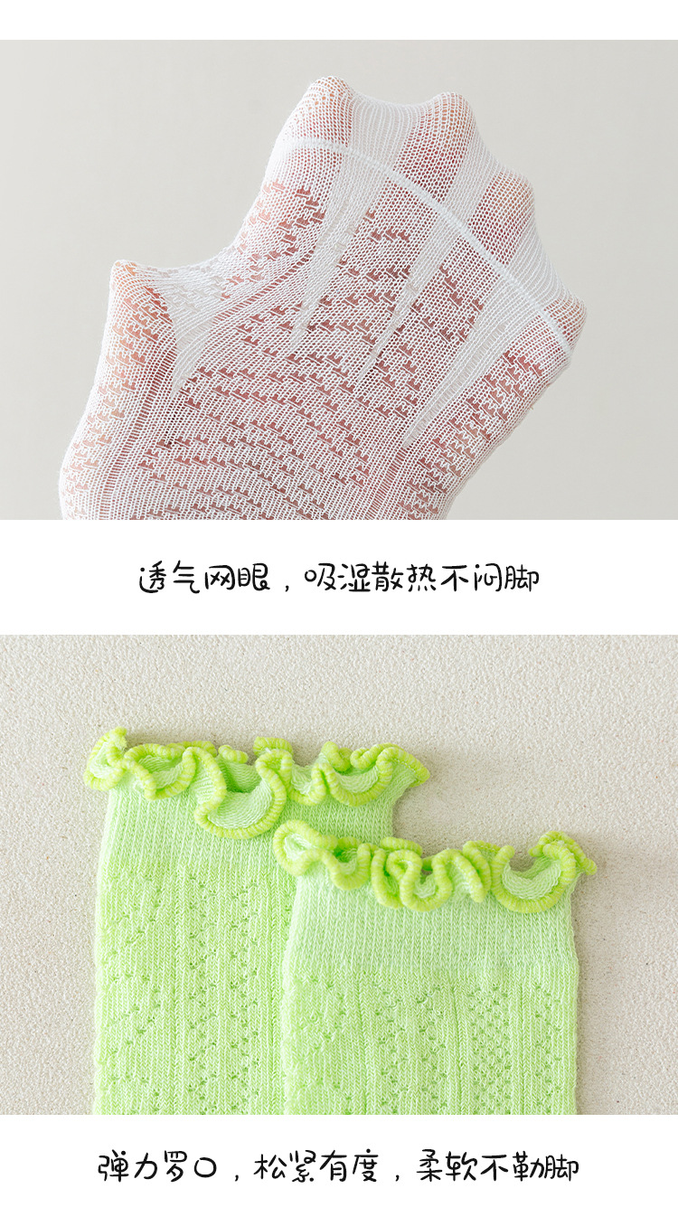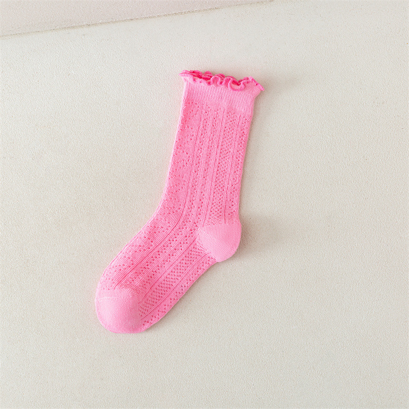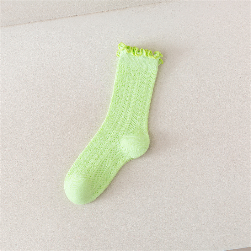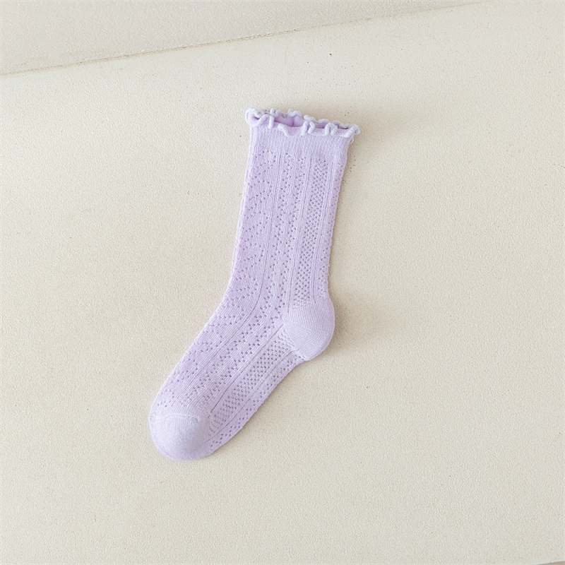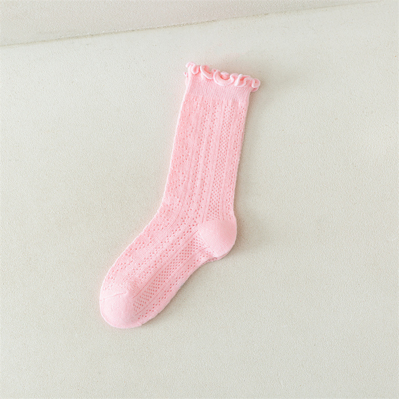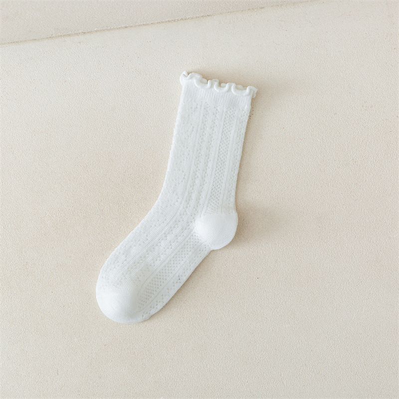 어린이 양말 새로운 도착 봄과 여름 귀 가장자리 단색 공주 양말 얇은 레이스 소녀 메쉬 양말 면화