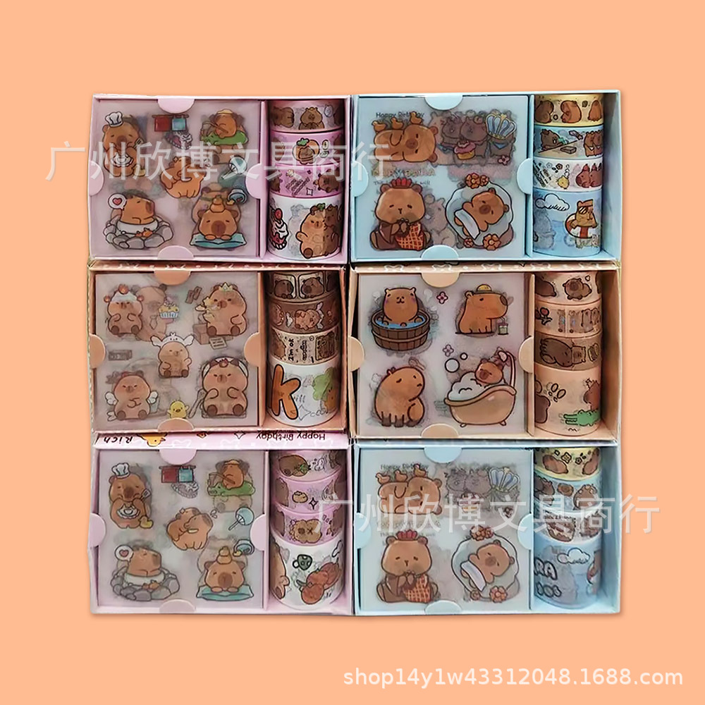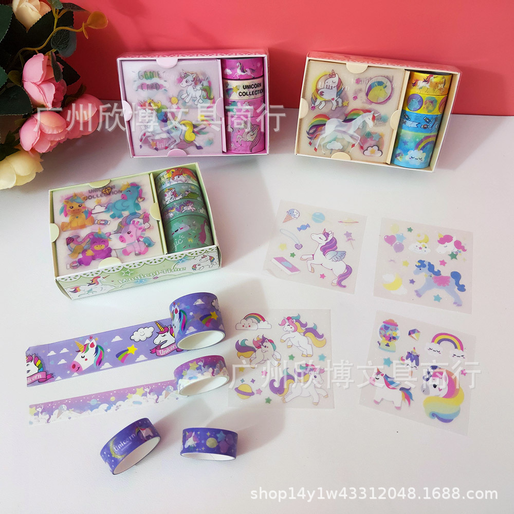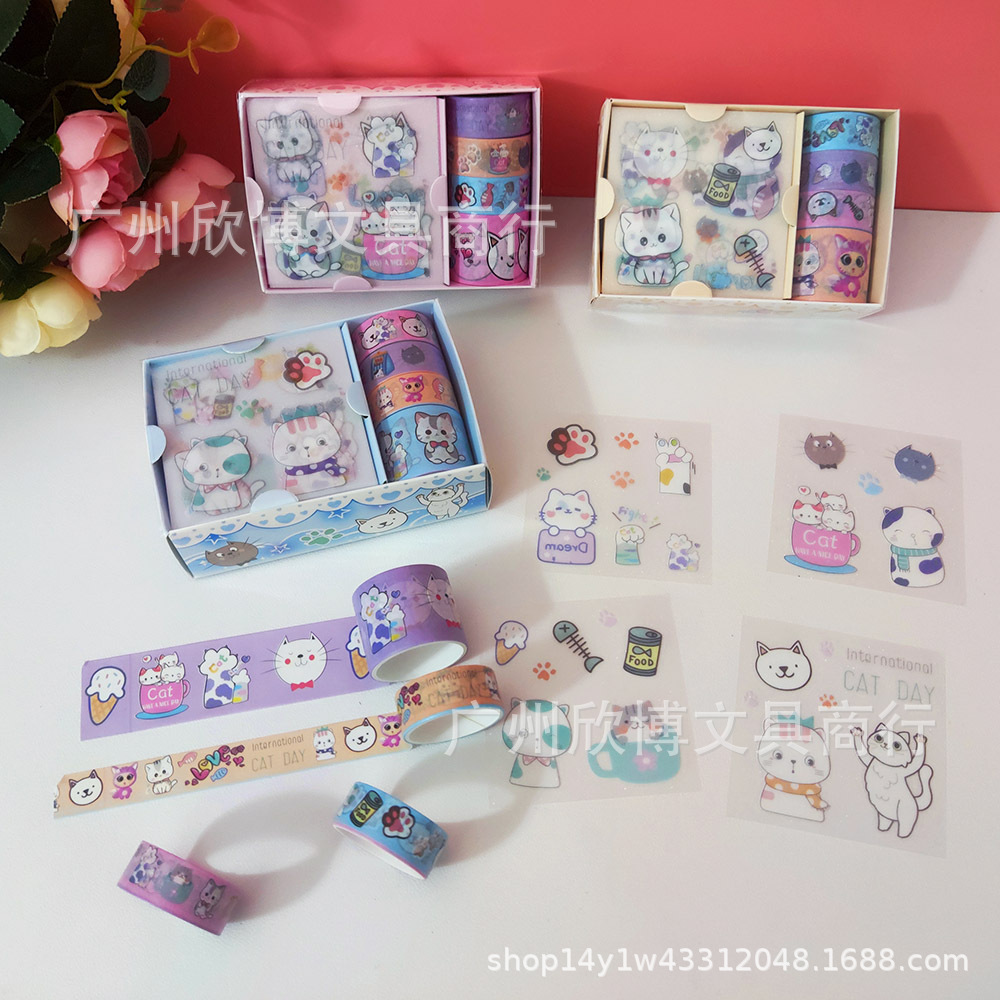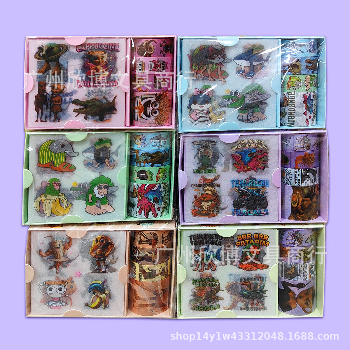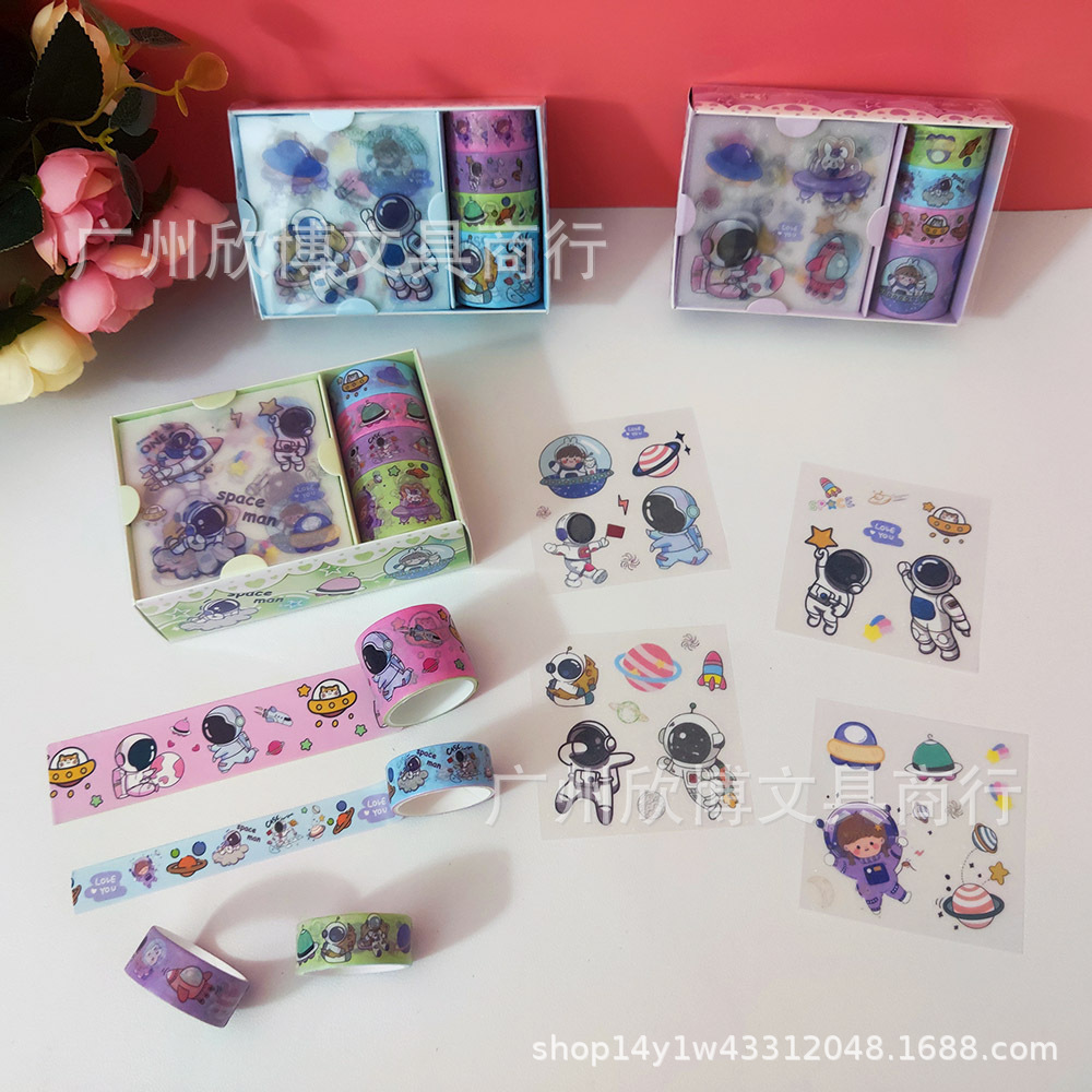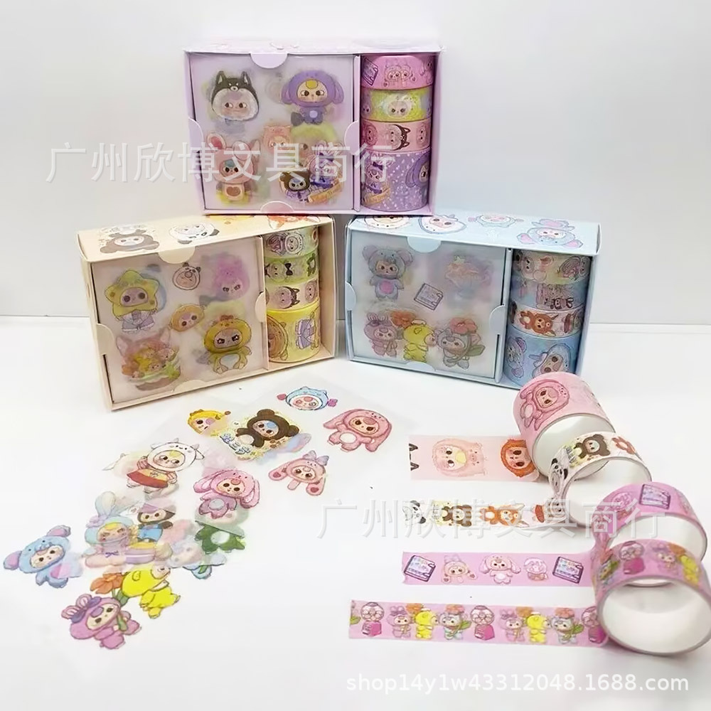 单小盒内含:卡通贴纸*4 和纸胶带*4