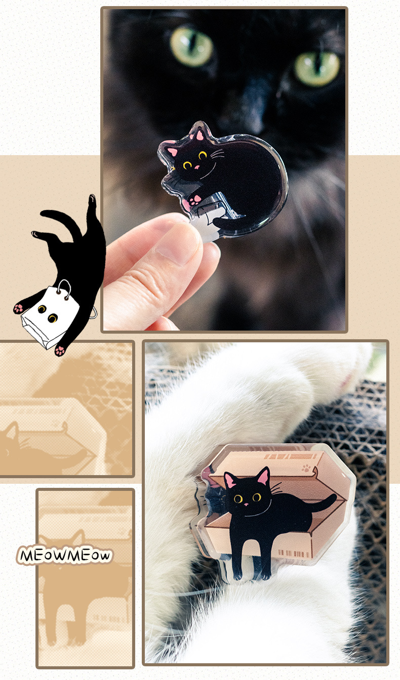 케첩 소녀 아크릴 접착제 드롭 클립 작은 검은 고양이 나쁜 마음 시리즈 손 계정 소재 장식 클립 6스토어 가기