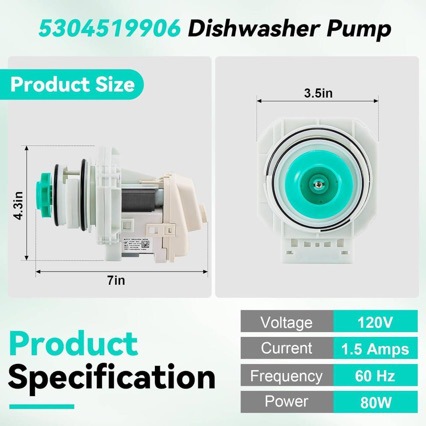 5304519906 웨스팅 하우스 식기 세척기 AP6840161 AC120V 용 식기 세척기 펌프 및 모터 어셈블리스토어 가기