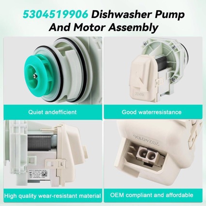 5304519906 웨스팅 하우스 식기 세척기 AP6840161 AC120V 용 식기 세척기 펌프 및 모터 어셈블리