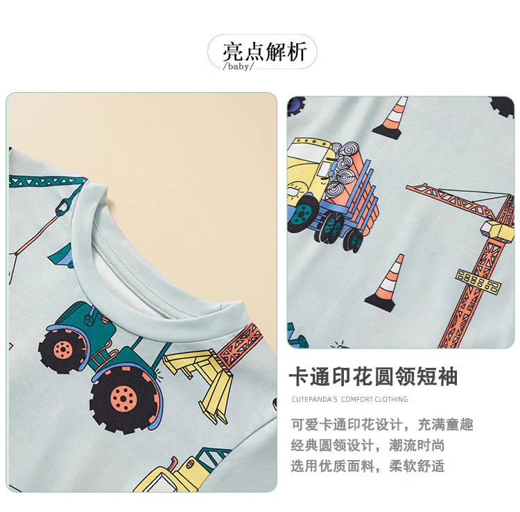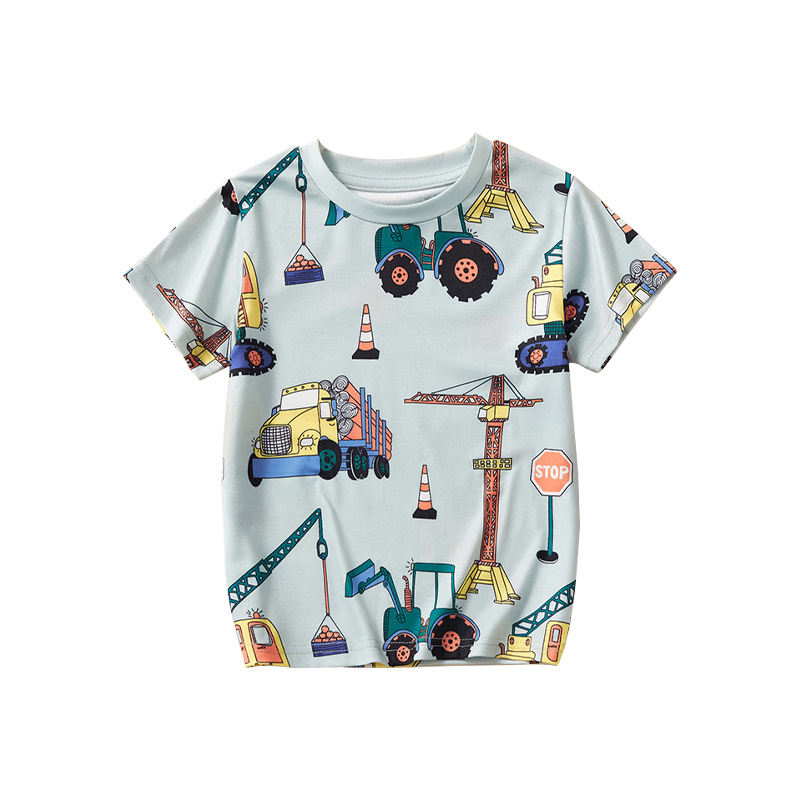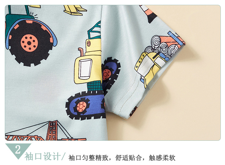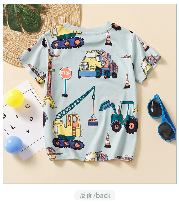 아동 의류 2025 여름 의류 소년 회색 반팔 소년 아동 티셔츠 만화 자동차 패턴 반팔 공장 배송스토어 가기