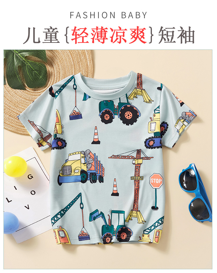 아동 의류 2025 여름 의류 소년 회색 반팔 소년 아동 티셔츠 만화 자동차 패턴 반팔 공장 배송