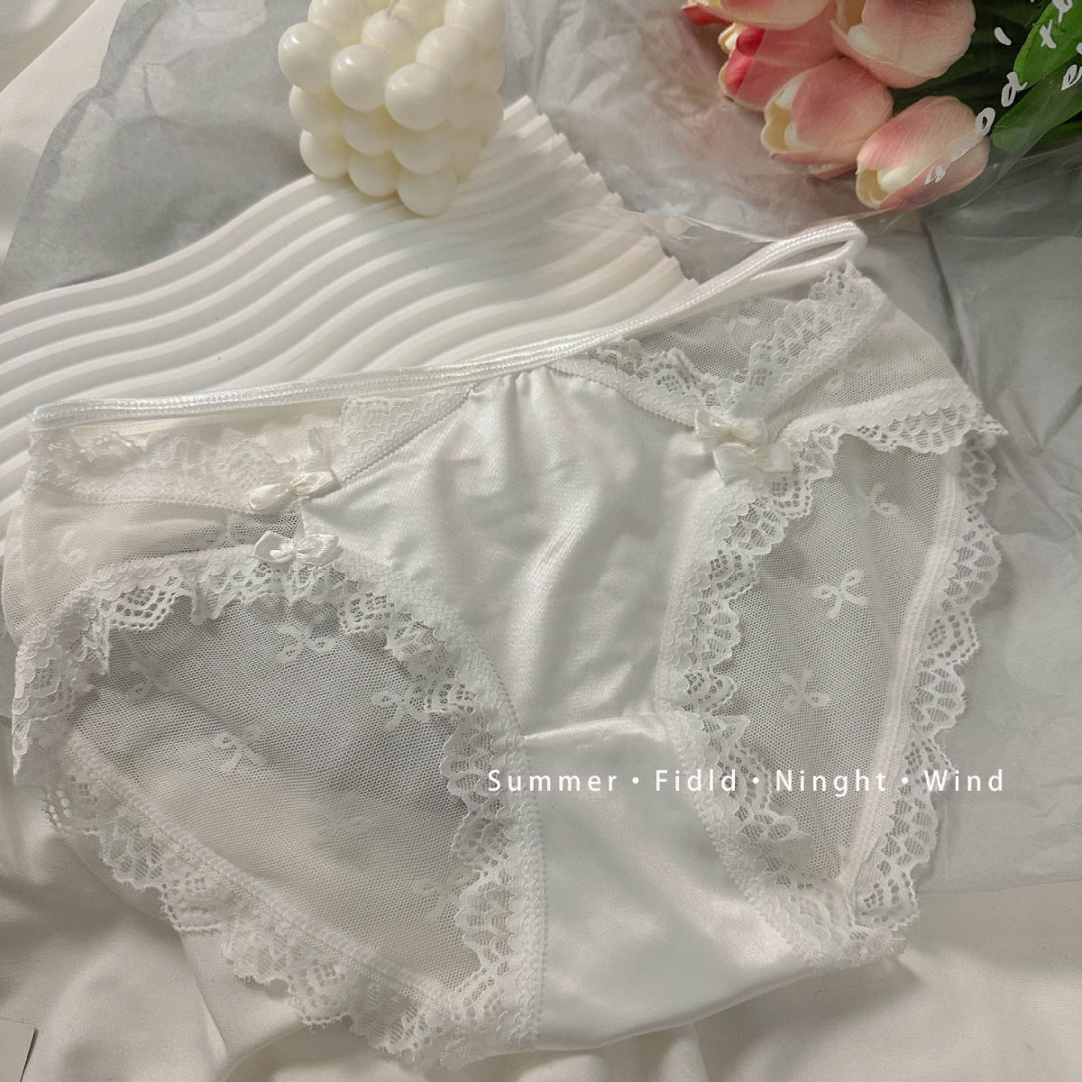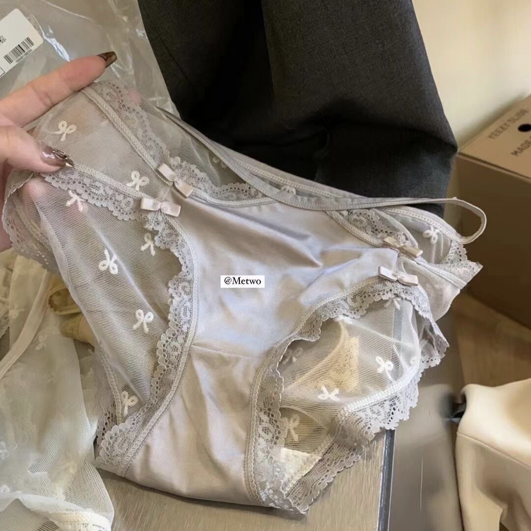 순수한 욕망 스타일 속옷 레이스 활 높은 탄성 편안한 섹시 코튼 크로 치 가리 하트 반투명 브리프 여성스토어 가기