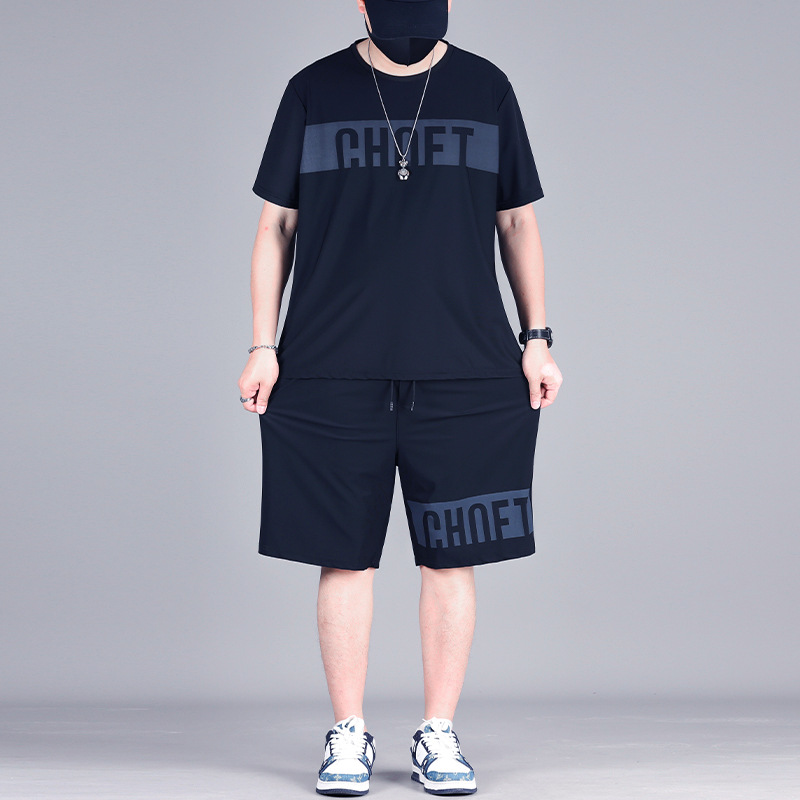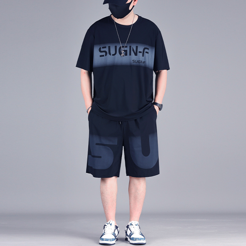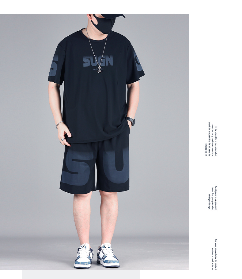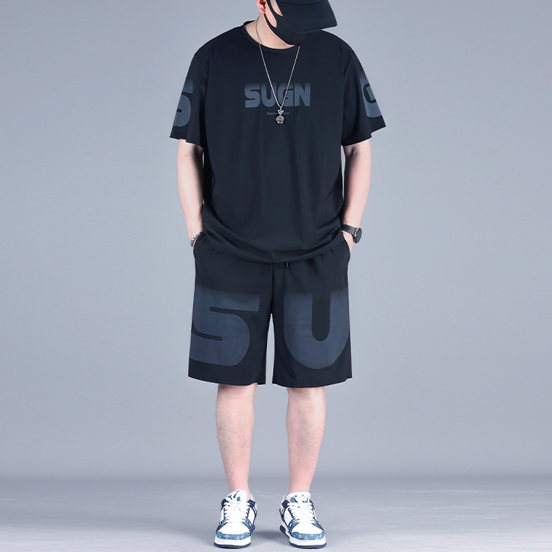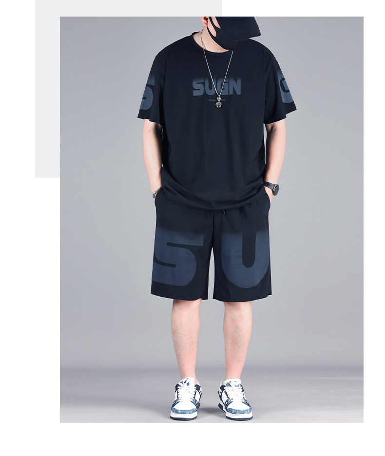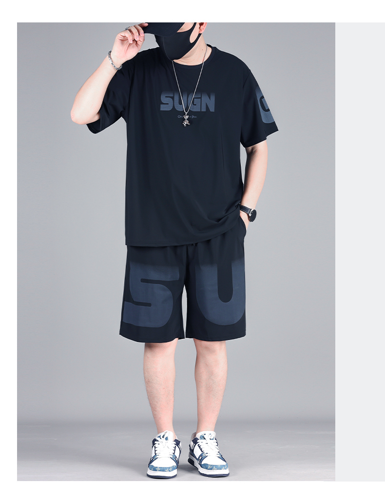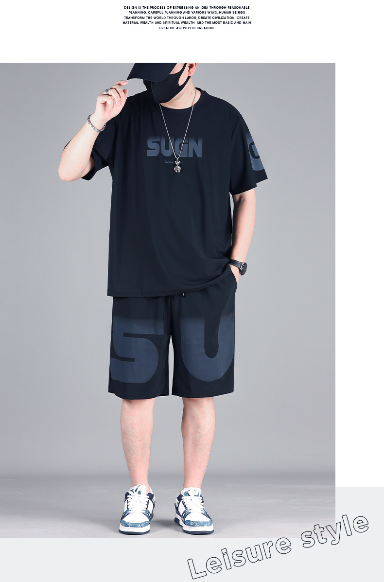 아이스 실크 캐주얼 스포츠 빠른 건조 세트 여름 새로운 남자 패터너 플러스 사이즈 티셔츠 반팔 반바지 투피스 트렌디스토어 가기