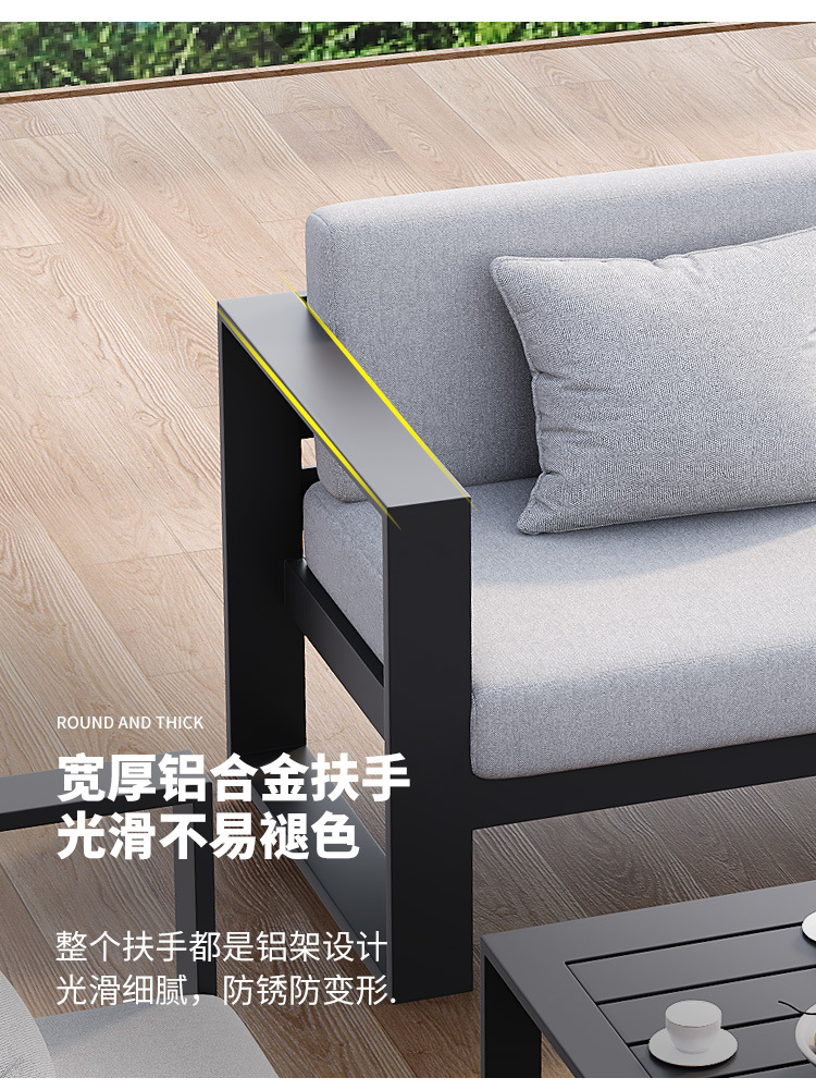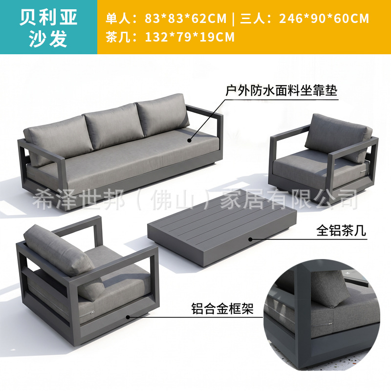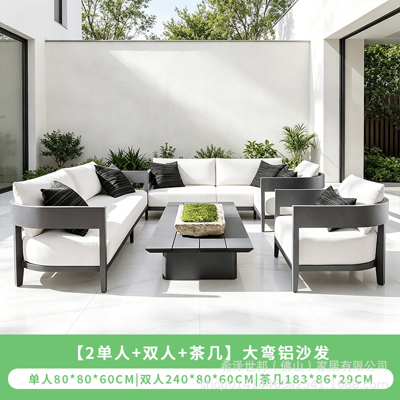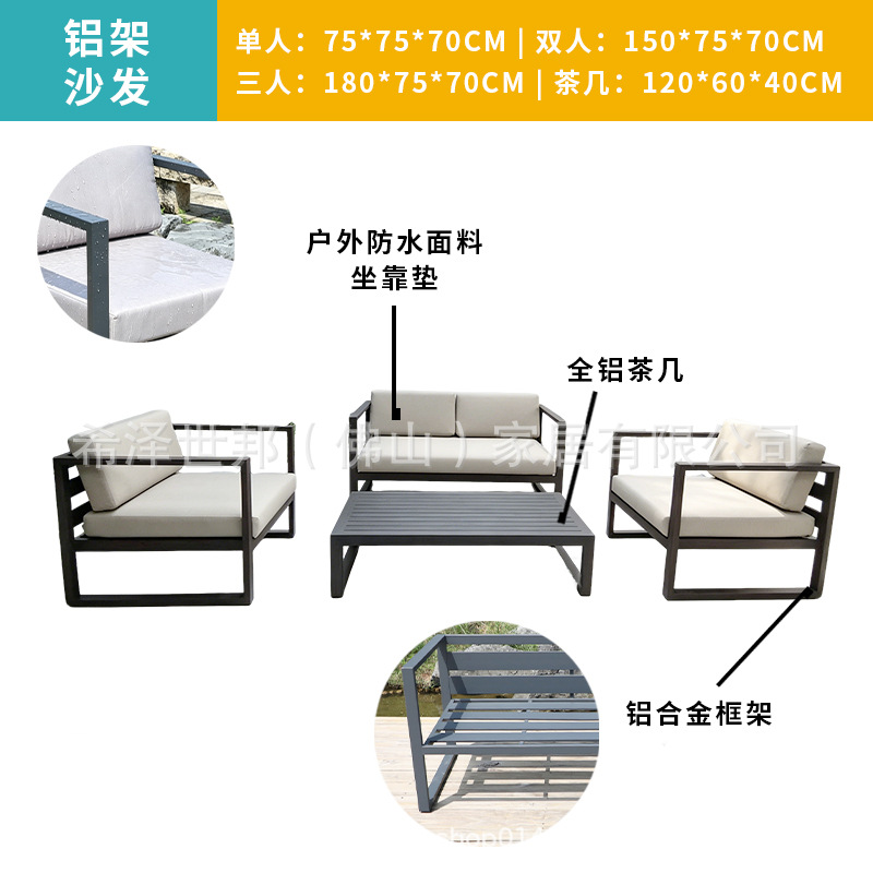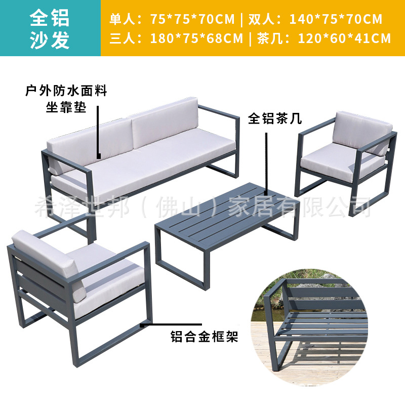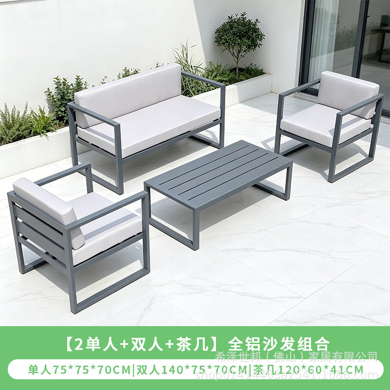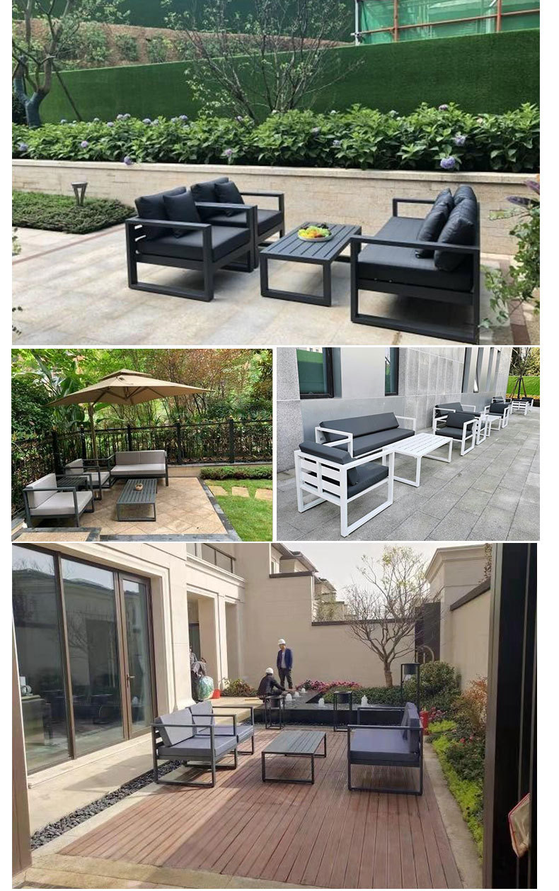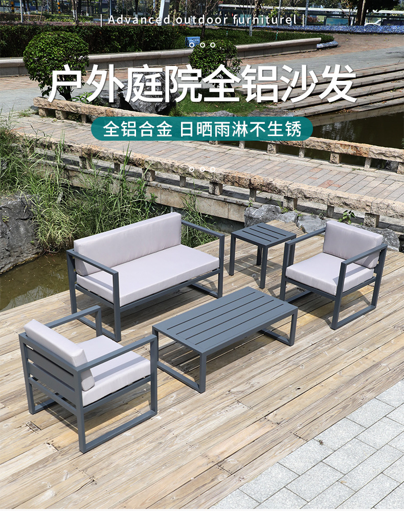 맞춤형 알루미늄 합금 소파, 커피 테이블, 호텔 야외 테이블 및 의자, 방수 및 자외선 차단 기능을 갖춘 야외 발코니 및 안뜰용 야외 소파스토어 가기