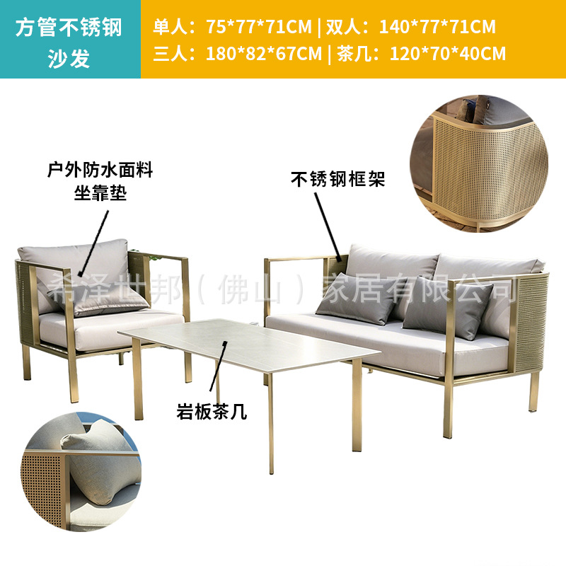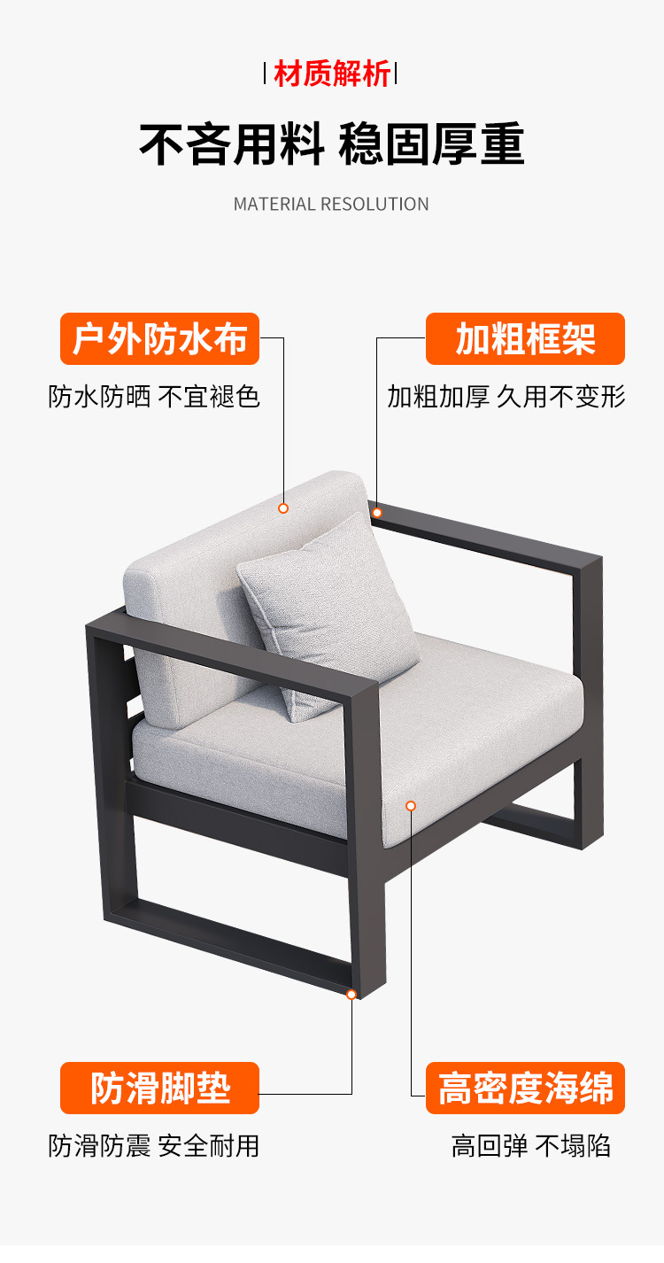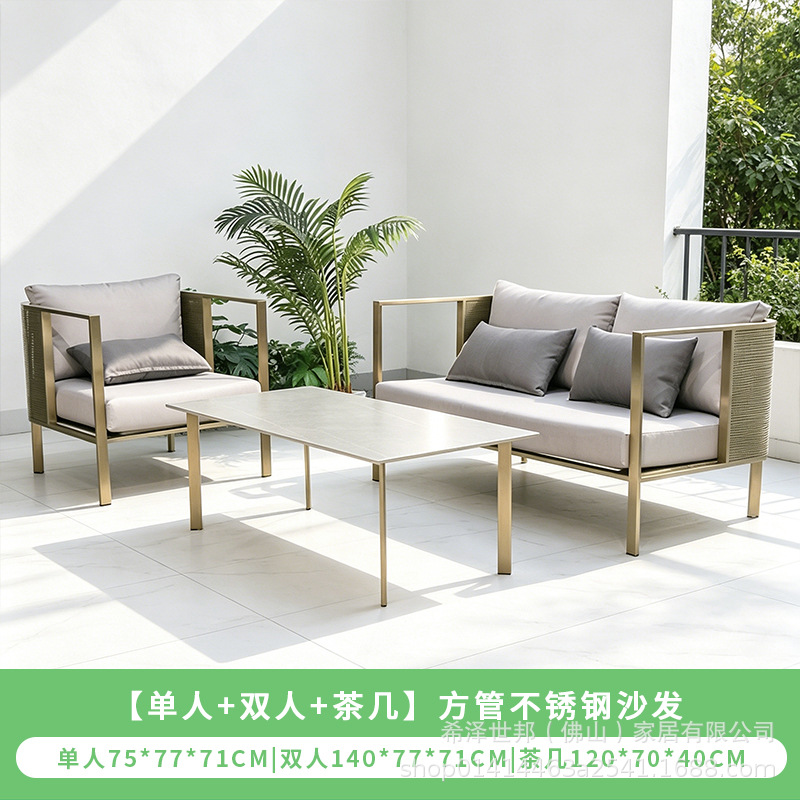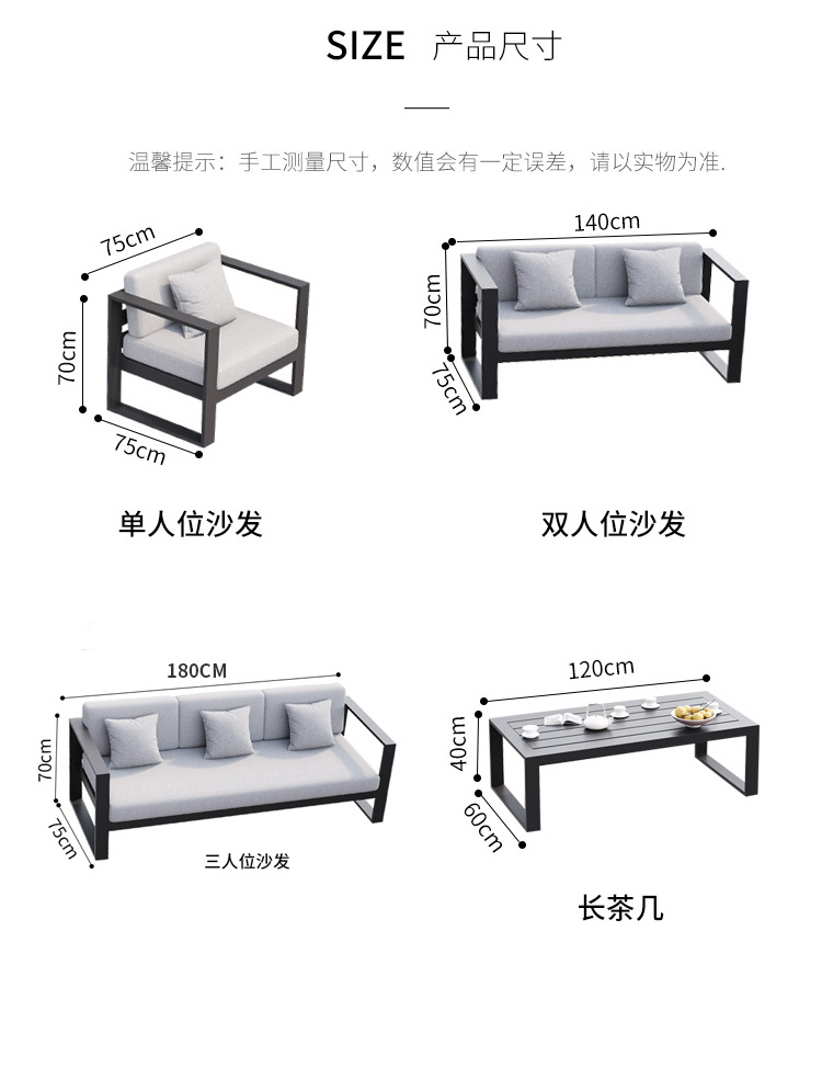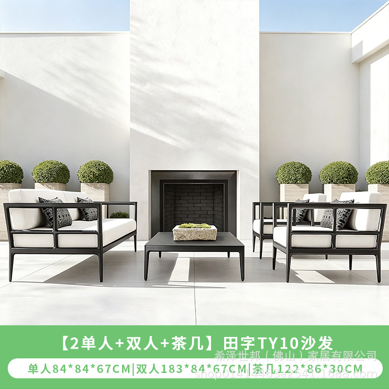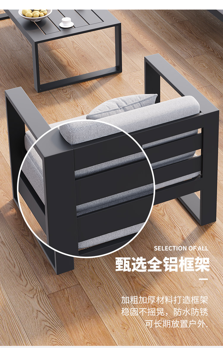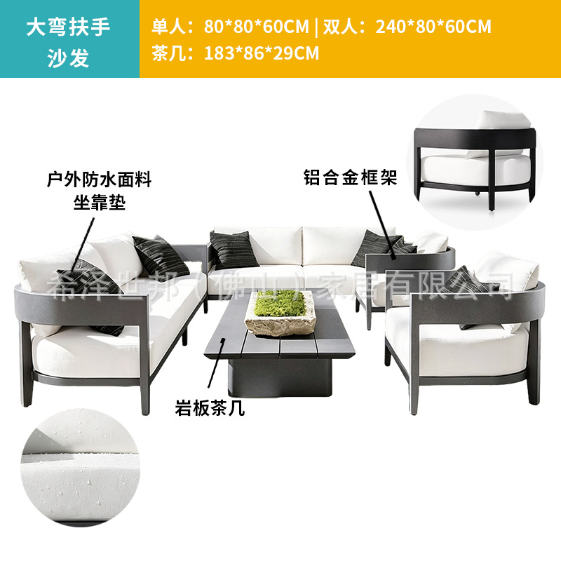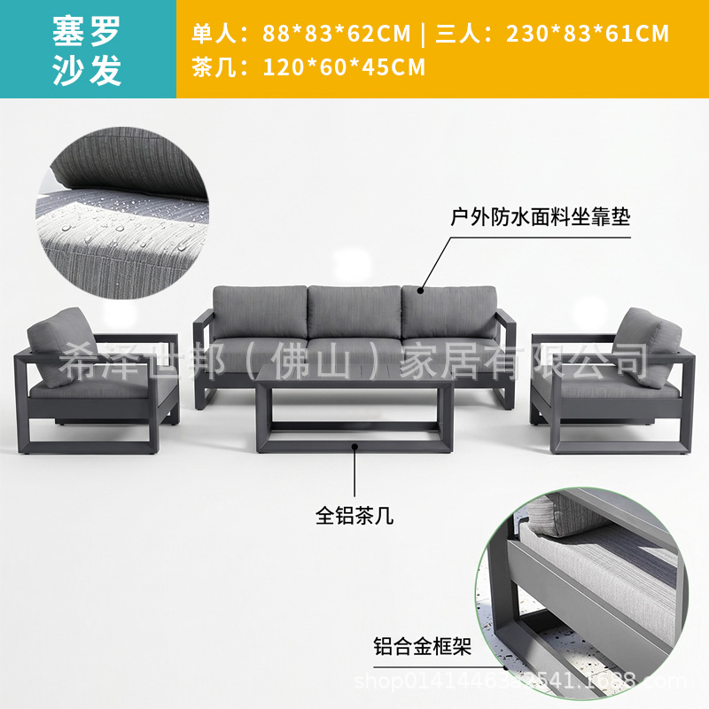 맞춤형 알루미늄 합금 소파, 커피 테이블, 호텔 야외 테이블 및 의자, 방수 및 자외선 차단 기능을 갖춘 야외 발코니 및 안뜰용 야외 소파스토어 가기