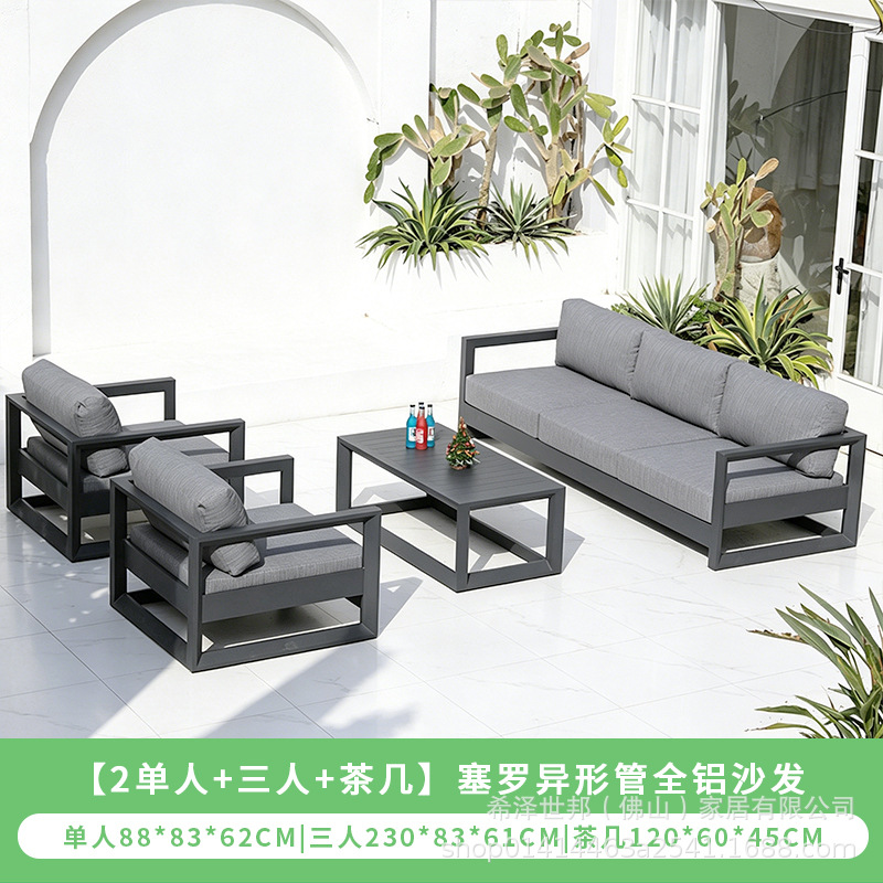 맞춤형 알루미늄 합금 소파, 커피 테이블, 호텔 야외 테이블 및 의자, 방수 및 자외선 차단 기능을 갖춘 야외 발코니 및 안뜰용 야외 소파