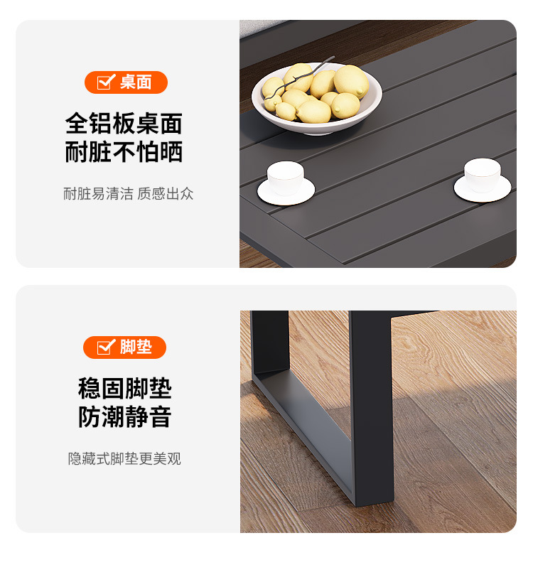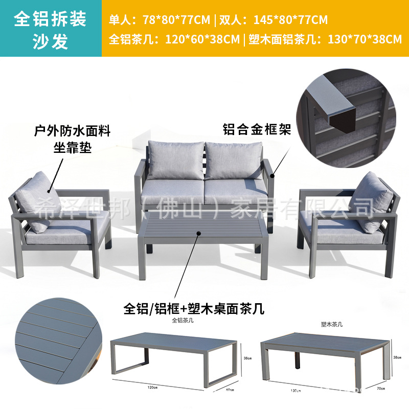 • TY 전체 알루미늄 분해 조립 소파(플라스틱 목재 표면 알루미늄 커피 테이블) - 맞춤형