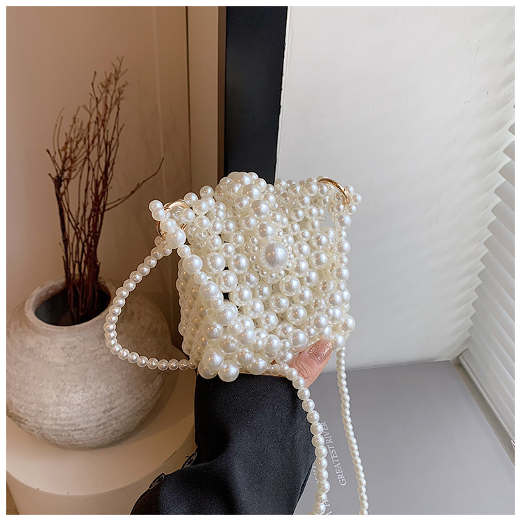 어린이 가방 새로운 한국 인터넷 인기 명암 컬러 신선한 스타일 수제 구슬 진주 체인 핸드 헬드 싱글 숄더 크로스 바디 백스토어 가기