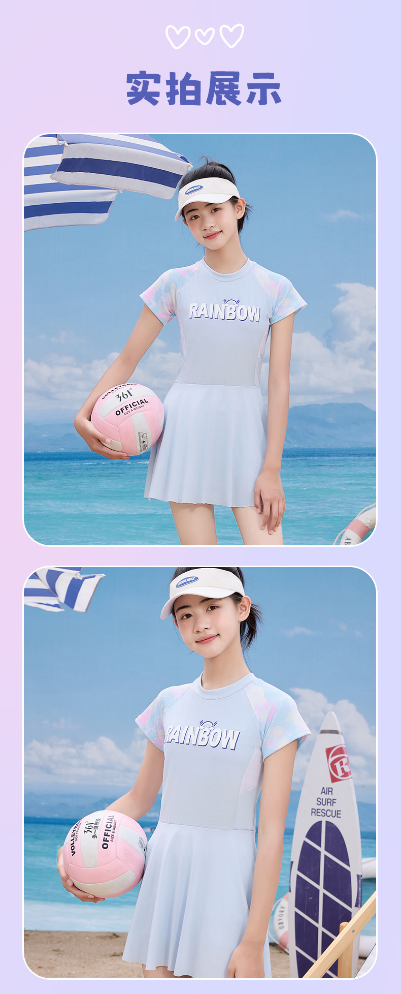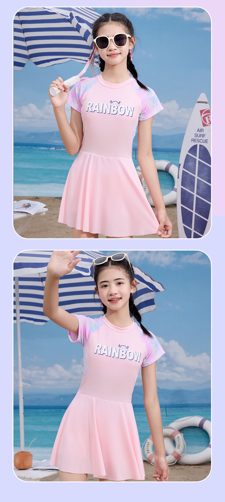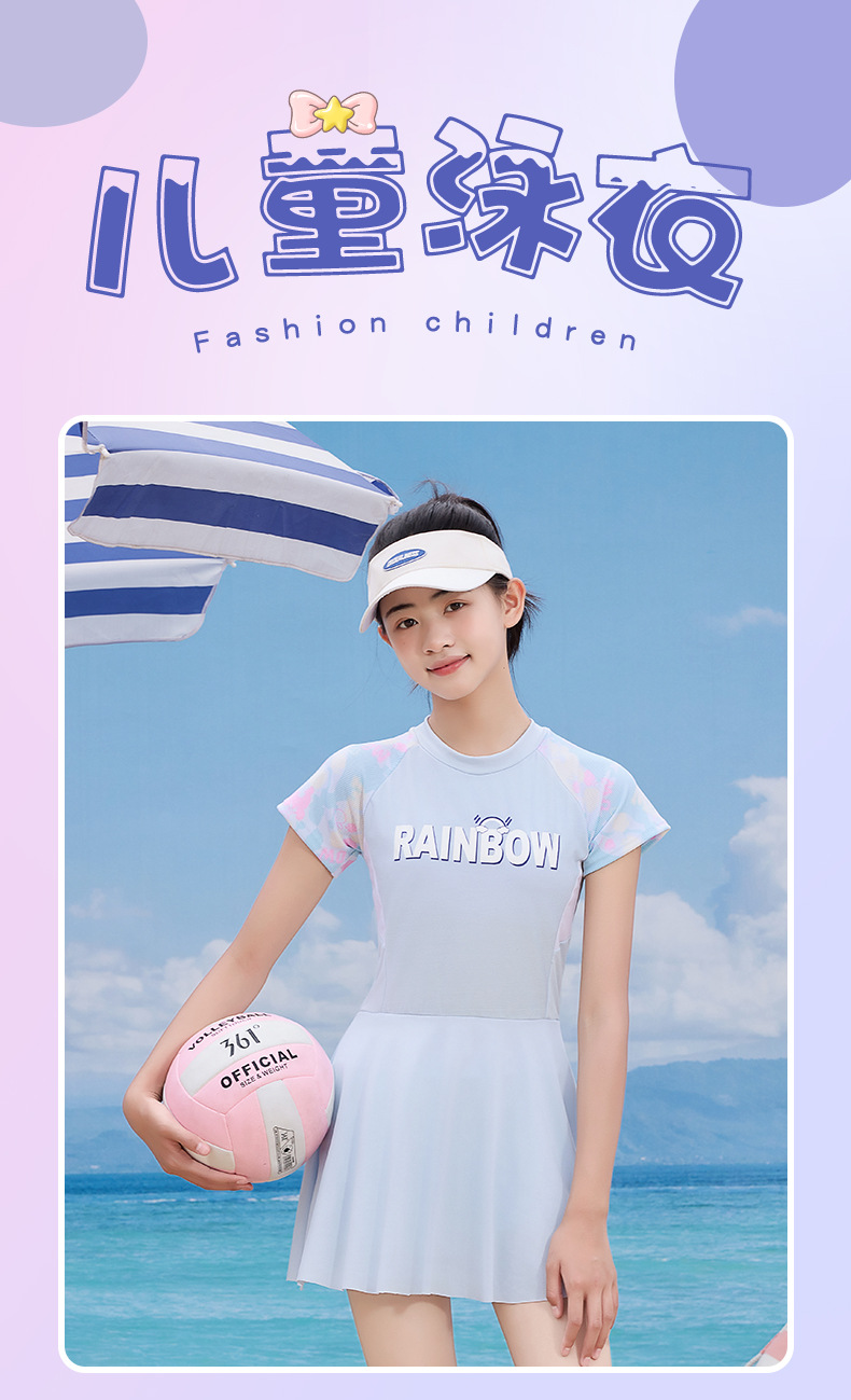 어린이 수영복 여아용 스플릿 2024 신식 소녀 솔리드 컬러 수영복 중학생 아기 수영복