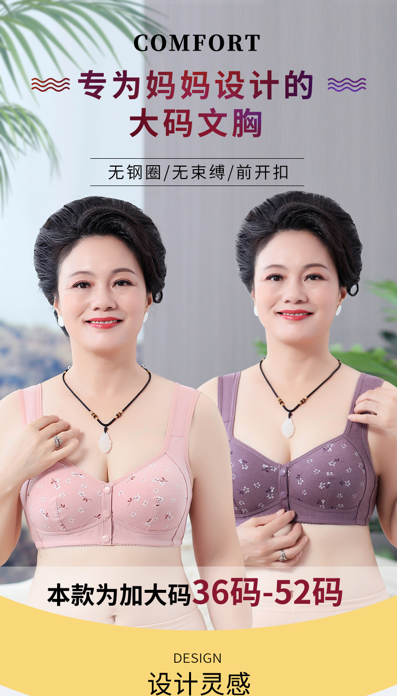 고정 컵 프런트 버클 중년 및 노인 플러스 사이즈 브라 여성 푸시 업 무테 처지 방지 조끼 여성과 어머니의 속옷스토어 가기