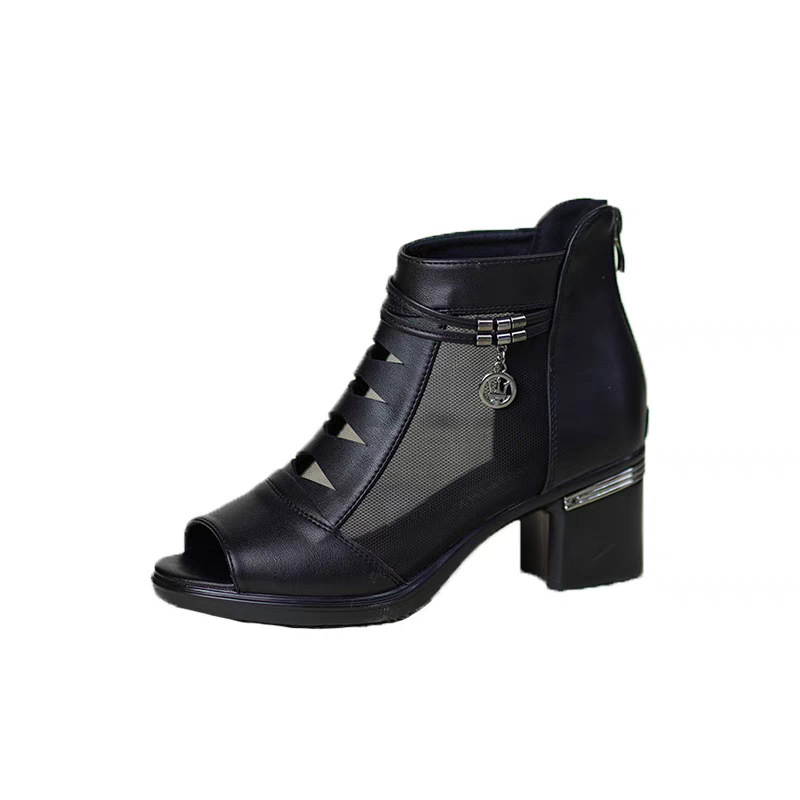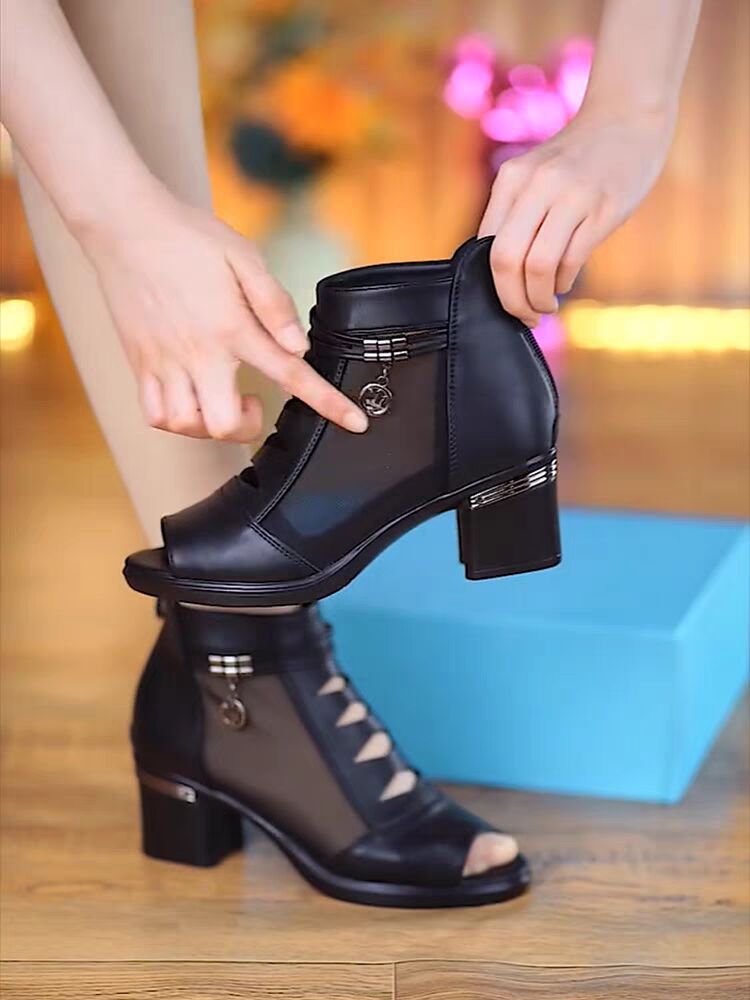 2024 새로운 대외 무역 하이힐 여성용 메쉬 샌들 두꺼운 힐 여성용 신발 미드 힐 샌들 여성용 샌들 크로스 테두리 신발스토어 가기