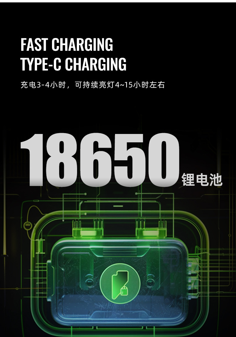 工作电流:1档-灯带常亮(200lm)→2档-灯带闪光(75lm)→3档-灯带呼吸(30lm)→4档-灯带常亮(100lm)+led(200lm)→5档-led(400lm)