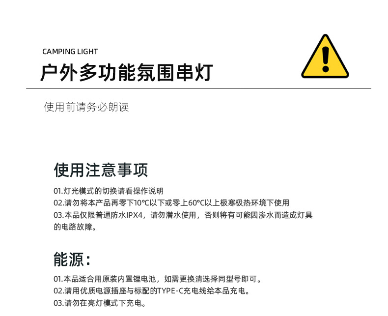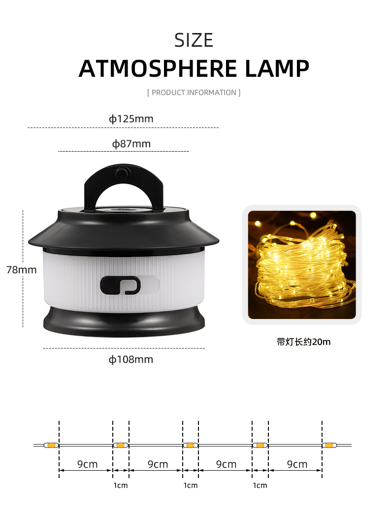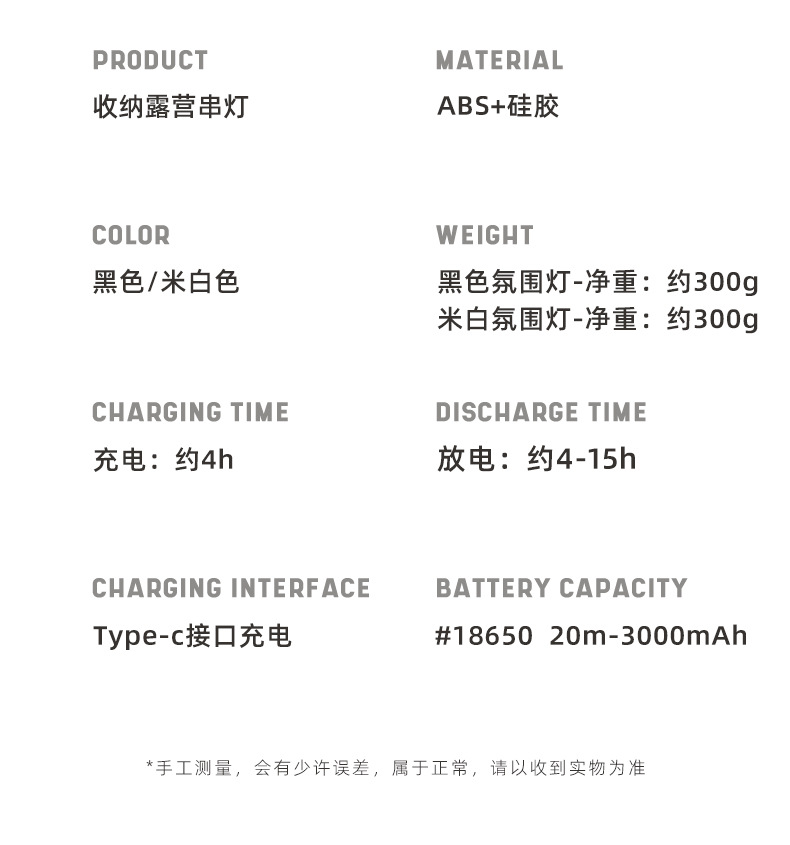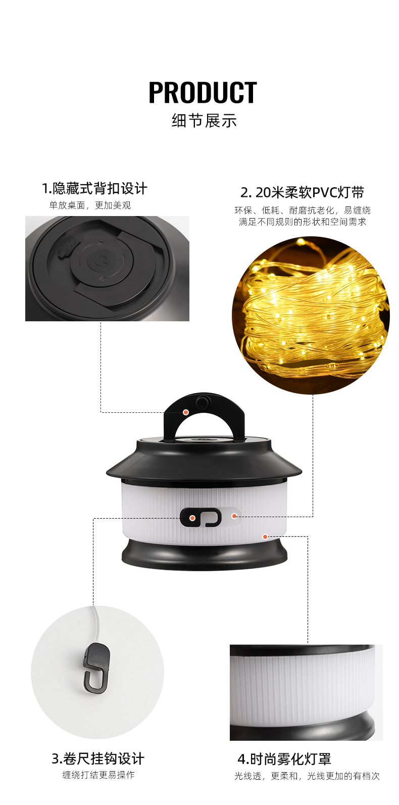 产品标配:露营灯×1个,数据线×1个,说明书×1个