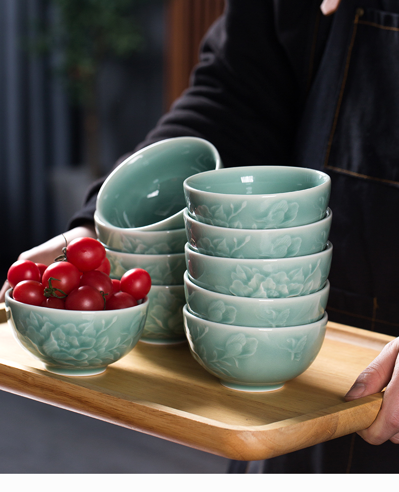 KI9S 중국 청자 밥 그릇 가구 2023 새로운 두꺼운 안티 스케일 식기 조합 전자 레인지 세라믹 밥 그릇