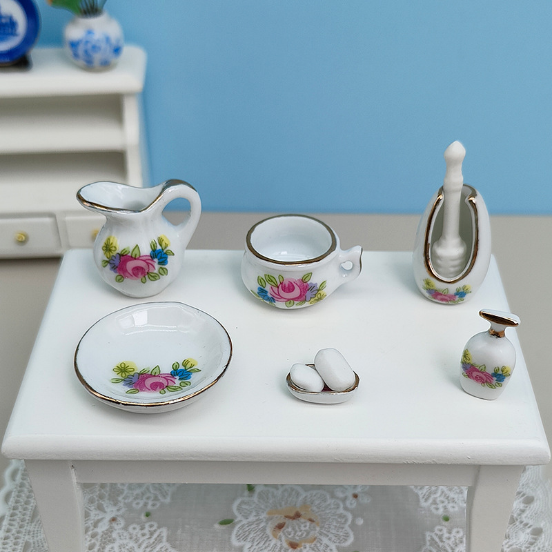 미니 세라믹 1:12 인형 집 욕실 세트 액세서리 소형 장면 장난감 장식 공예 장식품