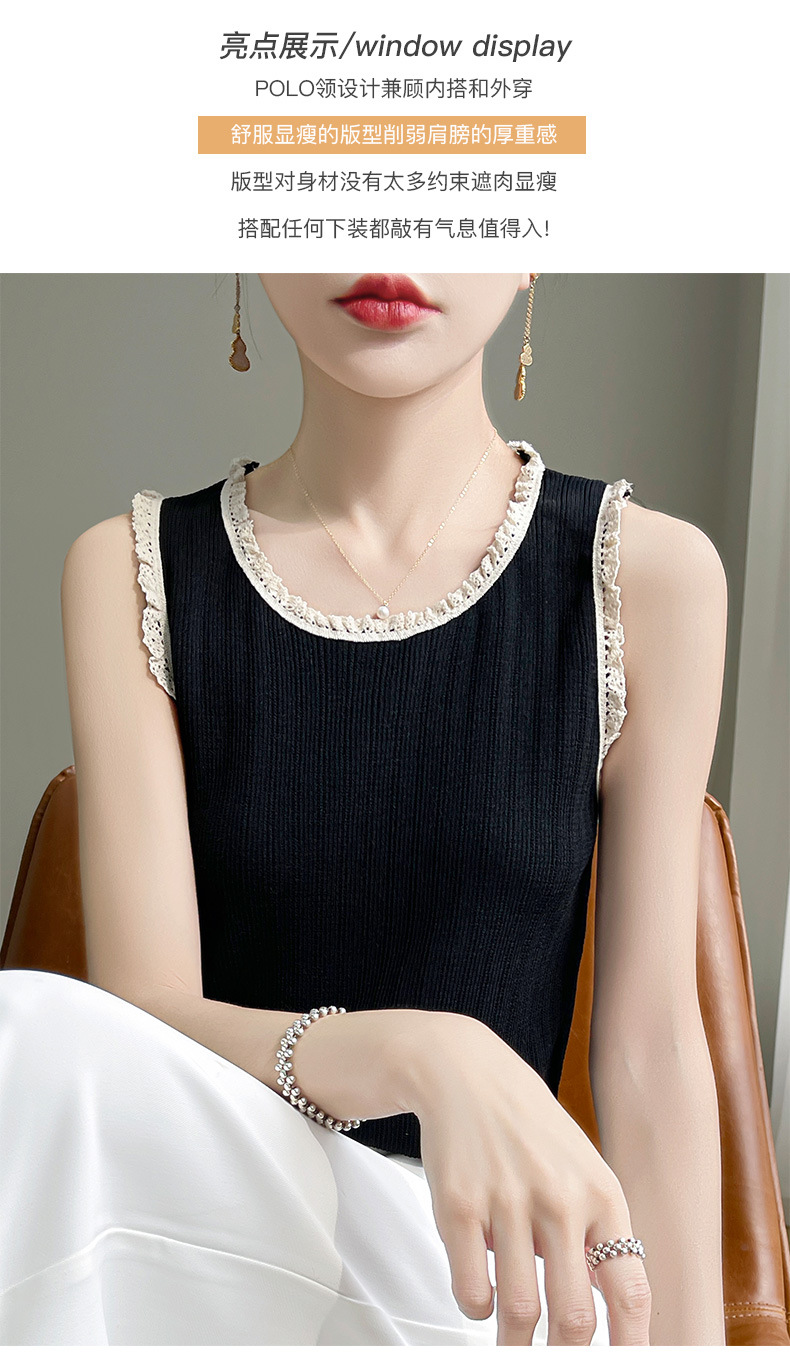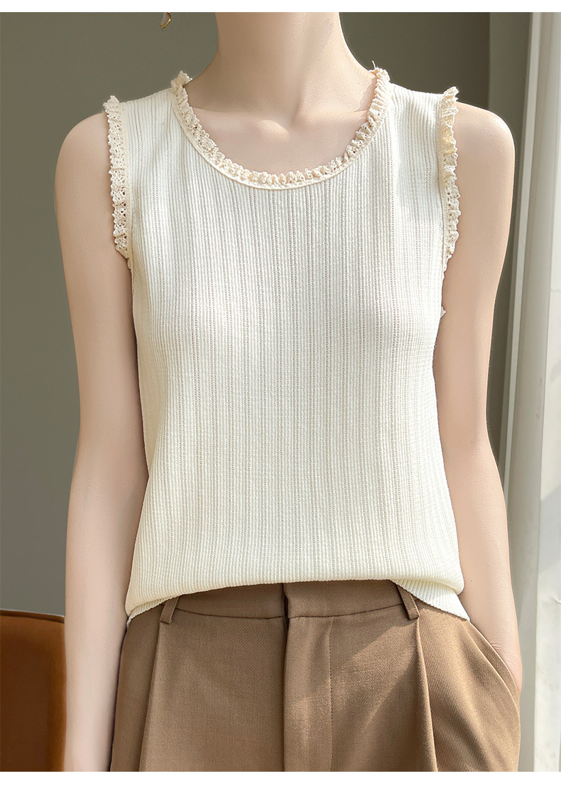 둥근 목 작은 카미 솔 여성 내부 여름 니트 셔츠 슬림 핏 아우터 웨어 I-레터 민소매 얇은 티셔츠베이스 탑
