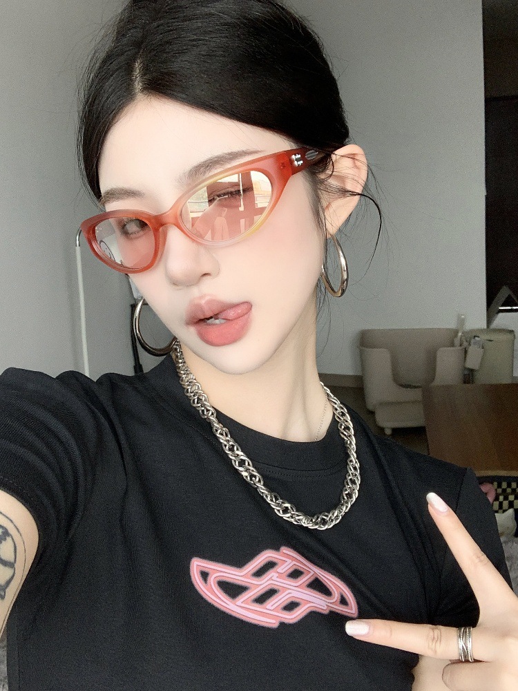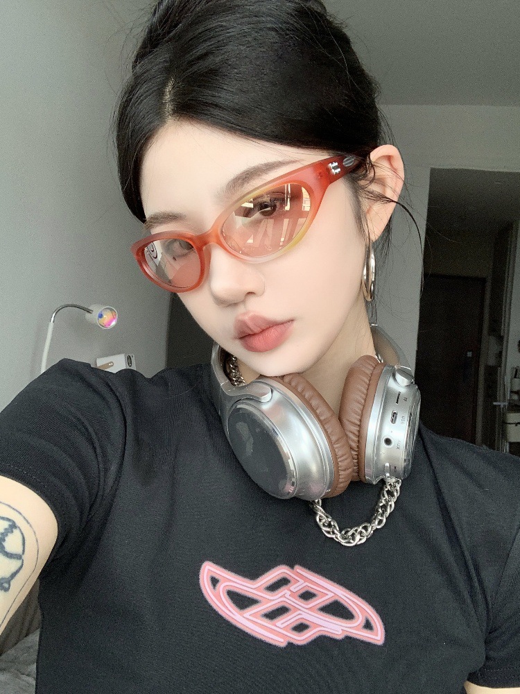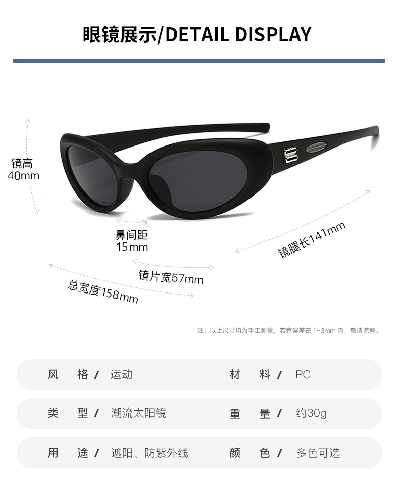 Gm 선글라스 여성 제니 동일 스타일 유럽과 미국 타원형 고양이 눈 스크럽 Y2K 야외 스포츠 승마 선글라스