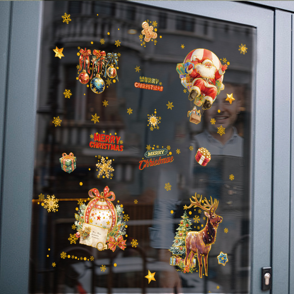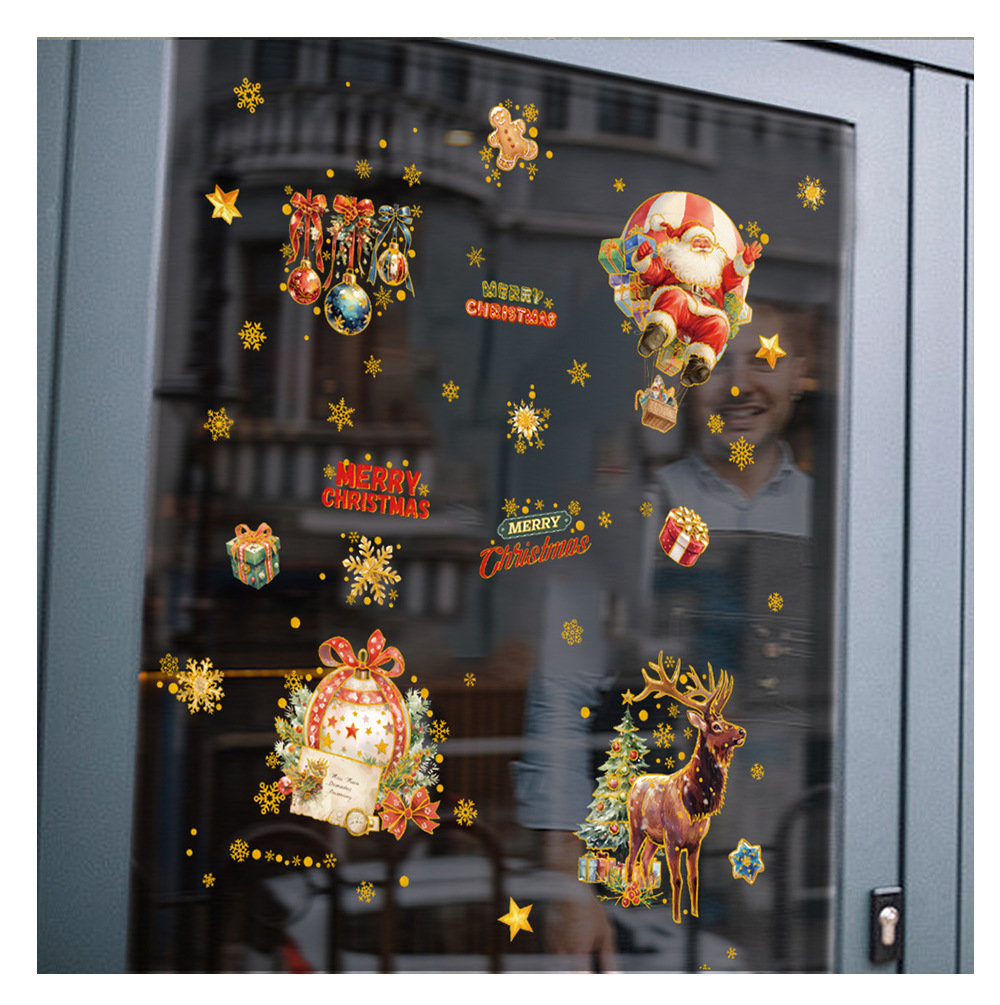 Yiyao HT94073 새로운 크리스마스 황금 눈송이 엘크 유리 스티커 레스토랑 유리 문 장식 정전기 스티커스토어 가기