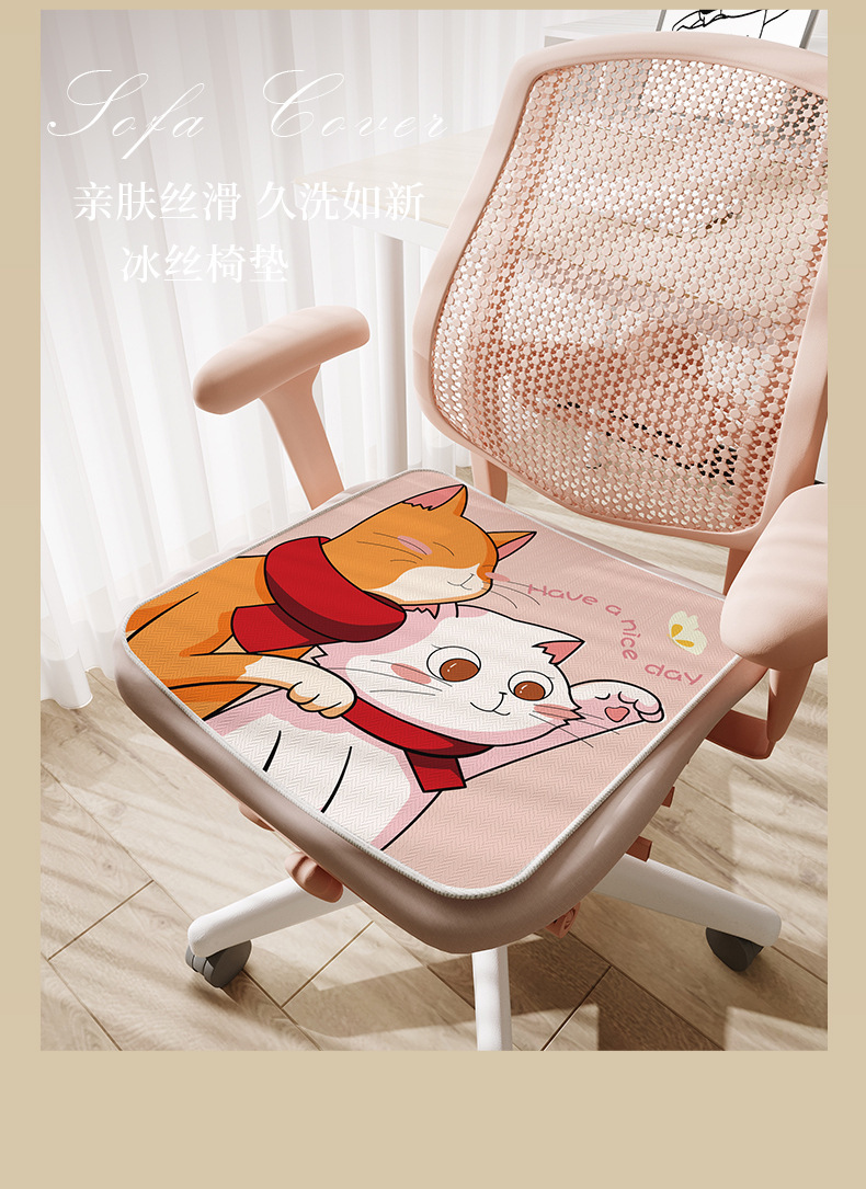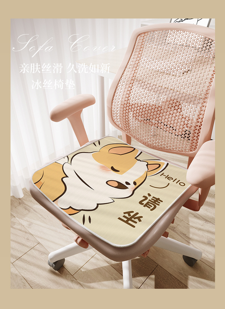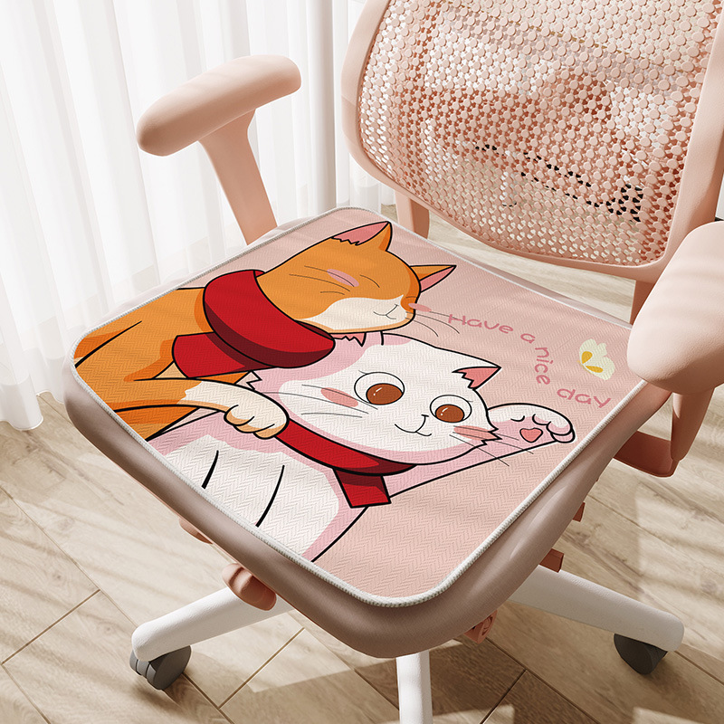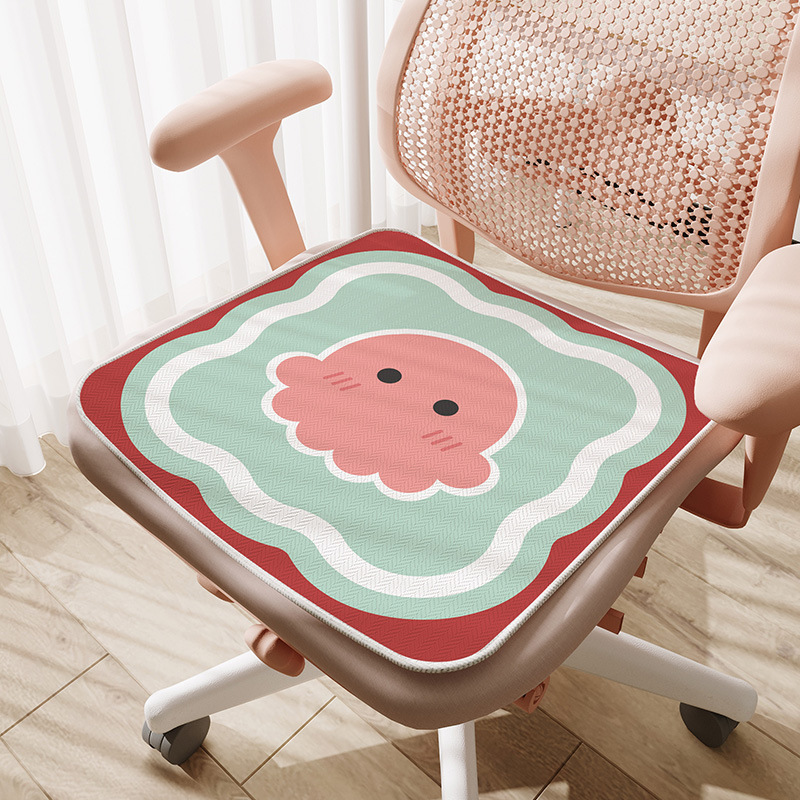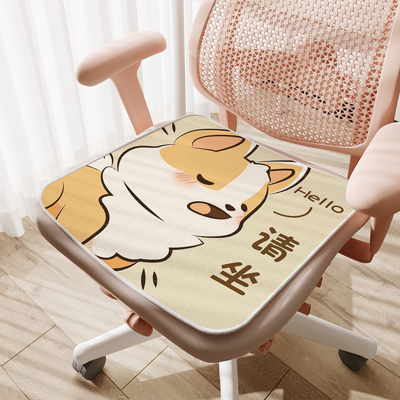 만화풍 아이스 실크 시트 쿠션, 사무실 장시간 착석용, 미끄럼 방지, 여름 교실 학생용, 통기성스토어 가기