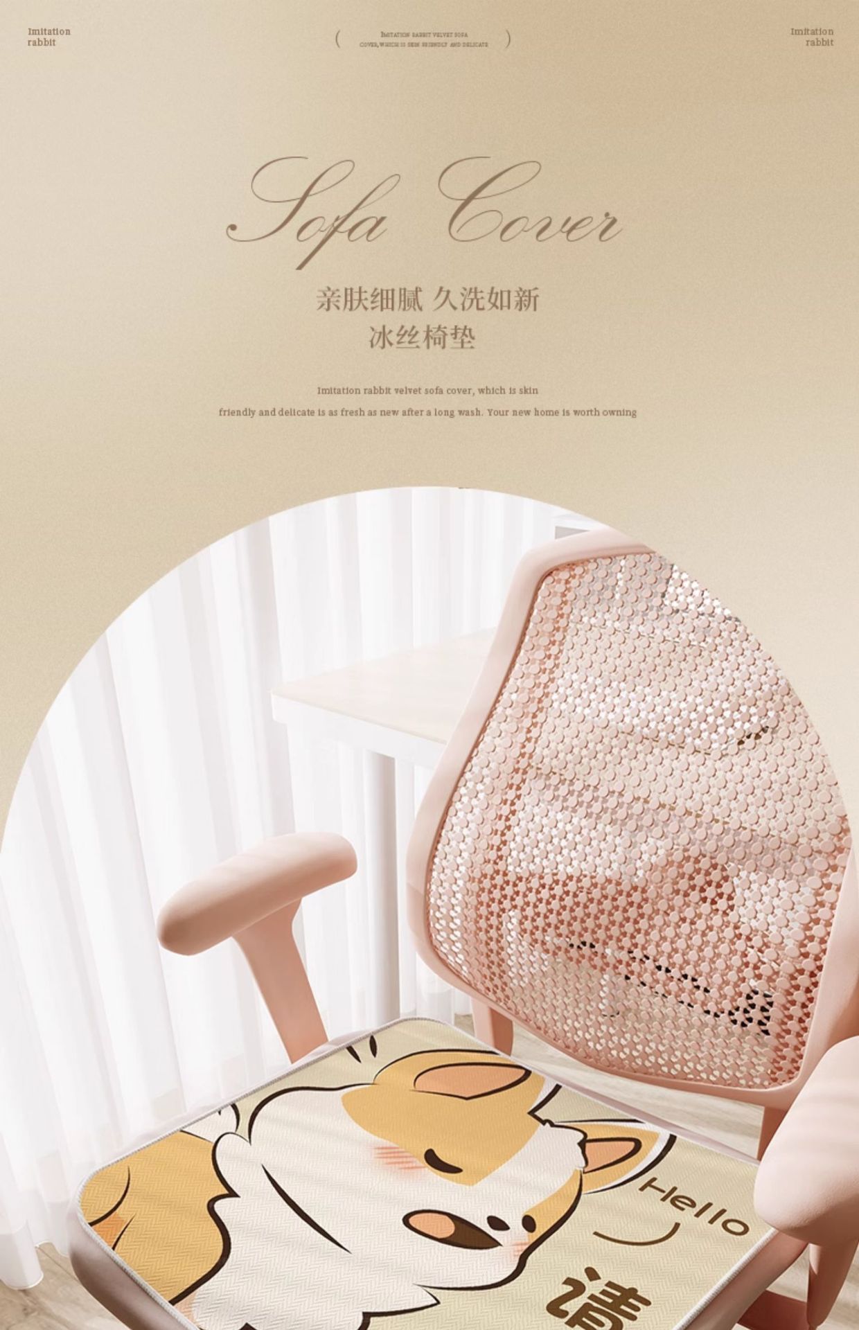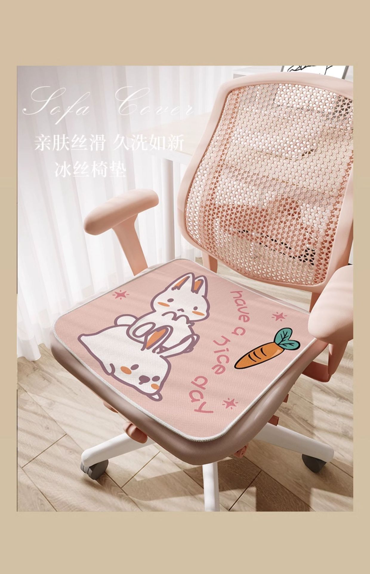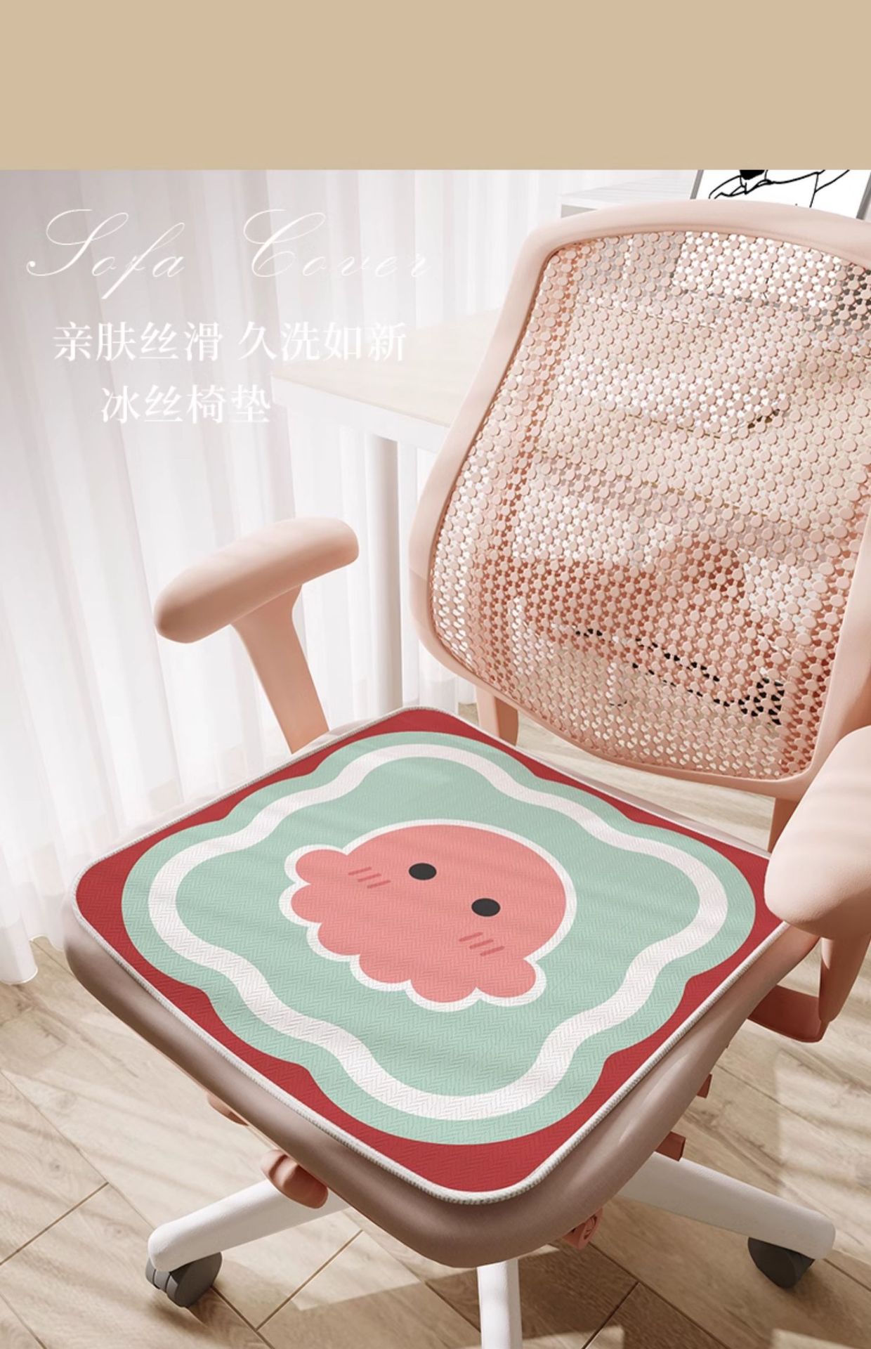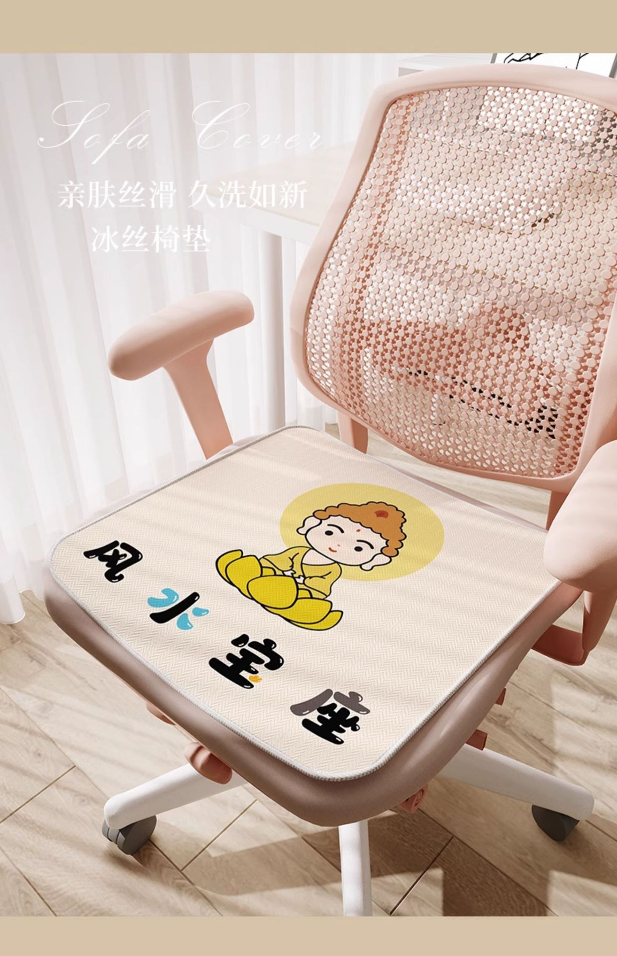 만화풍 아이스 실크 시트 쿠션, 사무실 장시간 착석용, 미끄럼 방지, 여름 교실 학생용, 통기성스토어 가기