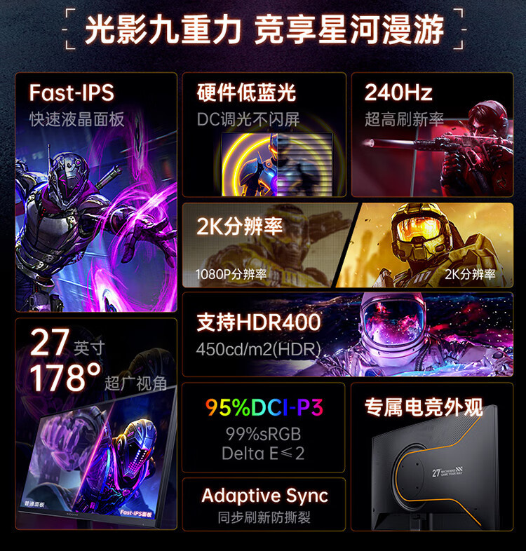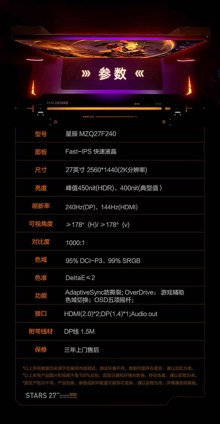 기계공 스타 27 인치 2K 180/240Hz IPS 1ms 데스크탑 컴퓨터 LCD 모니터 화면스토어 가기