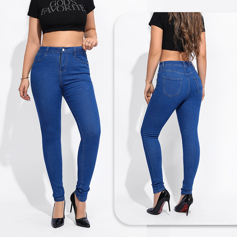 유럽과 미국의 뜨거운 판매 Xiyin 2024 높은 허리 청바지 여성의 단단한 봄과 가을 새로운 슬림 슬림 핏 작은 다리 바지 높은 스트레치