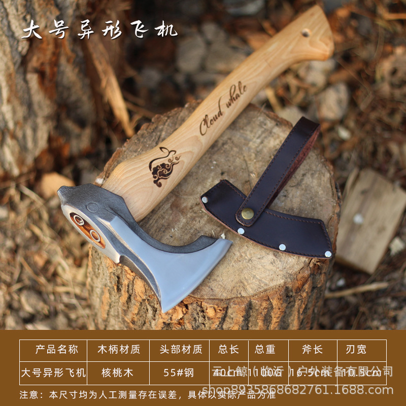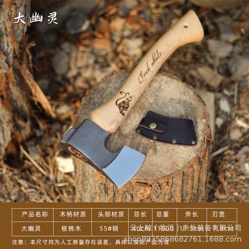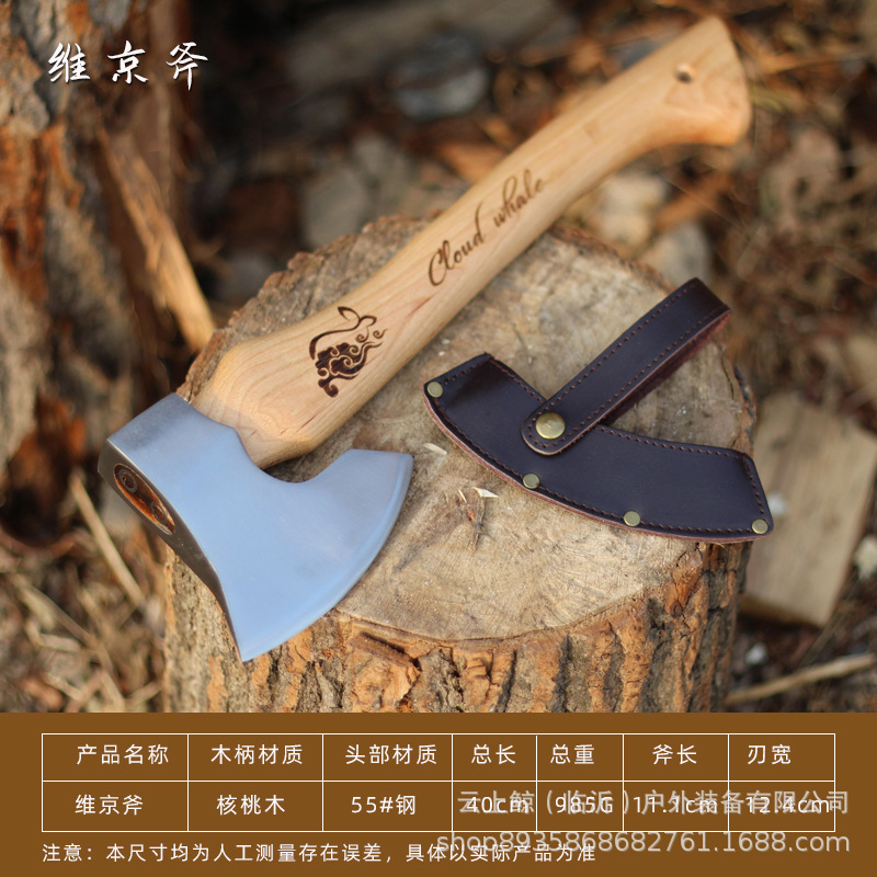 • 바이킹 도끼 - 잘게 다듬은 호두나무 33CM [가죽 케이스 포함]