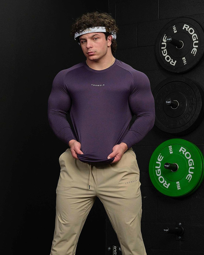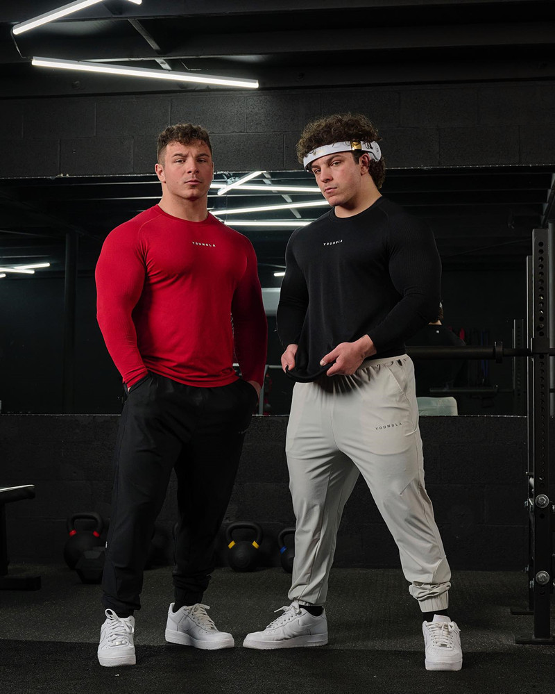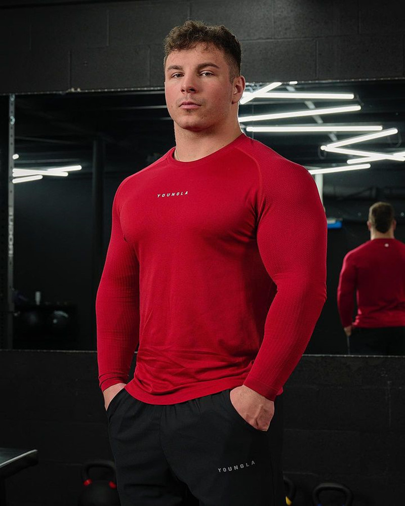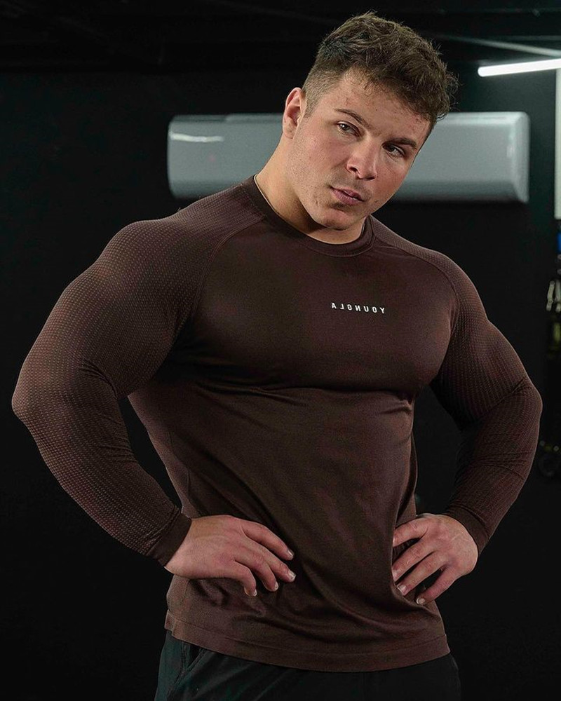 YOUNGLA 미국 남성 긴팔 티셔츠 가을 새 보디 빌딩 피트니스 빠른 건조 통기성 스트레치 타이트