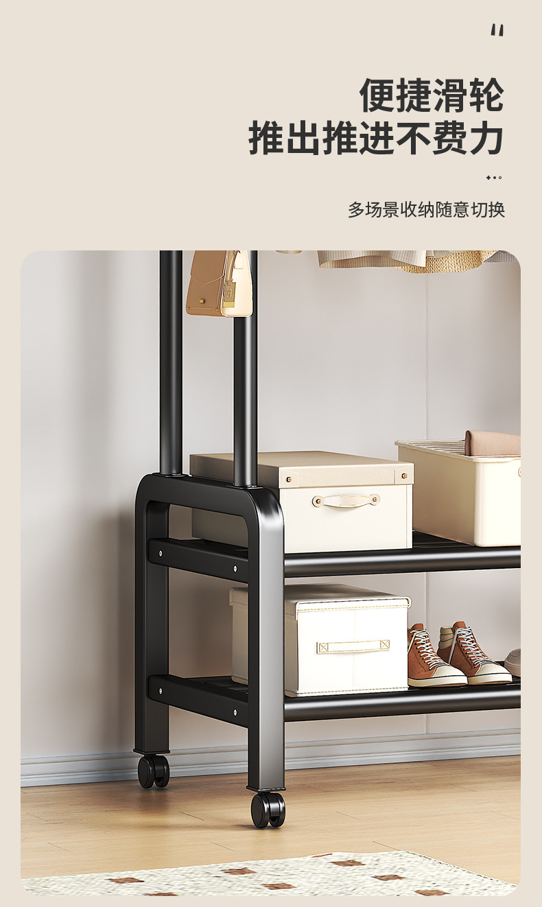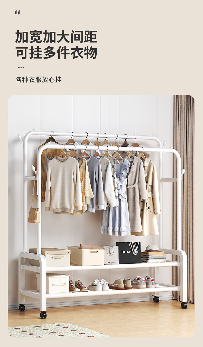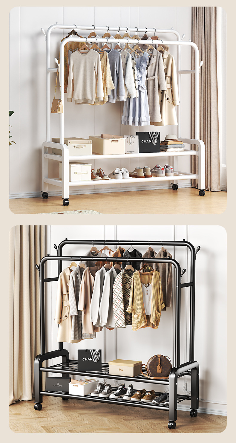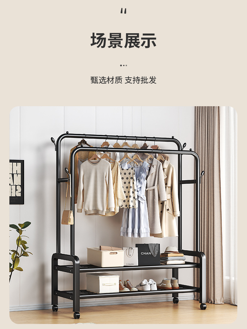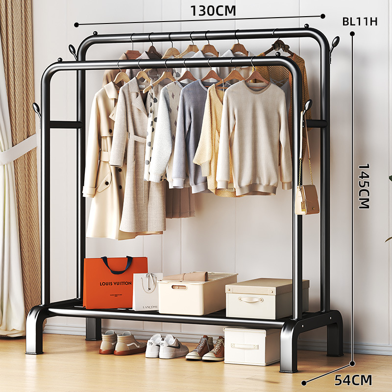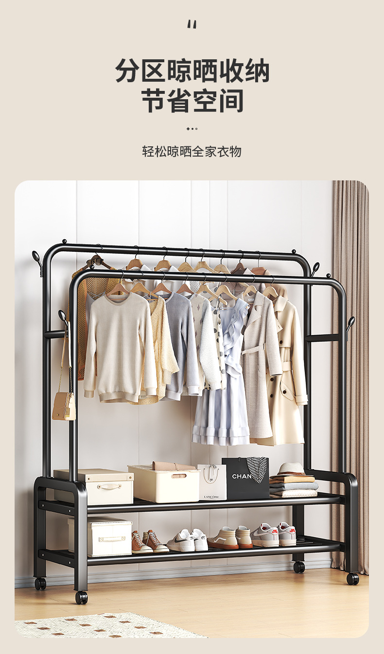 • 이중 극 110cm 검정색 바퀴 수납 선반 + 옷걸이 4개