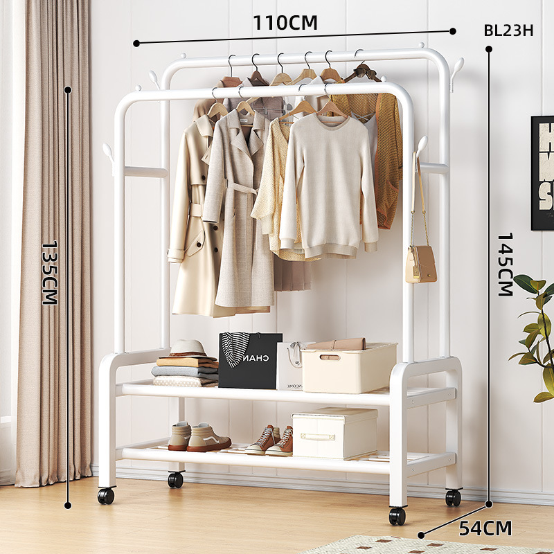 • 이중 극*이중층 110cm 검정색 바퀴가 달린 수납 선반 옷걸이 4개